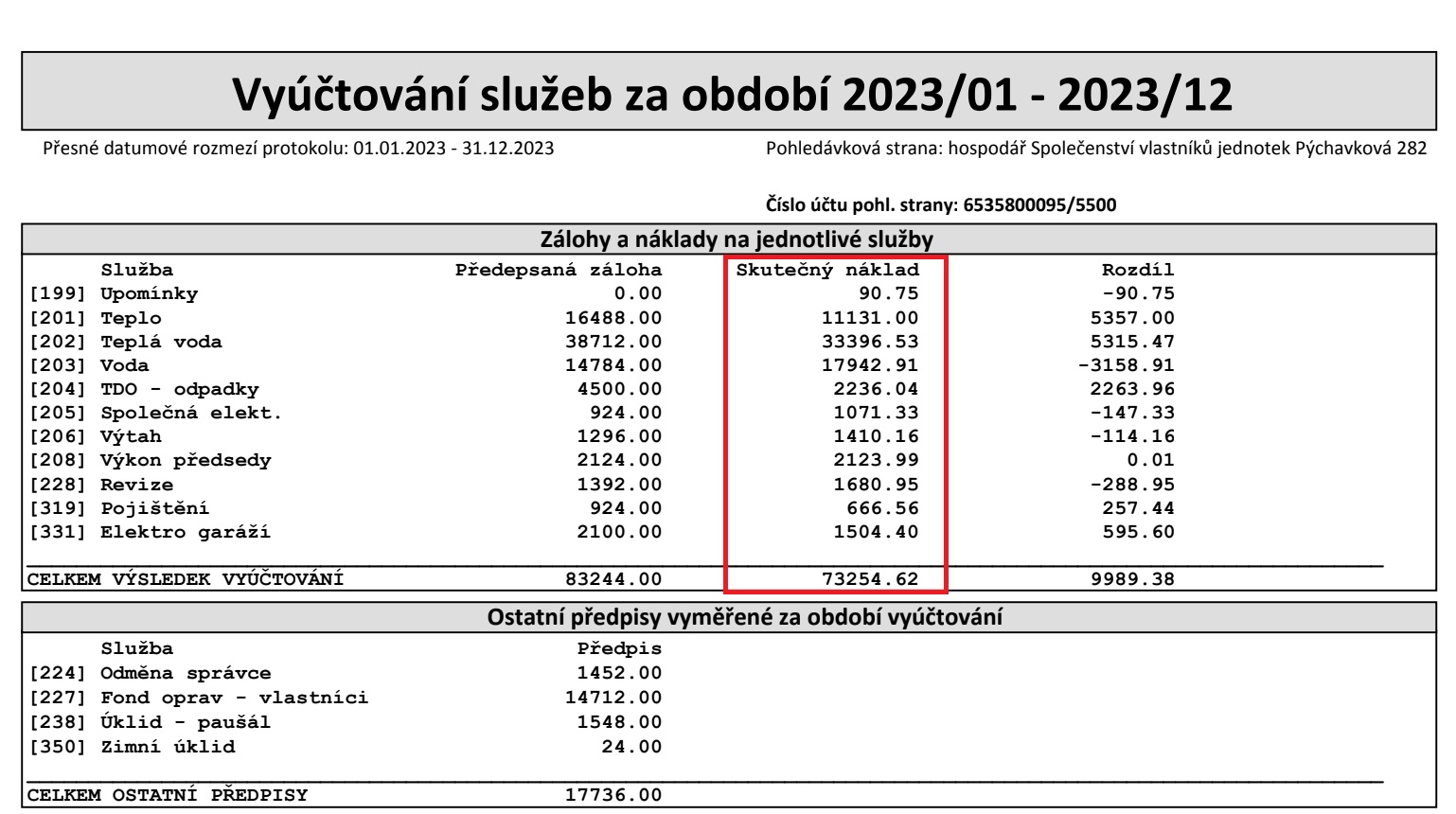 Poplatky - vyúčtování za rok 2023 (2 osoby)