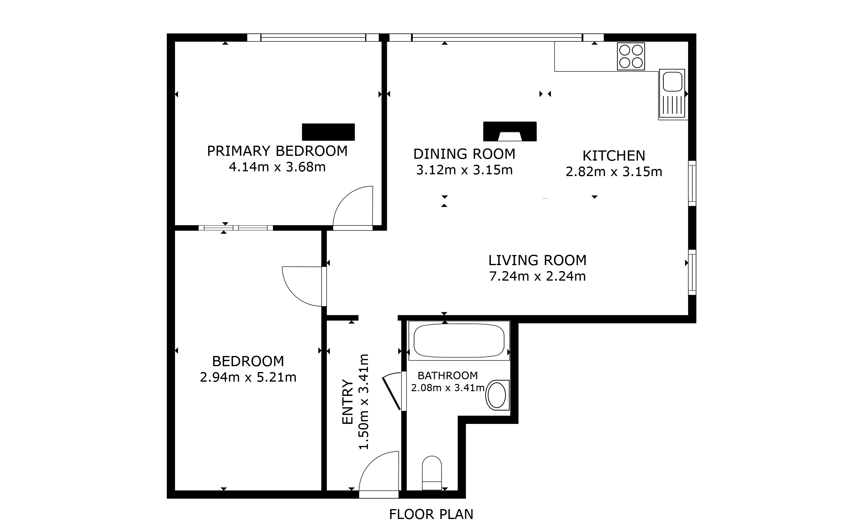 Plocha hlavní místnosti dvoupokojového apartmánu je 28 m2. Okno je taktéž orientováno na jižní stranu.