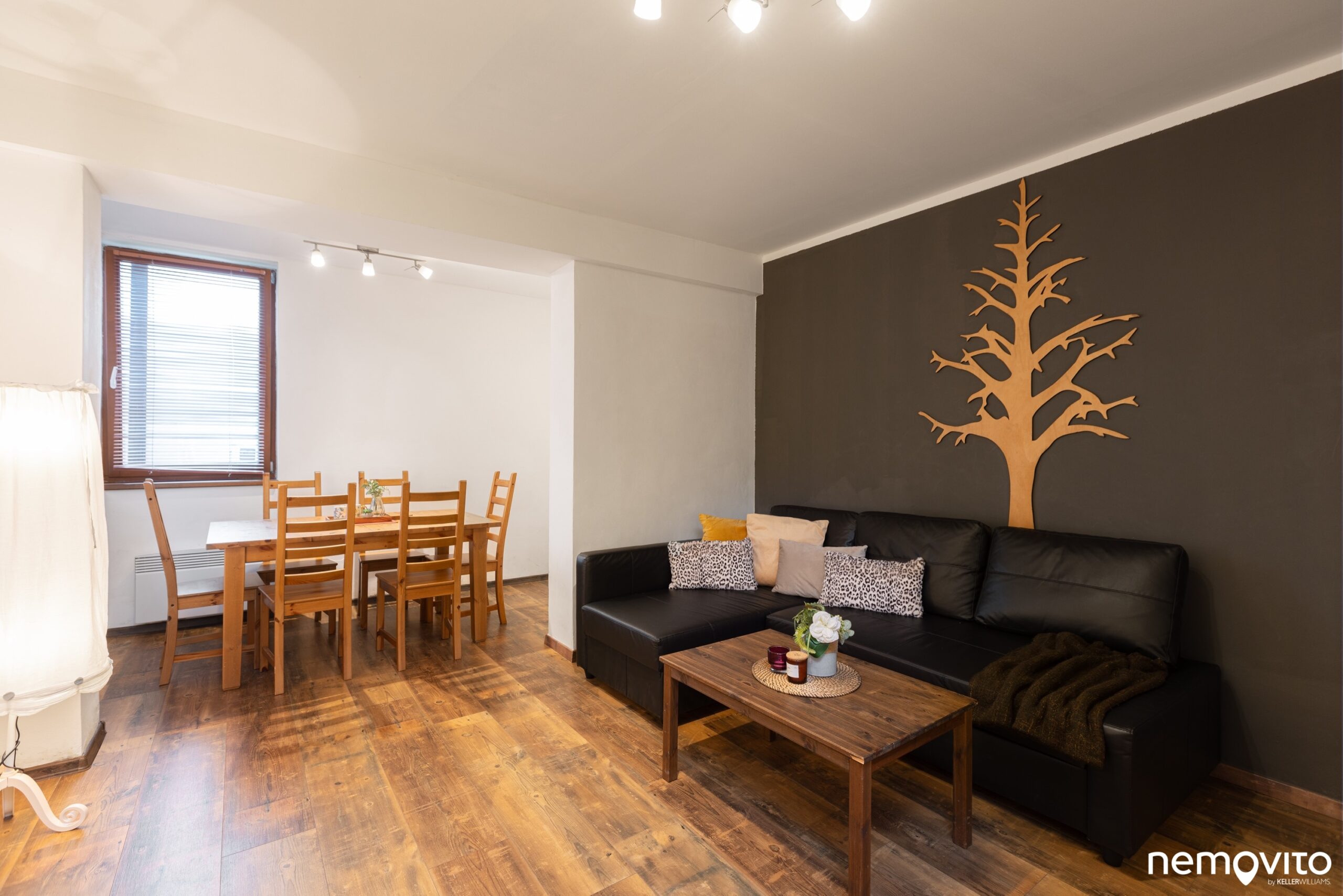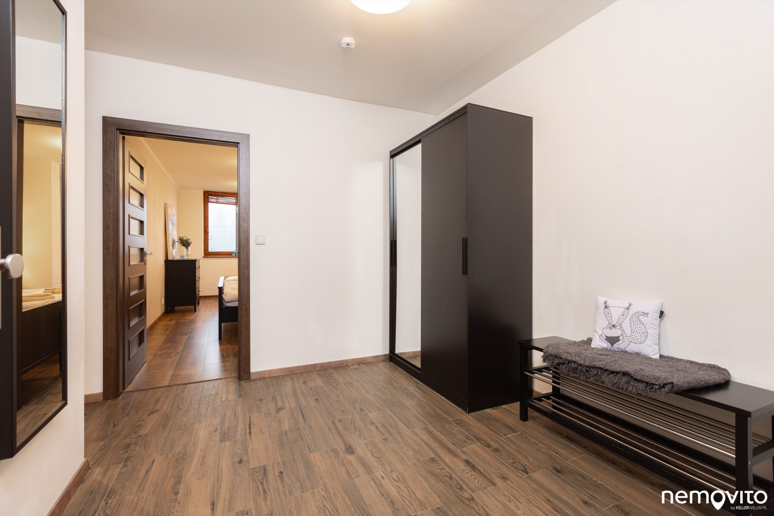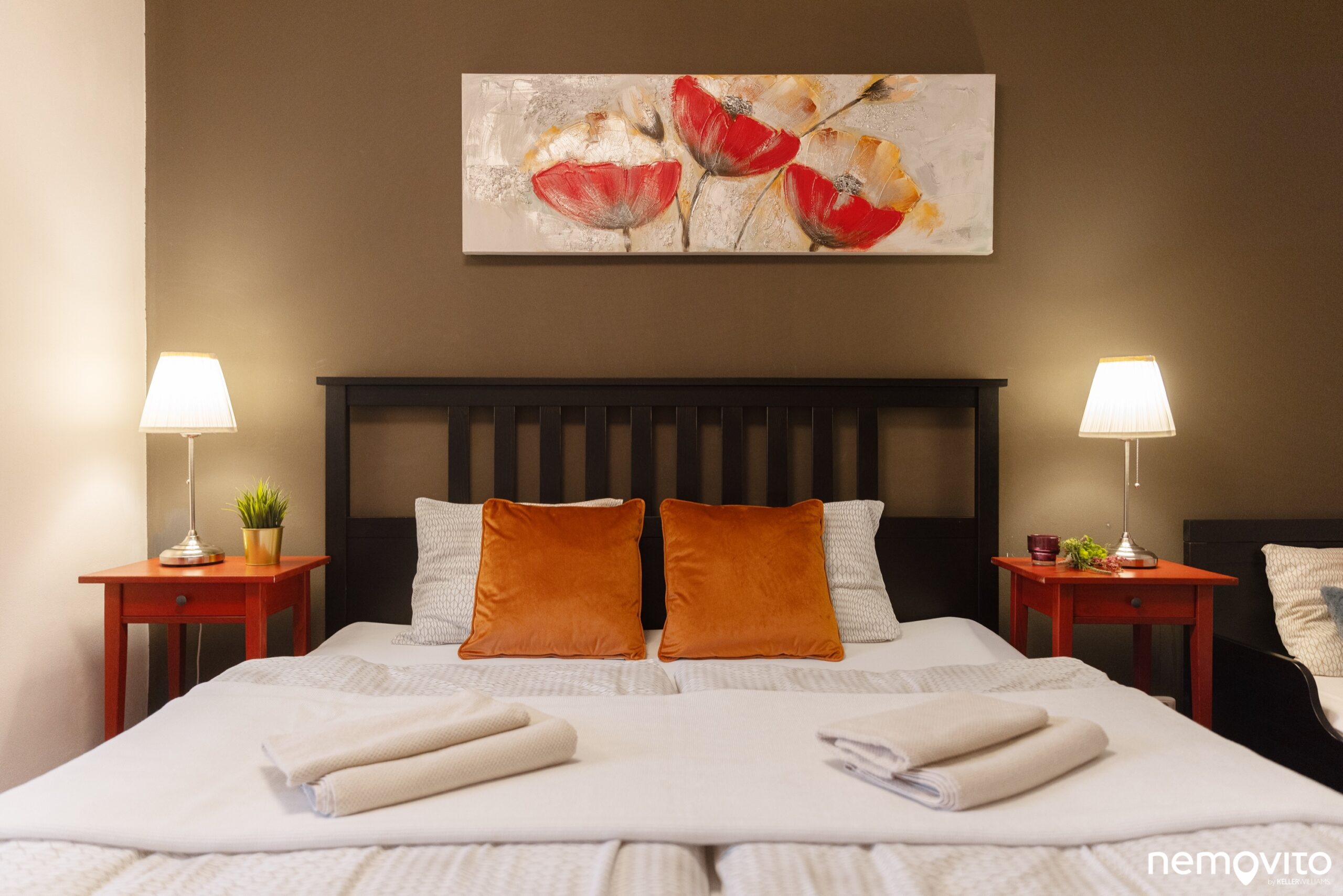Ložnice má 18 m2 a umožňuje tak umístění 4 lůžek. Ačkoliv se jedná o 2kk, bez potíží a v pohodlí se vyspí i rodina se 2 dětmi. Na roztahovacím gauči v obýváku navíc zvládnete ubytovat i dvoučlennou návštěvu.