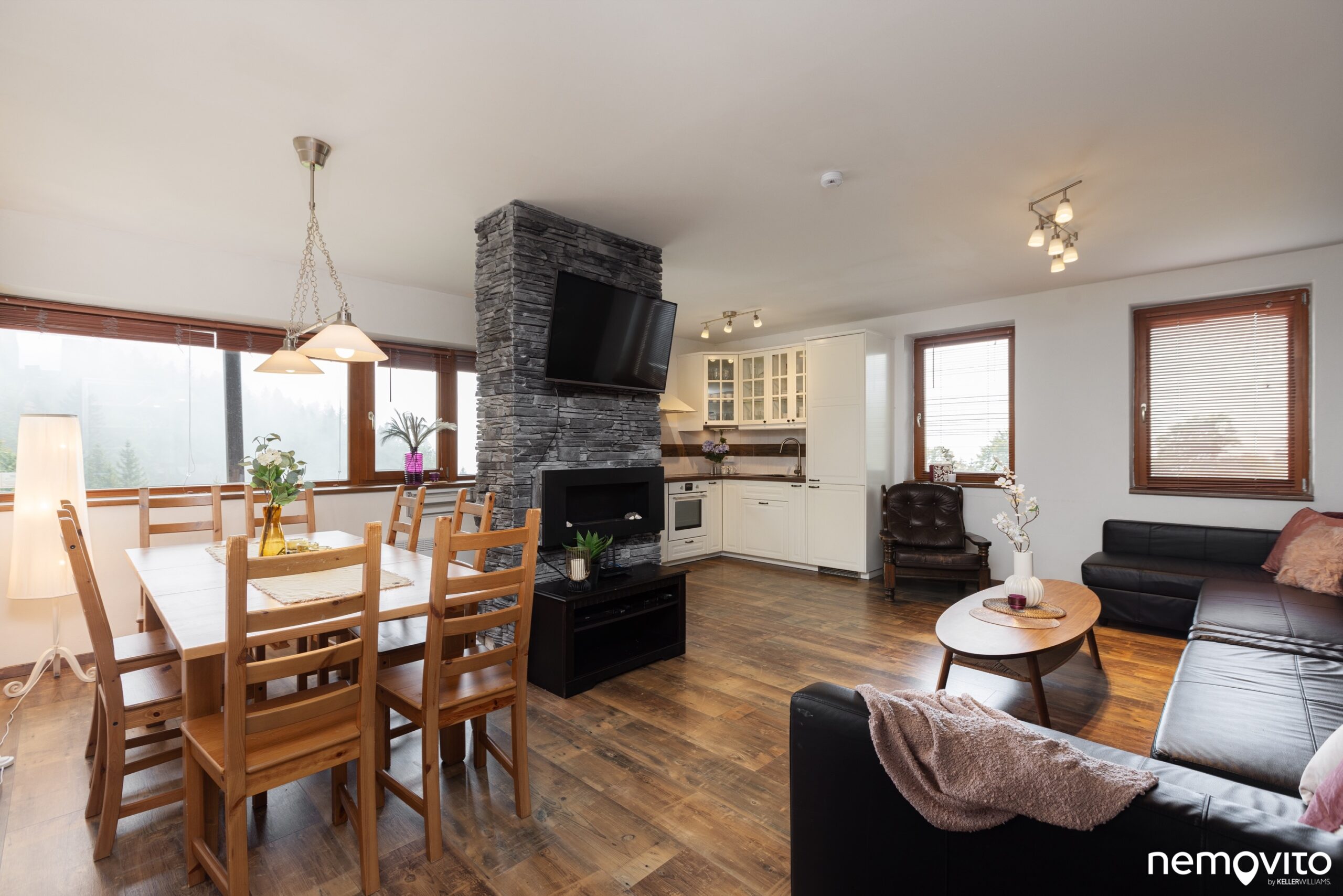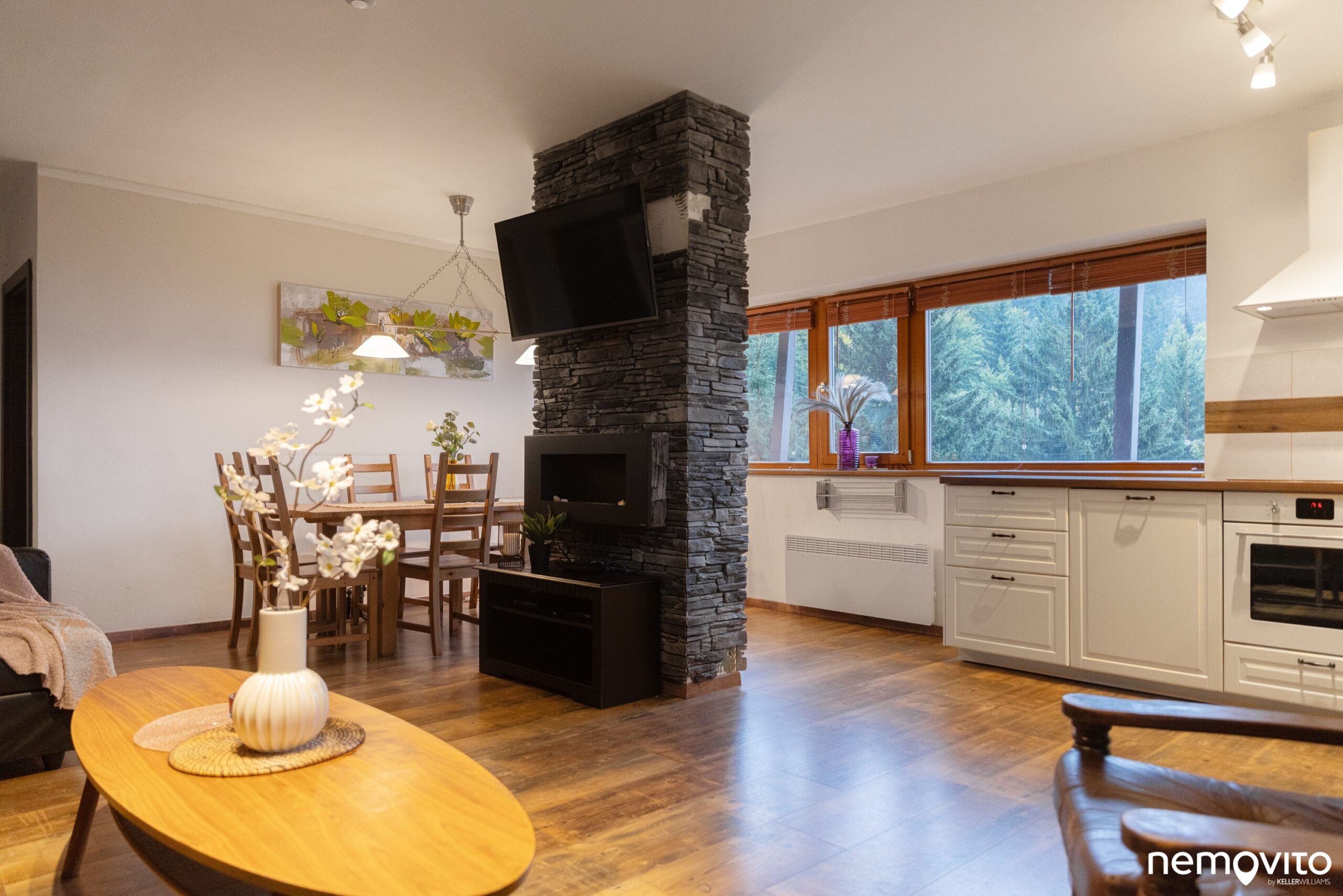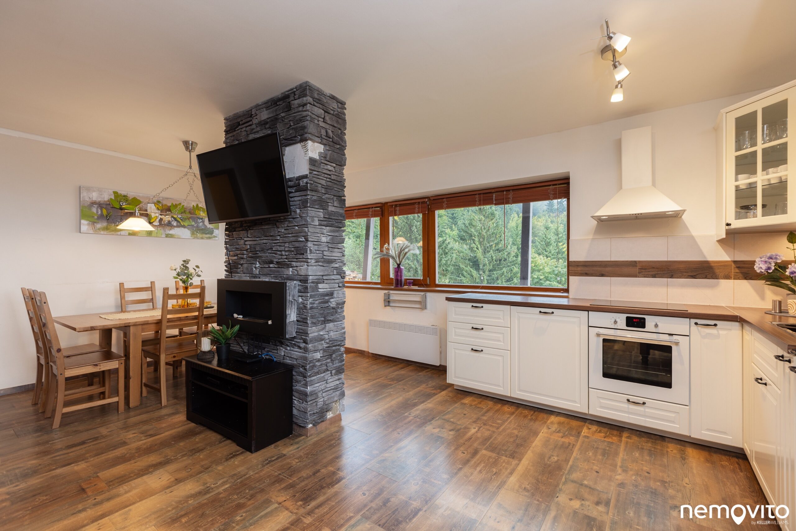 V přízemí horské chaty, která byla vybudována v roce 2007, mám pro vás k dispozici celkem 3 apartmány. Pro větší rodinu 3kk, pro ostatní pak hned dva kousky dispozice 2kk. Okna na jih, kolem dokola žádný provoz, výhled do lesů a údolí. Apartmány se prodávají kompletně zařízené, takže stačí sbalit batůžek a vyrazit do Rokytnice. Ale pozor, tady často leží háček - není Rokytnice jako Rokytnice. Rokytnice umí být taky pěkná placka zastrčená kdovíkde. V tomto případě se bavíme o Horní Rokytnici a skutečných horách, ne bytečku ve městě. To jen tak, aby bylo jasno. V letních měsících sem bez potíží dorazíte autem, které navíc zaparkujete na vlastním pozemku s parkovacím stáním. V zimě na auto zapomeňte. Nejen to svoje, ale i všechna ostatní. Nemají tu co dělat, protože tady ještě vládne ta pravá zima. Nicméně od lanovky, která vede přímo z města, to máte naštěstí jenom 650 m. Sjet si pro chybějící mlíko tedy zas takové drama nebude.
