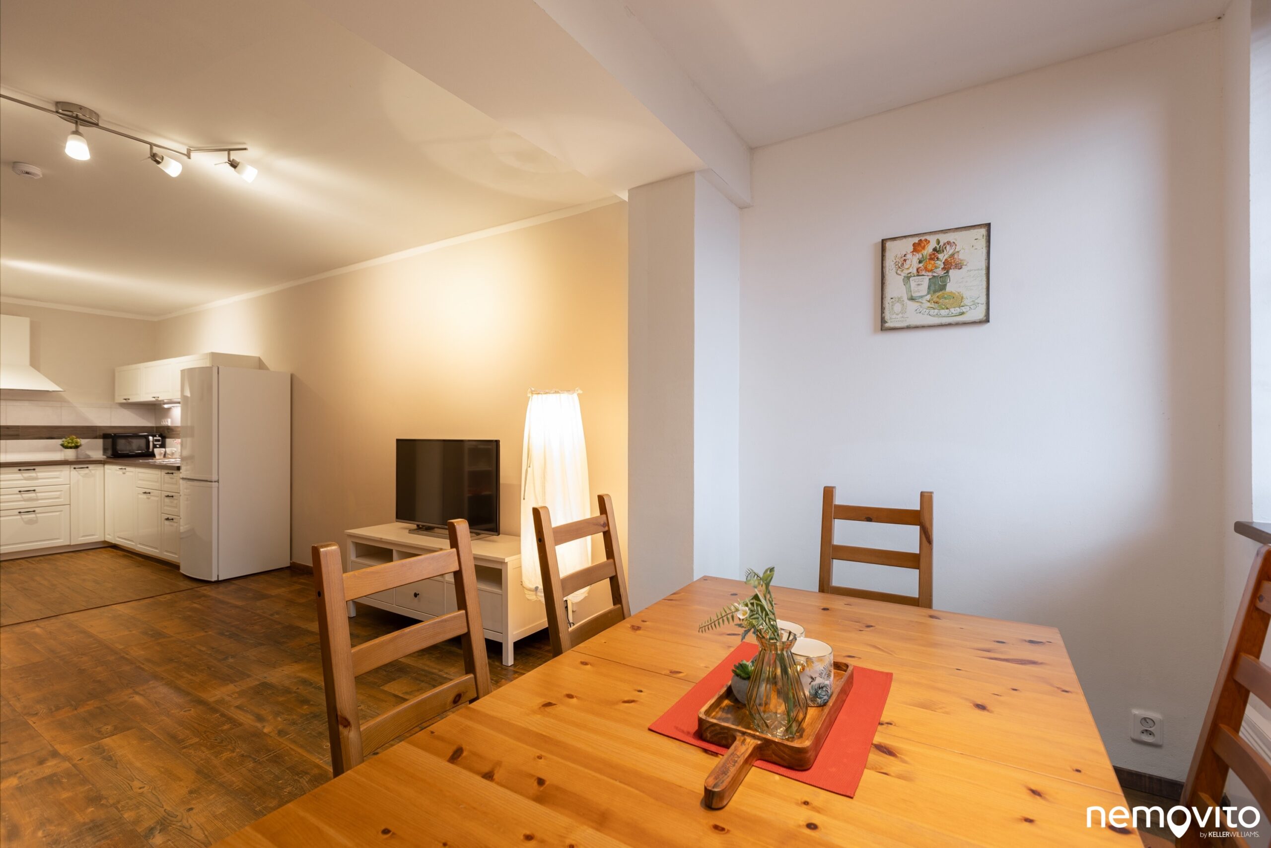 Stejně jako u většího, i tady platí, že se prodává včetně vybavení. I v tomto případě náleží k apartmánu pozemek před okny.