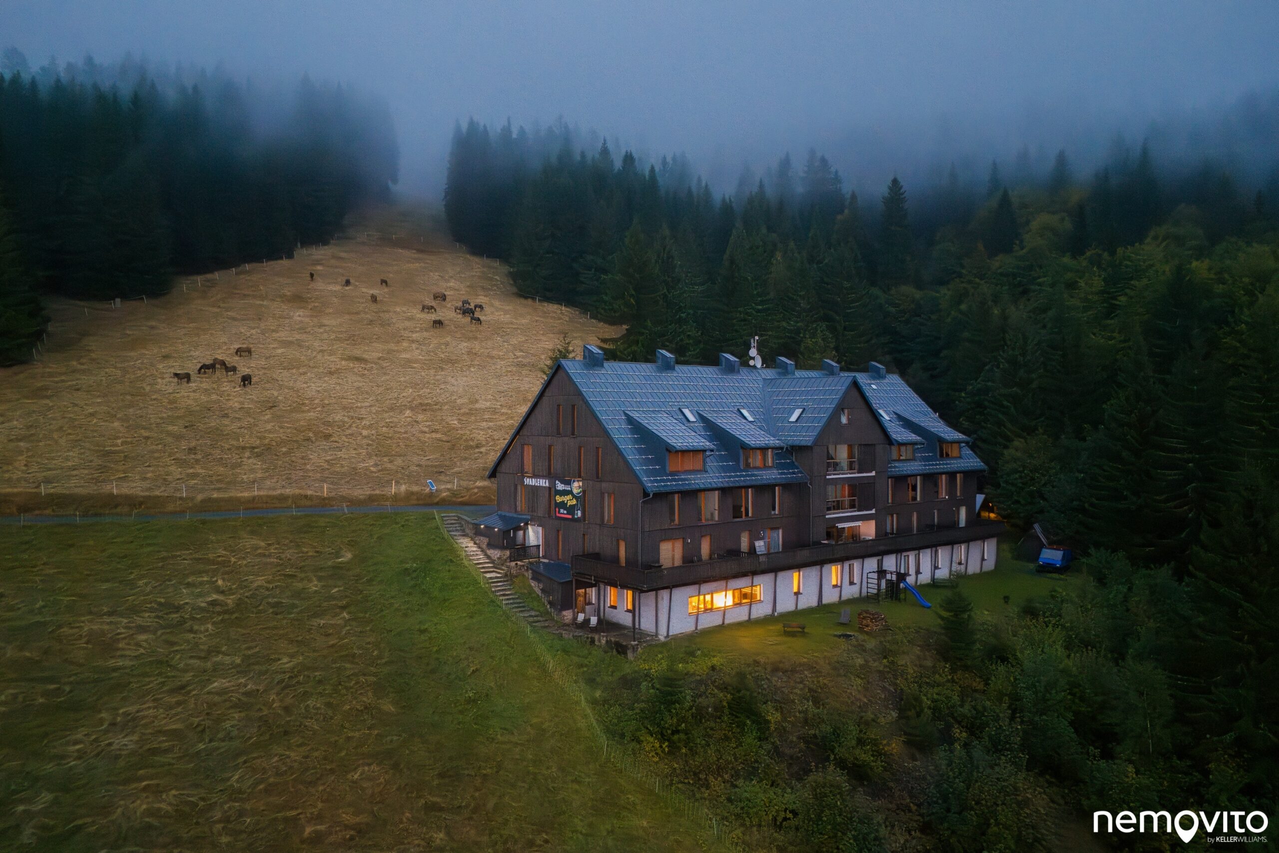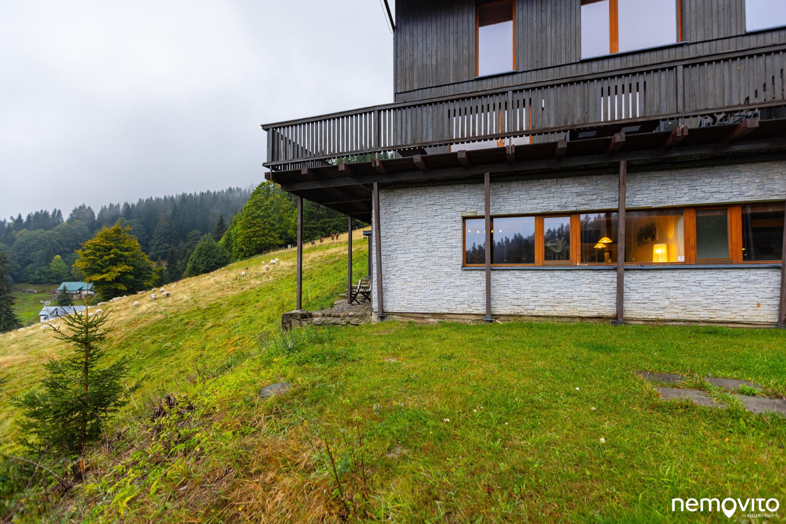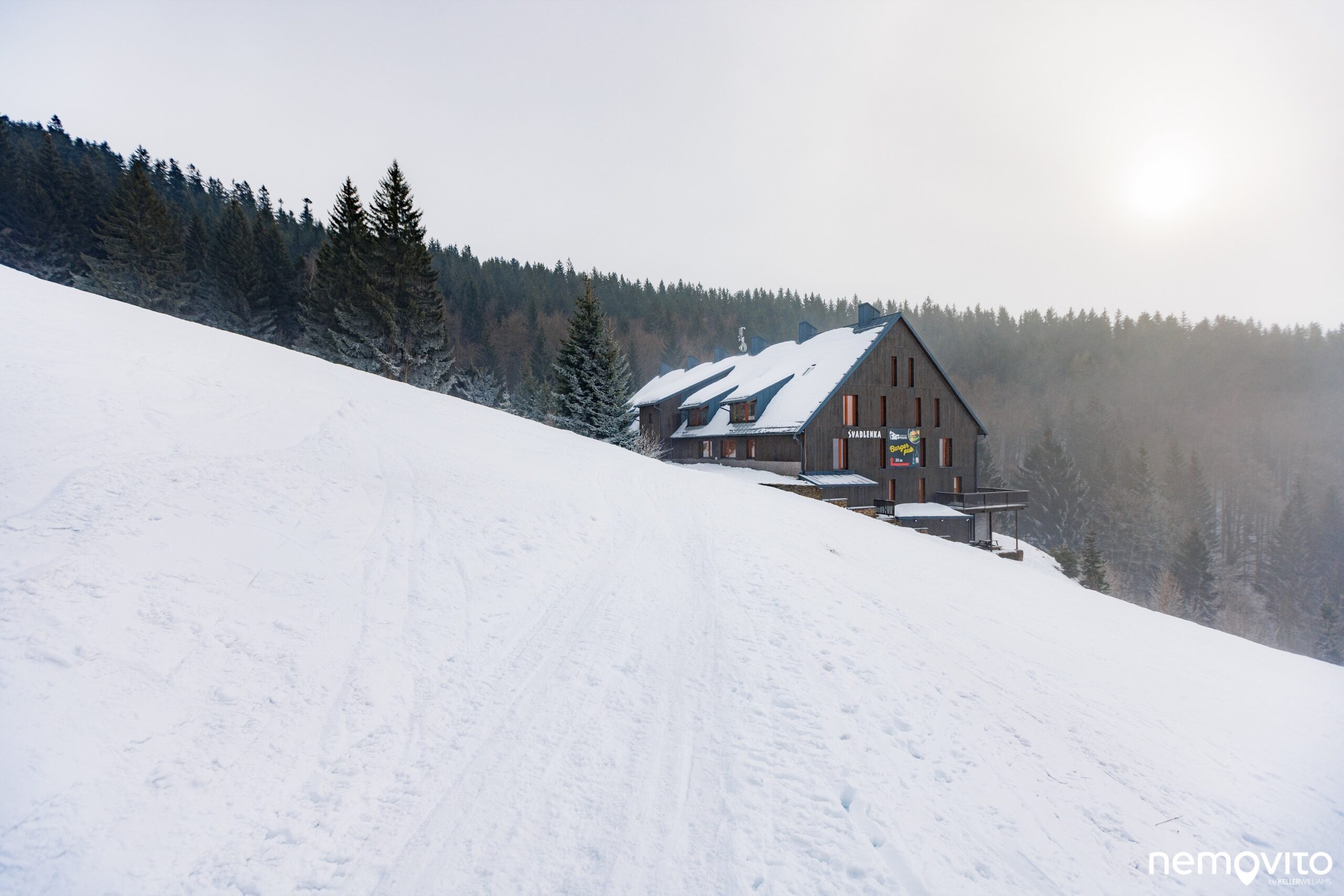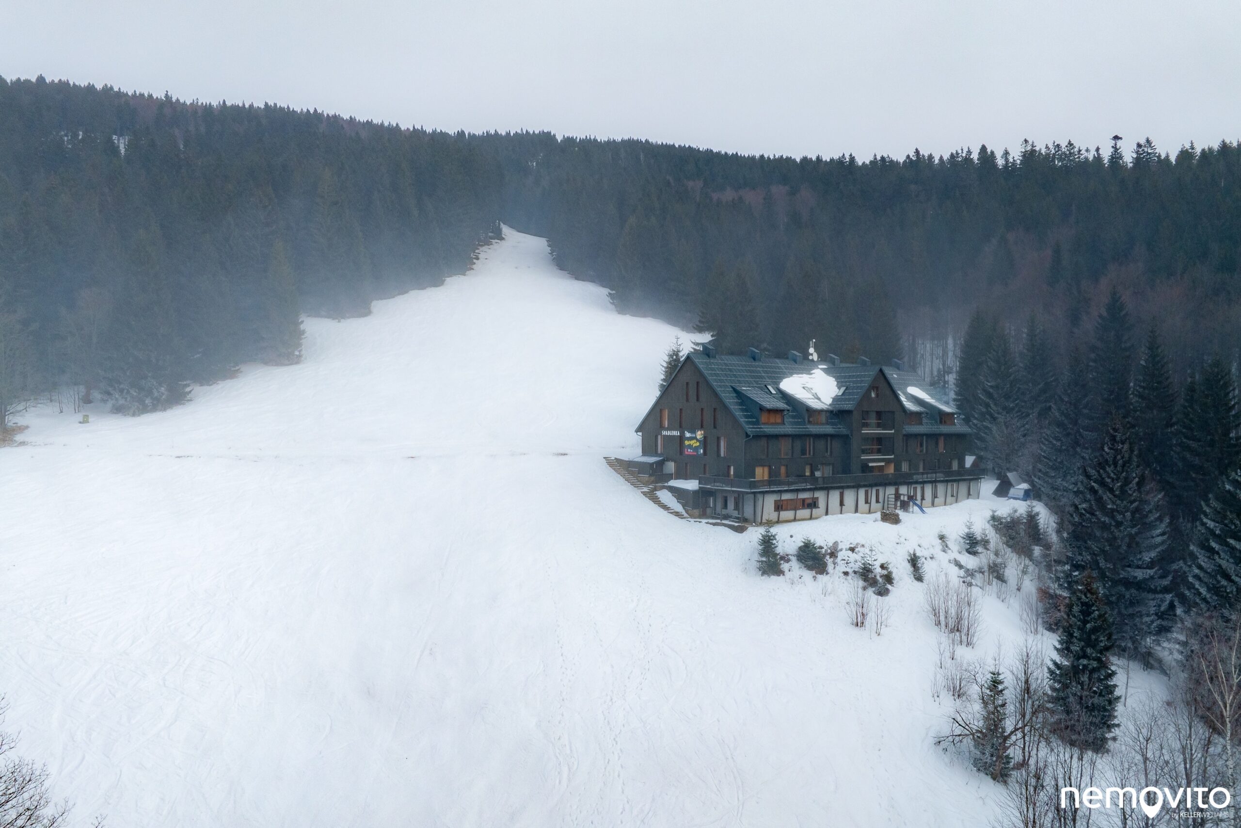 O něm by se dalo básnit donekonečna, ale budu se snažit držet při zemi. V teplejších měsících se stává z přilehlého svahu pastvina, ale můžete hádat dvakrát, co se tady děje v zimě. Nabízené apartmány svítí v levé spodní části budovy.