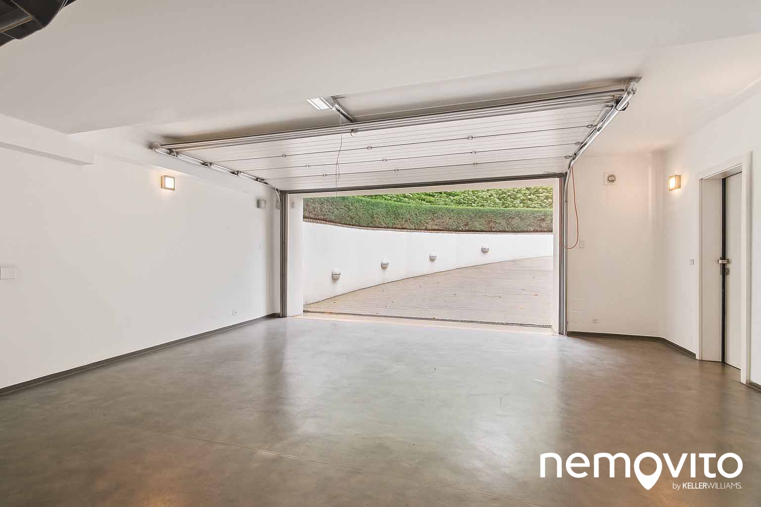 Druhou část suterénu tvoří garáž na dvě auta (cca 33 m2) a také technická místnost s prádelnou, do kterých je vstup po pravé straně. Nájezdová rampa je vyhřívaná.