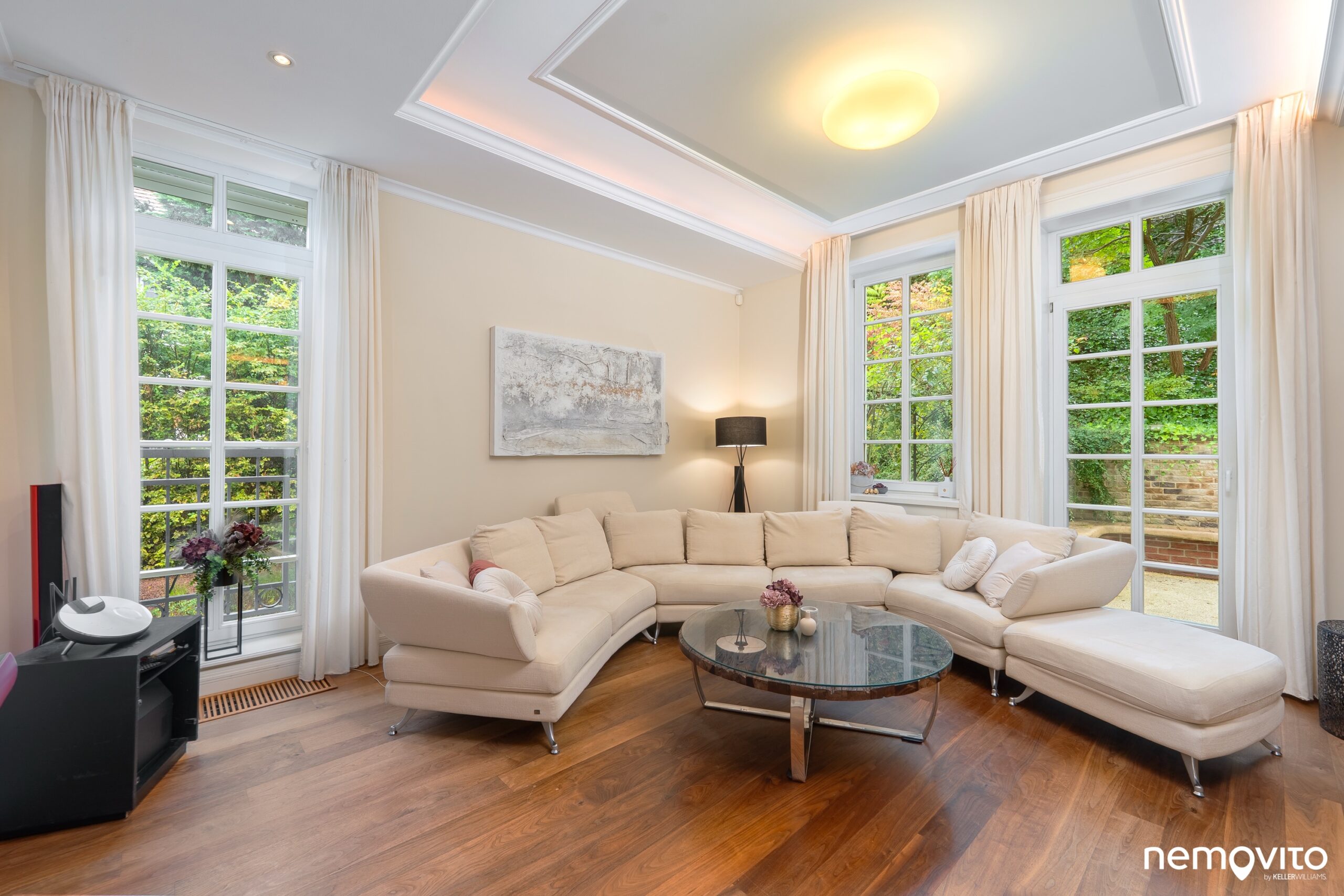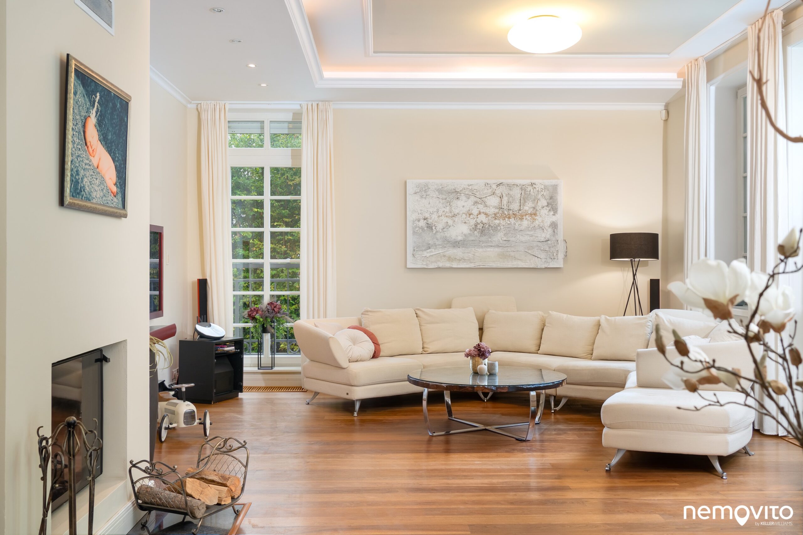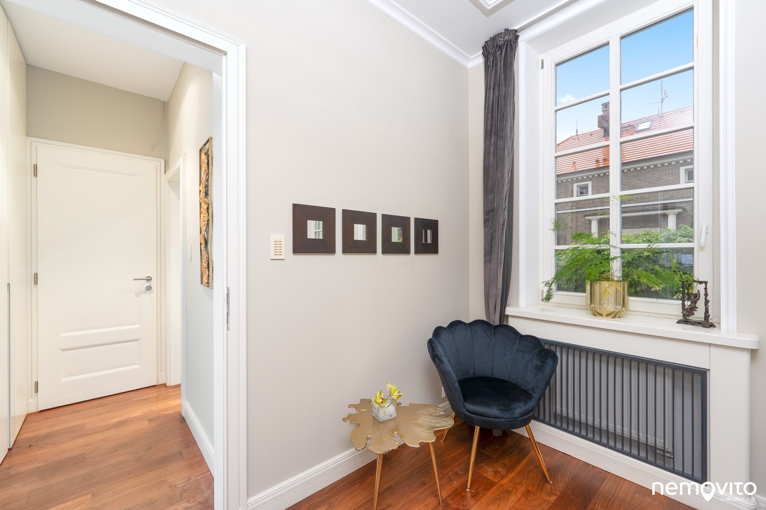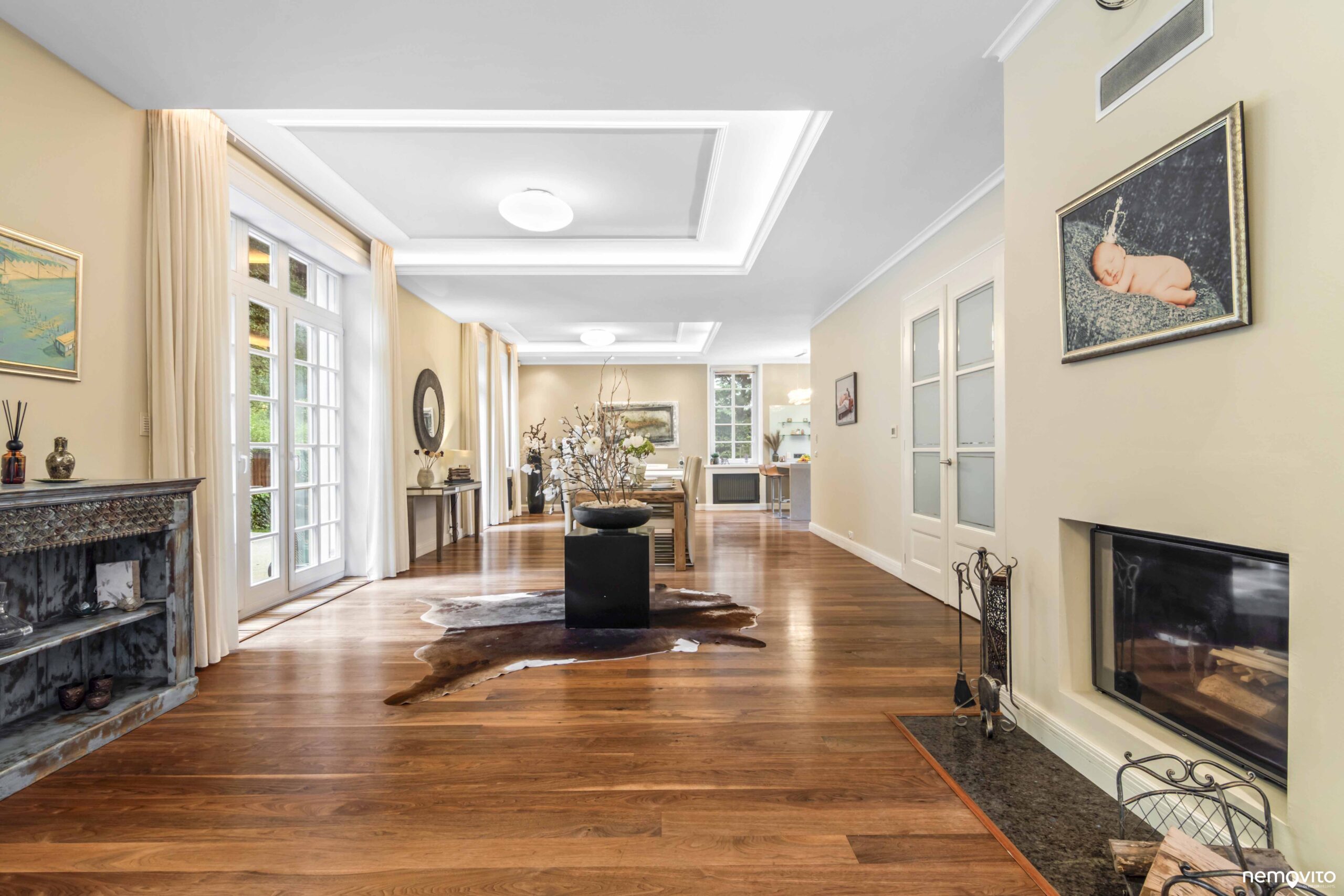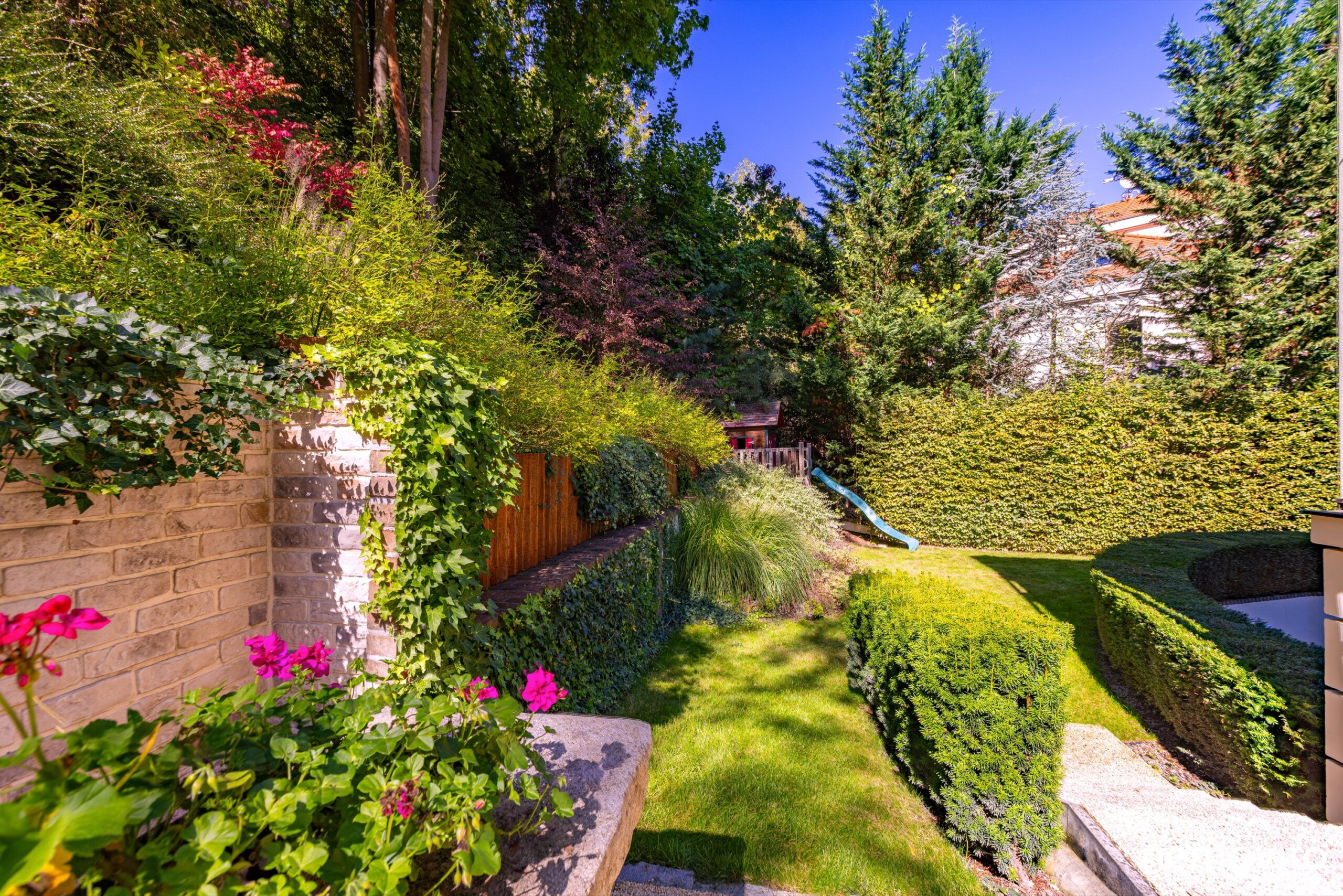 Posilovna, vnitřní bazén, parní lázeň. Vše potřebné k ranní rozcvičce či aktivitám pro pochmurné počasí naleznete dole, kde si však nebudete připadat jako ve sklepě. I do této části se dostávají paprsky díky velkým francouzským oknům z boku domu, s přístupem na jižní terasu. Díky velkým odstupům od sousedů nejsou okna stíněná, ale zejména jsou skutečně rozměrná, a tak si budete ve všech místnostech užívat velké spousty světla. Útulně zařízený interiér navodí příjemnou atmosféru již od prvních kroků. Kouzelný dojem, který vytvoří obývací pokoj s takovou plochou, že by se tu dal uspořádat malý vídeňský ples, si z první návštěvy odnesete stejně jako já. Popíjení u zapáleného krbu a gentlemanské či dámské diskuze pak dostanou skutečně nový rozměr. Hosty ubytujete v hostinské části dole, zatímco vaší ložnici nahoře asistují ještě dva dětské pokoje. Nechybí 3 koupelny, 3 hlavní šatny, technické zázemí nebo prádelna. Jednoduše neschází nic, co by pořádný dům dané kategorie měl obsahovat. Přitom však stále zůstává kompaktní a z jeho údržby, ať už technické nebo provozní, nebudete šílet. Všeho dost, ale ničeho nevyužitelný nadbytek. Smysluplný luxus, který zůstává mimo zraky veřejnosti, a který nemusí křičet do ulice. Objevte kouzlo gated community, která je v Čechách stále velmi neobvyklá, a to přímo v jednom z nejhezčích a nejzelenějších míst hlavního města.
