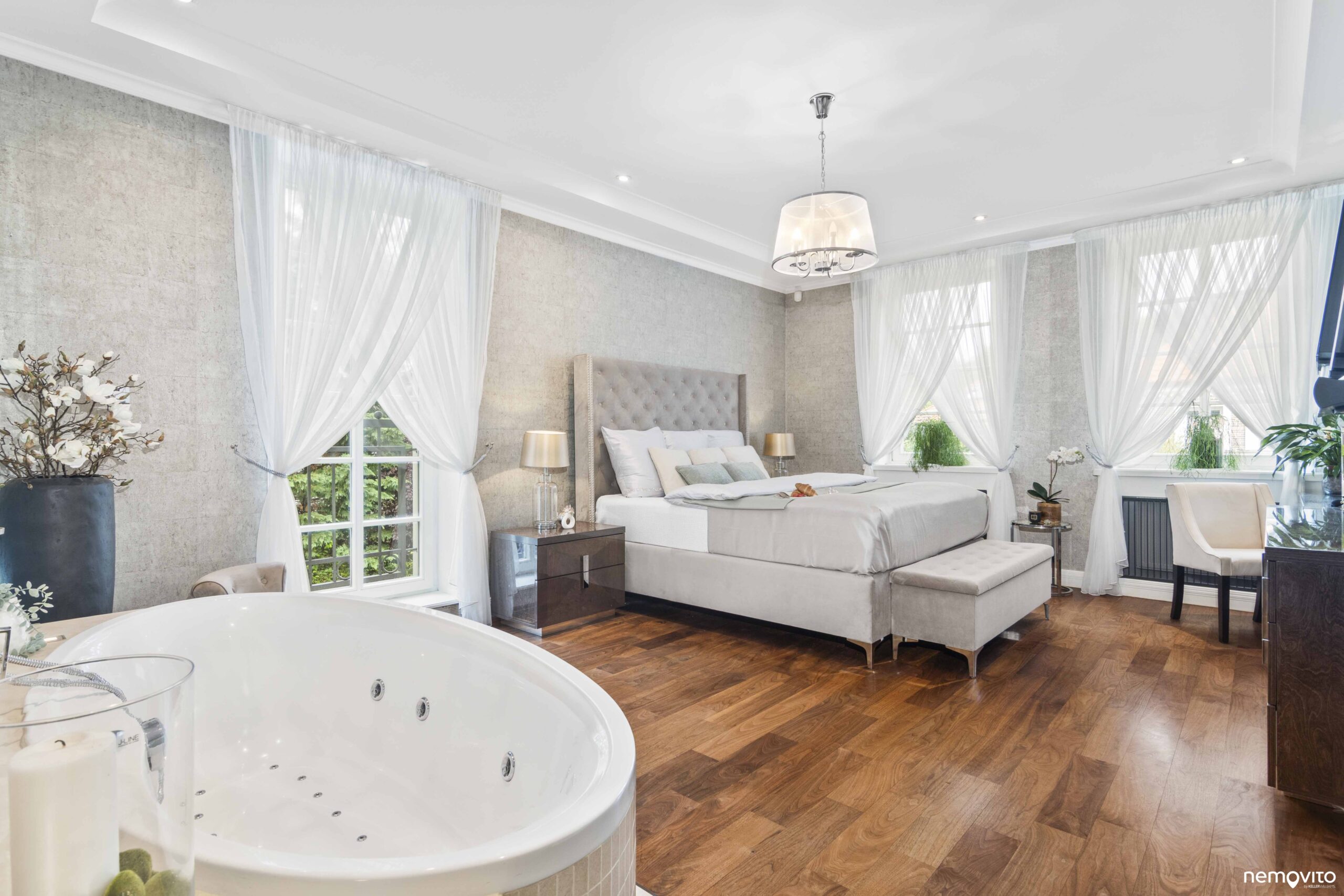Master bedroom jak se sluší a patří. Šatna, koupelna, volně stojící vana a 24 m2.