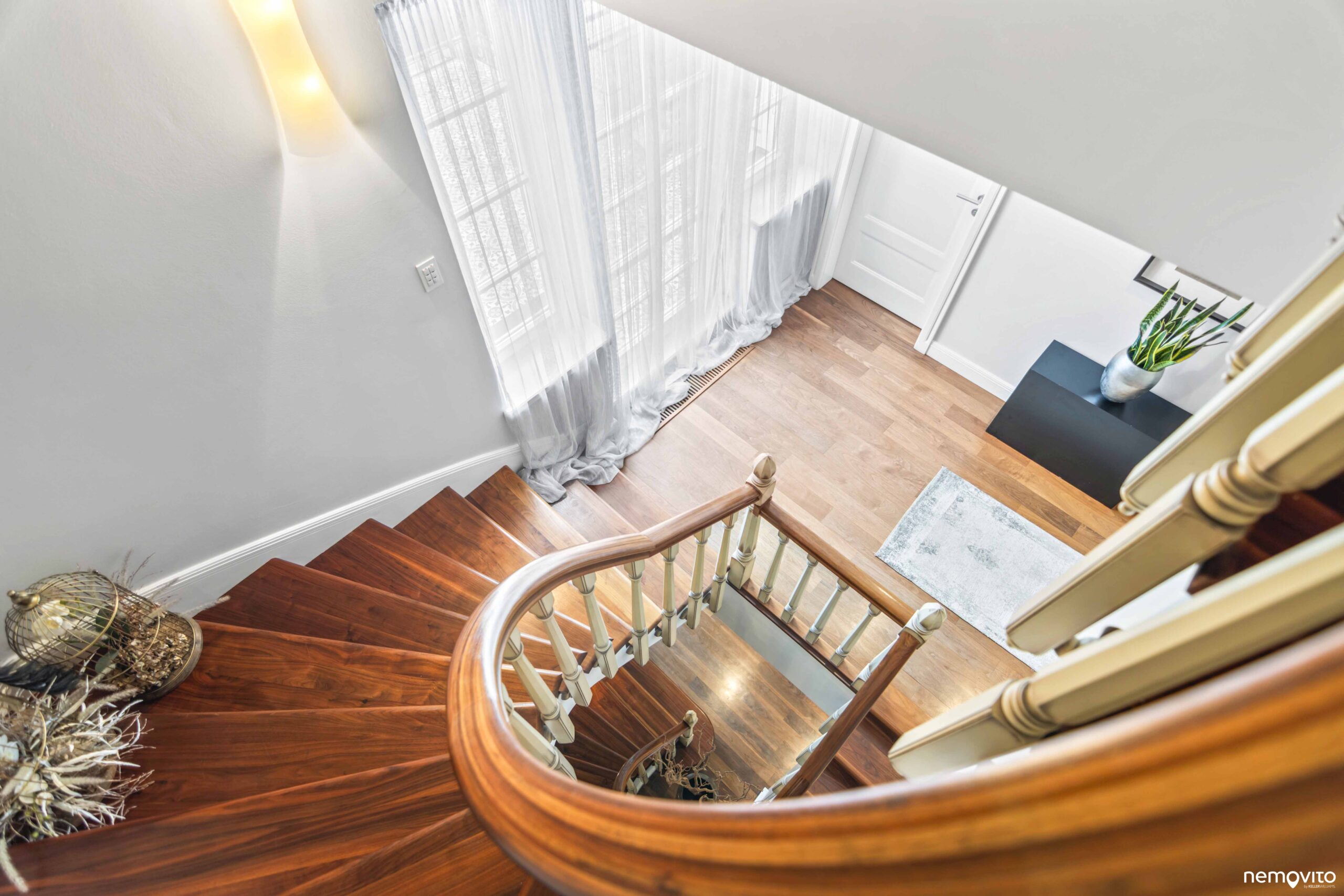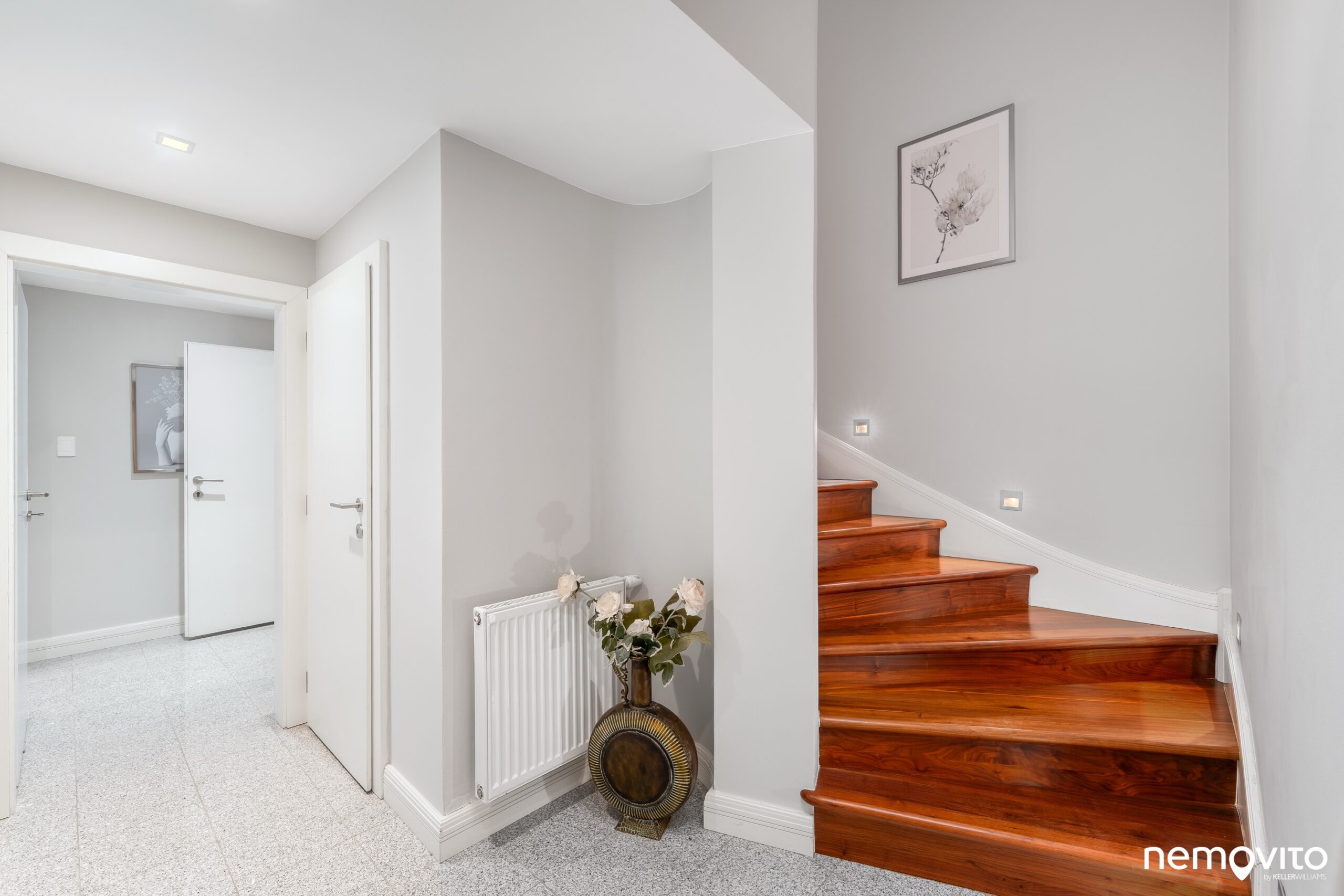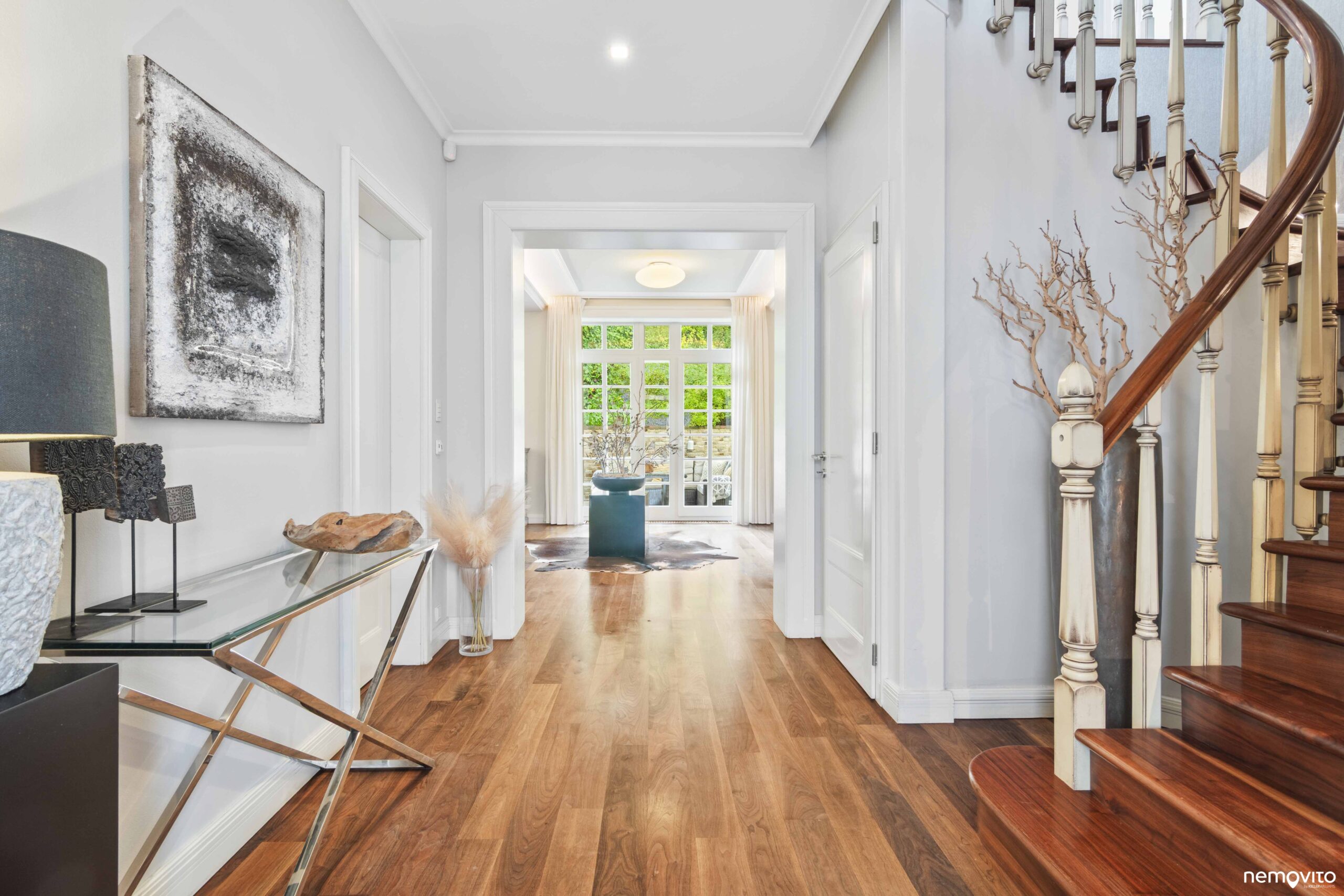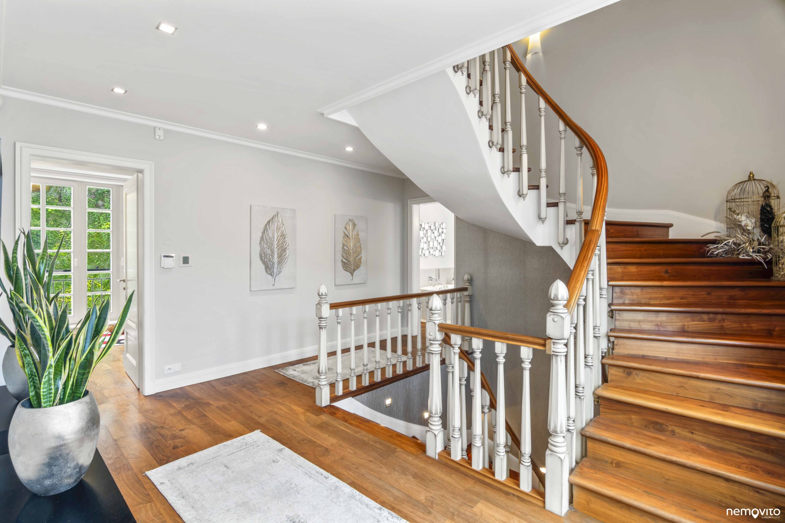 Audienci poskytne dům všem návštěvám v hale, které dominuje nádherné dřevěné schodiště, a vzadu pak výhled přes velké okno na terasu. Vstup opravdu zapůsobí.