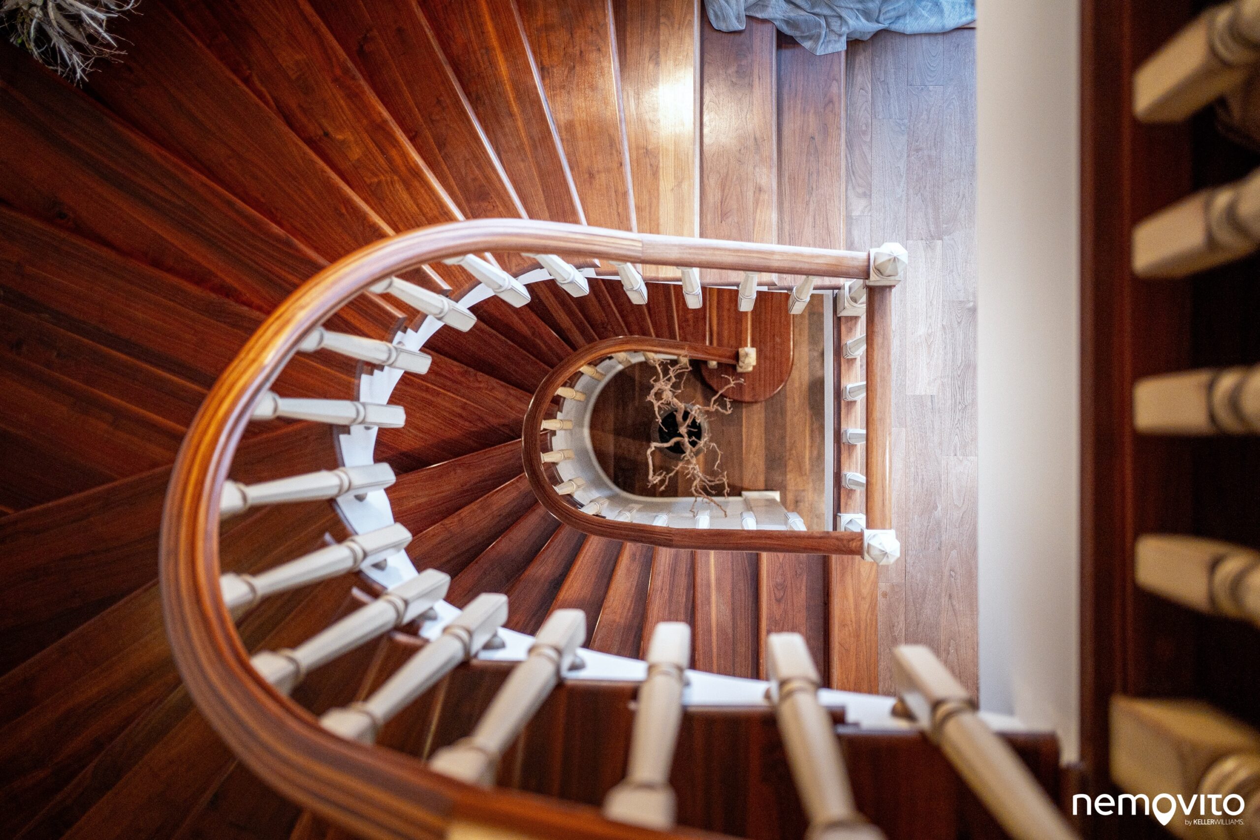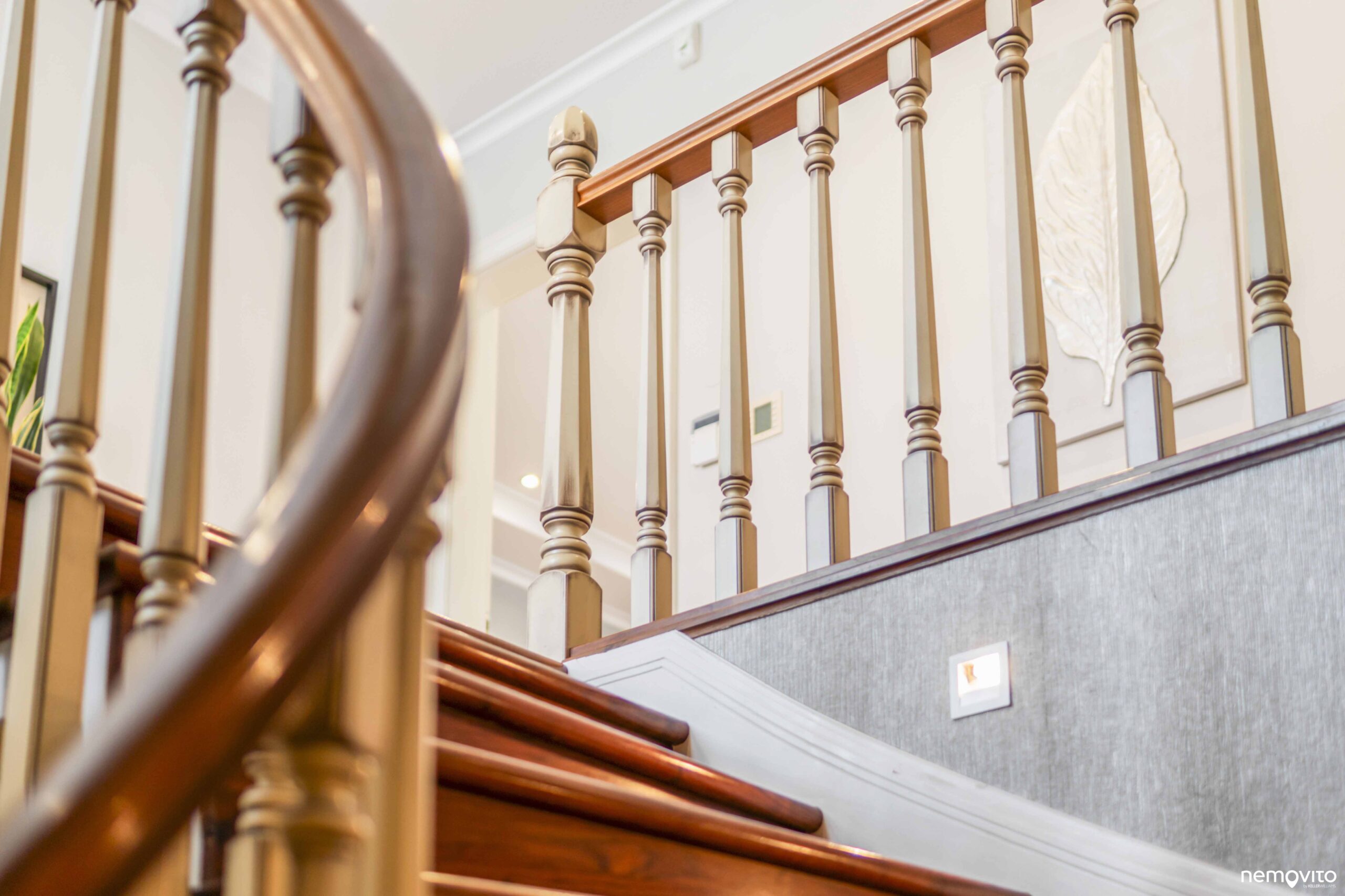 Přes nádherné patinované schodiště se přesuneme do druhého podlaží, kde jsou hlavní ložnice.