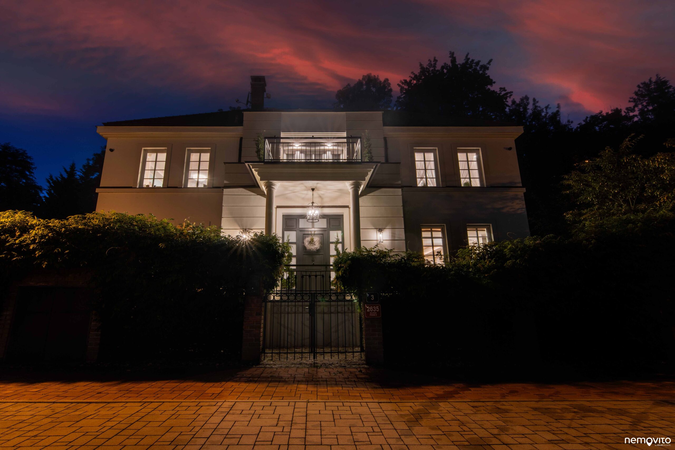 Mojí nejoblíbenější fází domu je stejně večer. Rozzáří se velká okna, která spolu s osvětlením zahrady zajistí, že můžete fotit do zblbnutí. Jen pro představu - fotek jsme tu udělali skoro tisíc. Vidíte jen úzký výběr. Všechny pak samozřejmě dostanete na flashce s lahví, kterou si dovolím předat jako pozornost pro první večer.