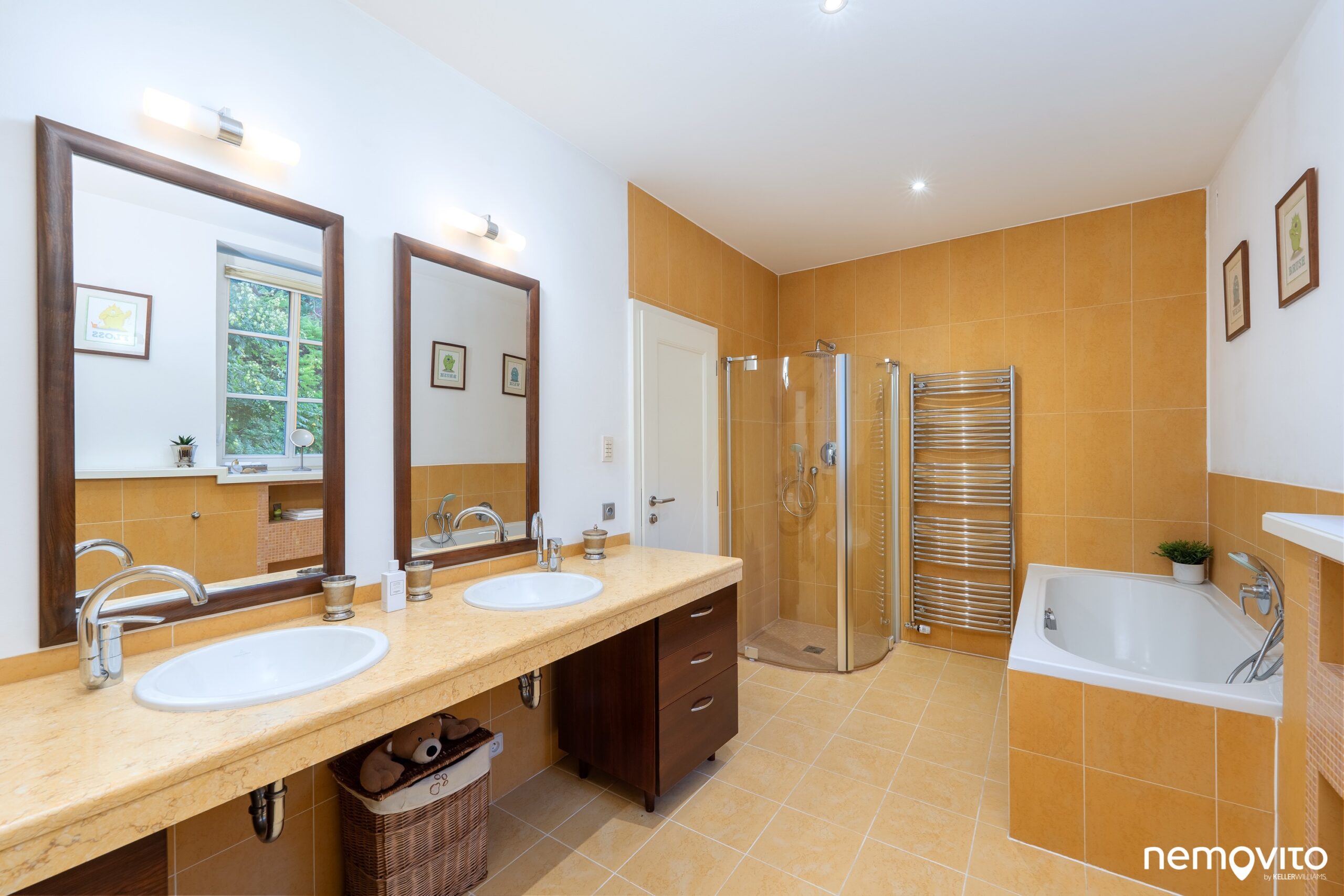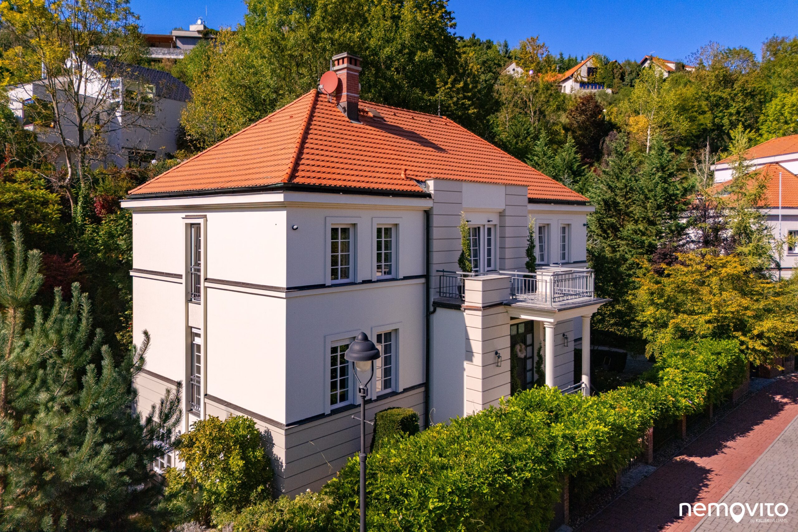 Jsou klidná místa, poté ta klidnější a pak ta, kde jako by okolní svět snad ani neexistoval. A přitom lehce přes 2 km na metro. Vila v Šáreckém údolí, která se nachází v uzavřené lokalitě 8 krásných domů, je kolem dokola obklopena zelení. Bez veřejnosti, bez provozu, bez jakéhokoliv ruchu. Klidně otevřete všechna velká okna tohoto působivého domu a díky přirozené bariéře, kterou tvoří údolí, tu zažijete v rámci městského bydlení opravdu nevídané, či spíše neslýchané okamžiky. Velký dům o třech podlažích, který vás úplně dole rozmazlí ve wellness zázemí, poté poskytne dostatek prostoru pro slavností večeři s přáteli a úplně na konci dne pak nabídne relax ve vaně přímo ve vaší ložnici, stojí na tomto fantastickém místě od roku 2006. Možná byste mu tipovali víc, ale to je dáno jeho klasickou podobou, která dokonale zapadla mezi okolní zelené kopce. Pokud jste milovníci moderny, pak se budete muset přesunout jinam a ruku na srdce - pravděpodobně na horší místo. Pokud ale stojíte o dům, který ctí tradiční podobu a místo laciné opulentnosti razí heslo jednoduché krásy, pak budete z této vily nadšení.