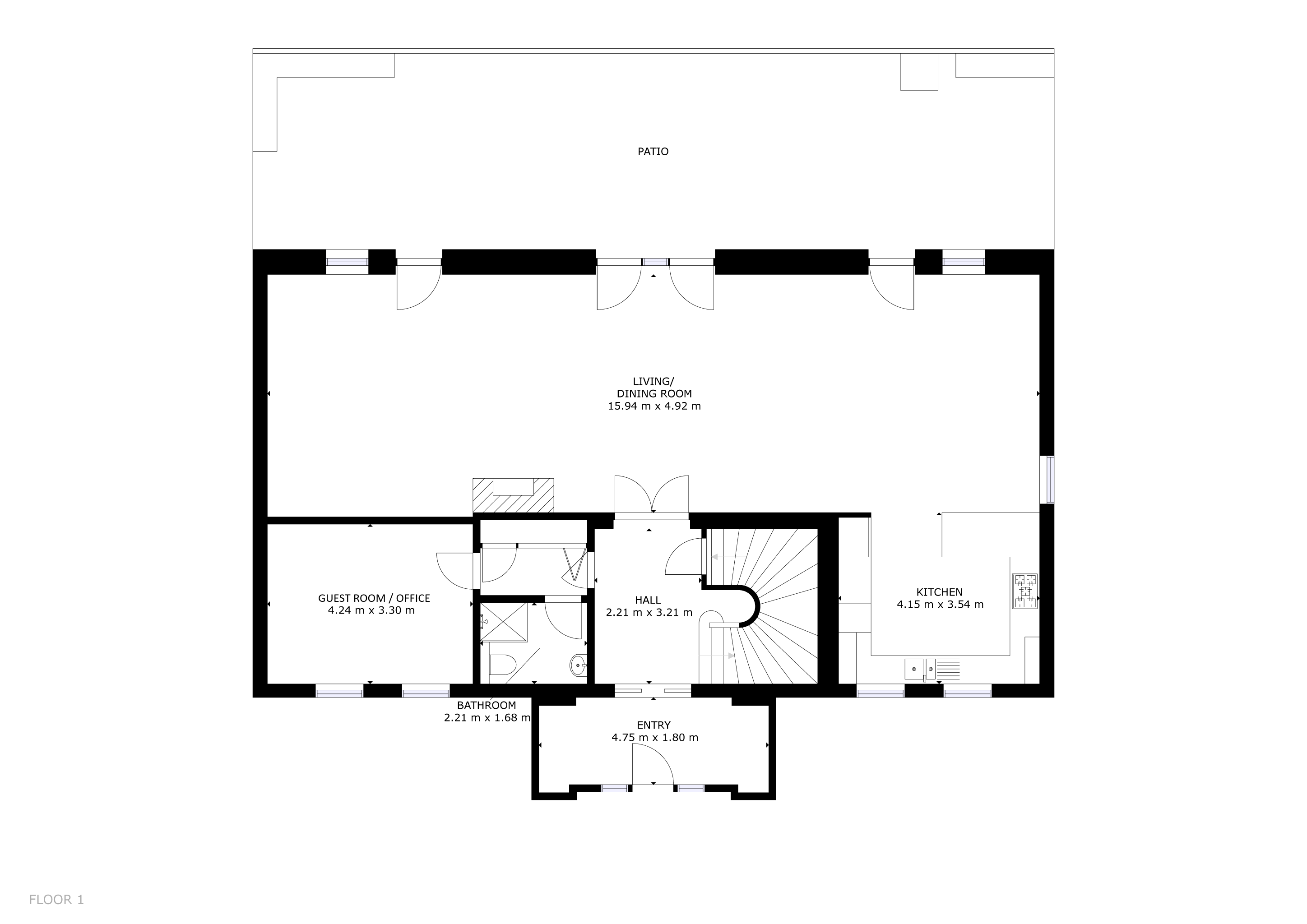 Prostor má na délku 16 m a je tu hned 7 velkých oken.