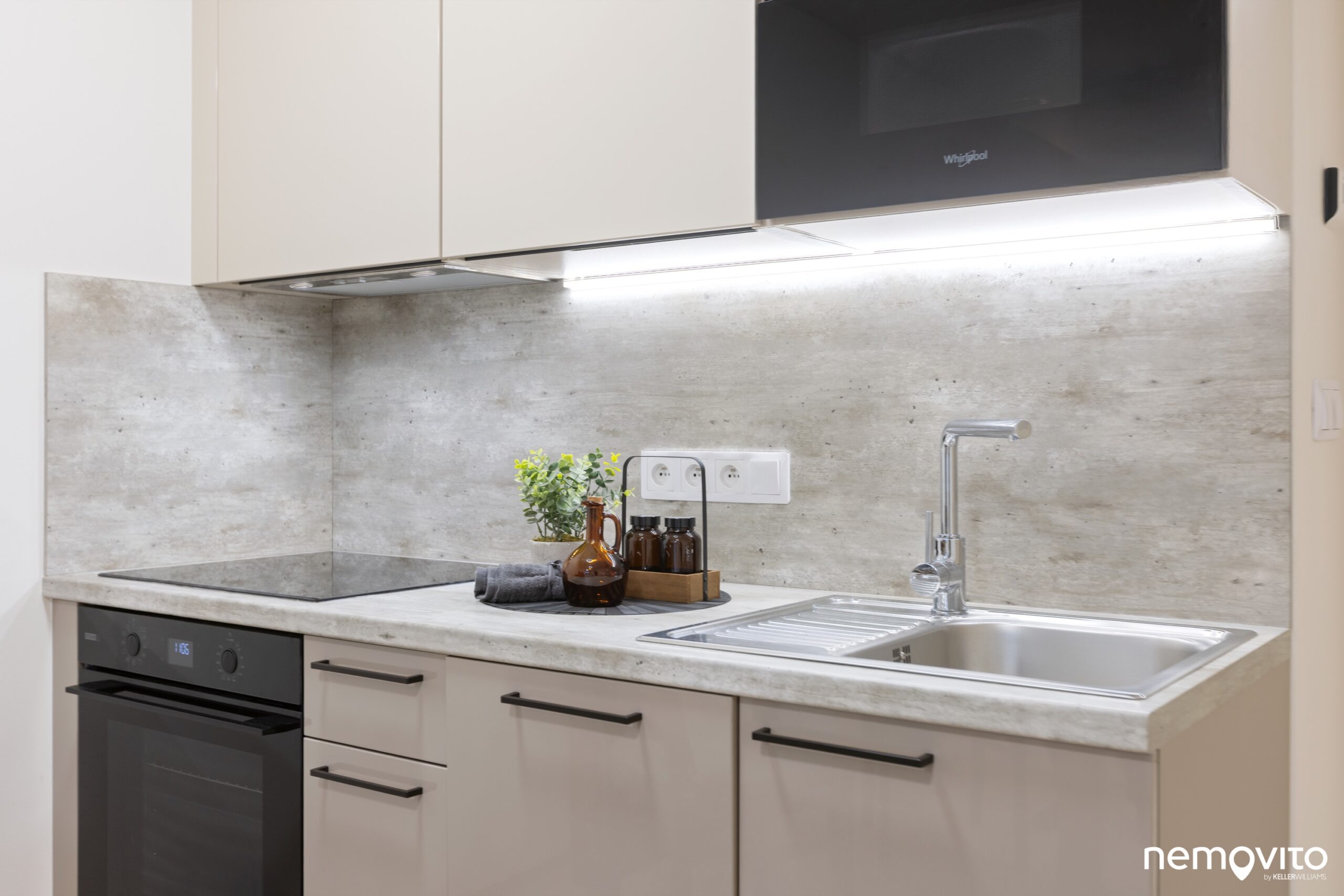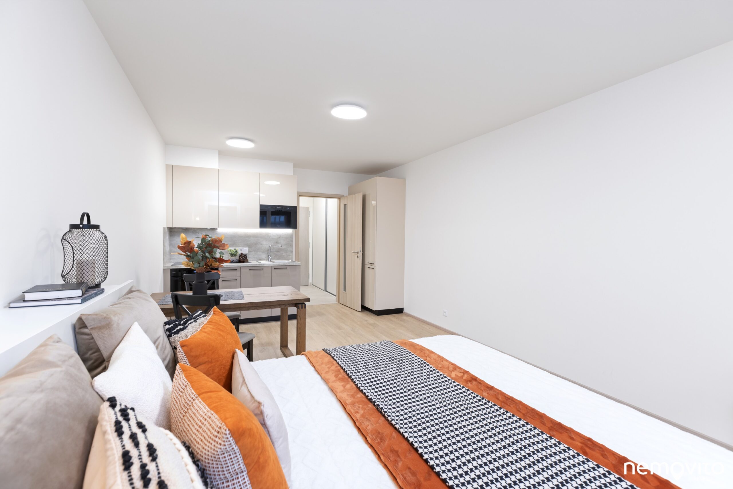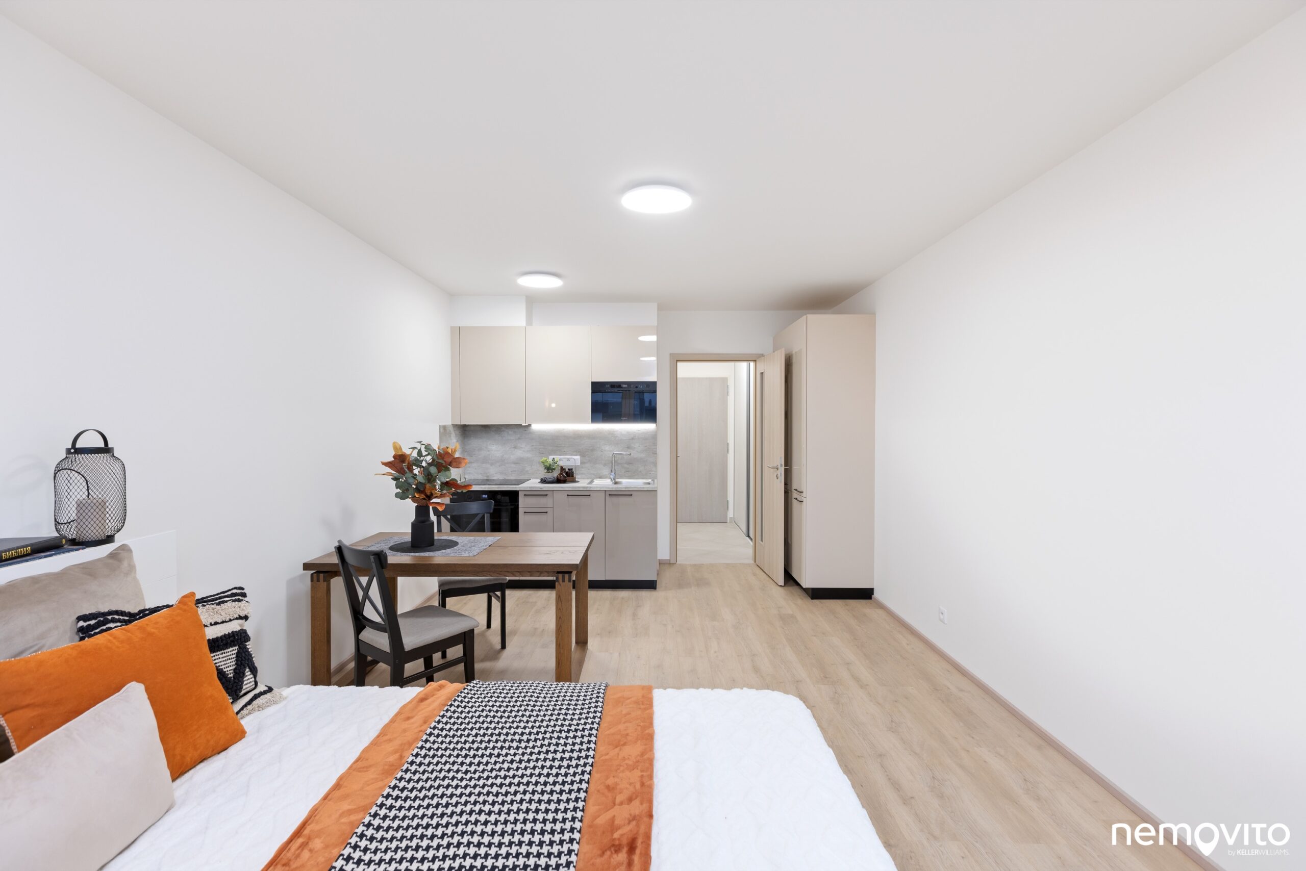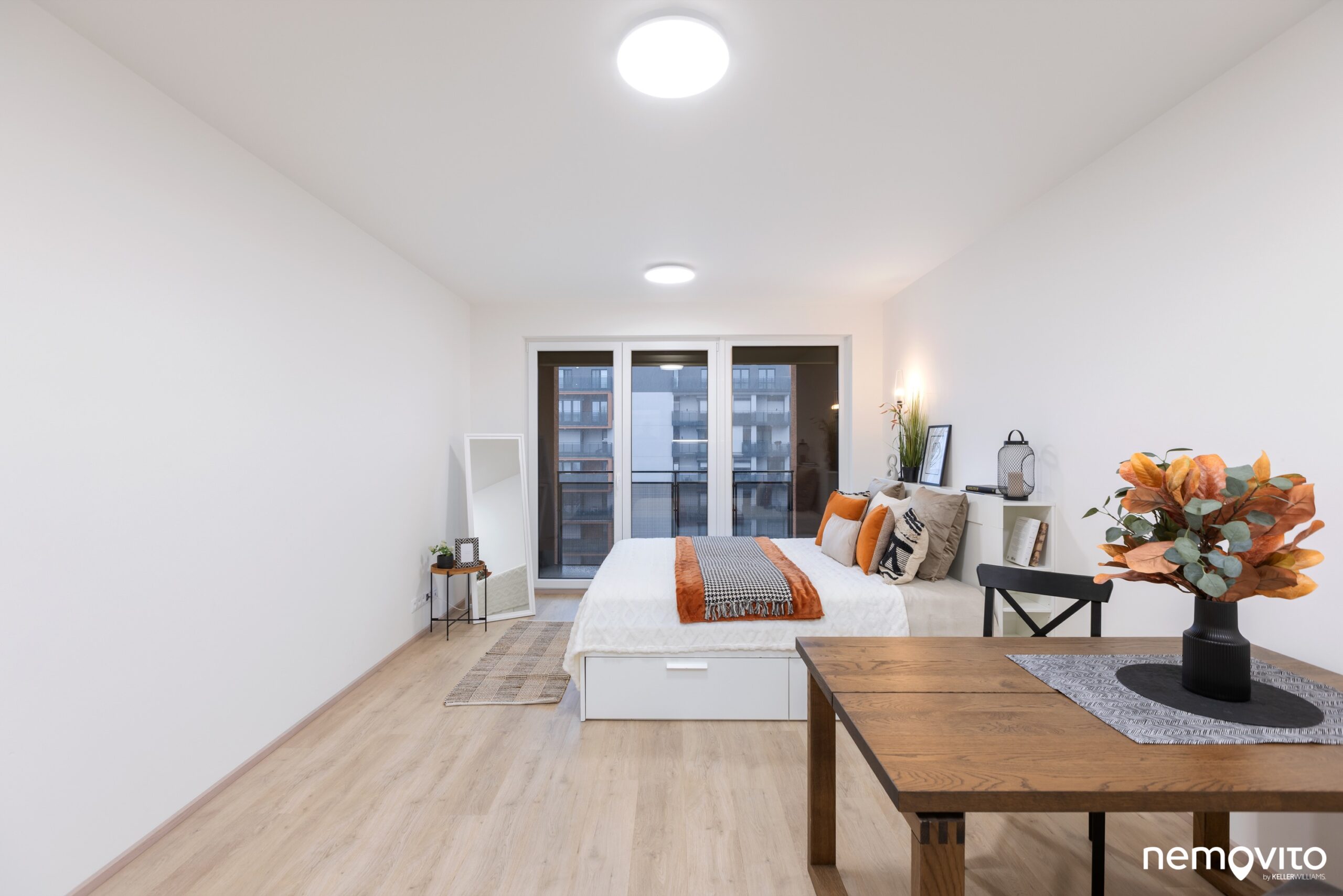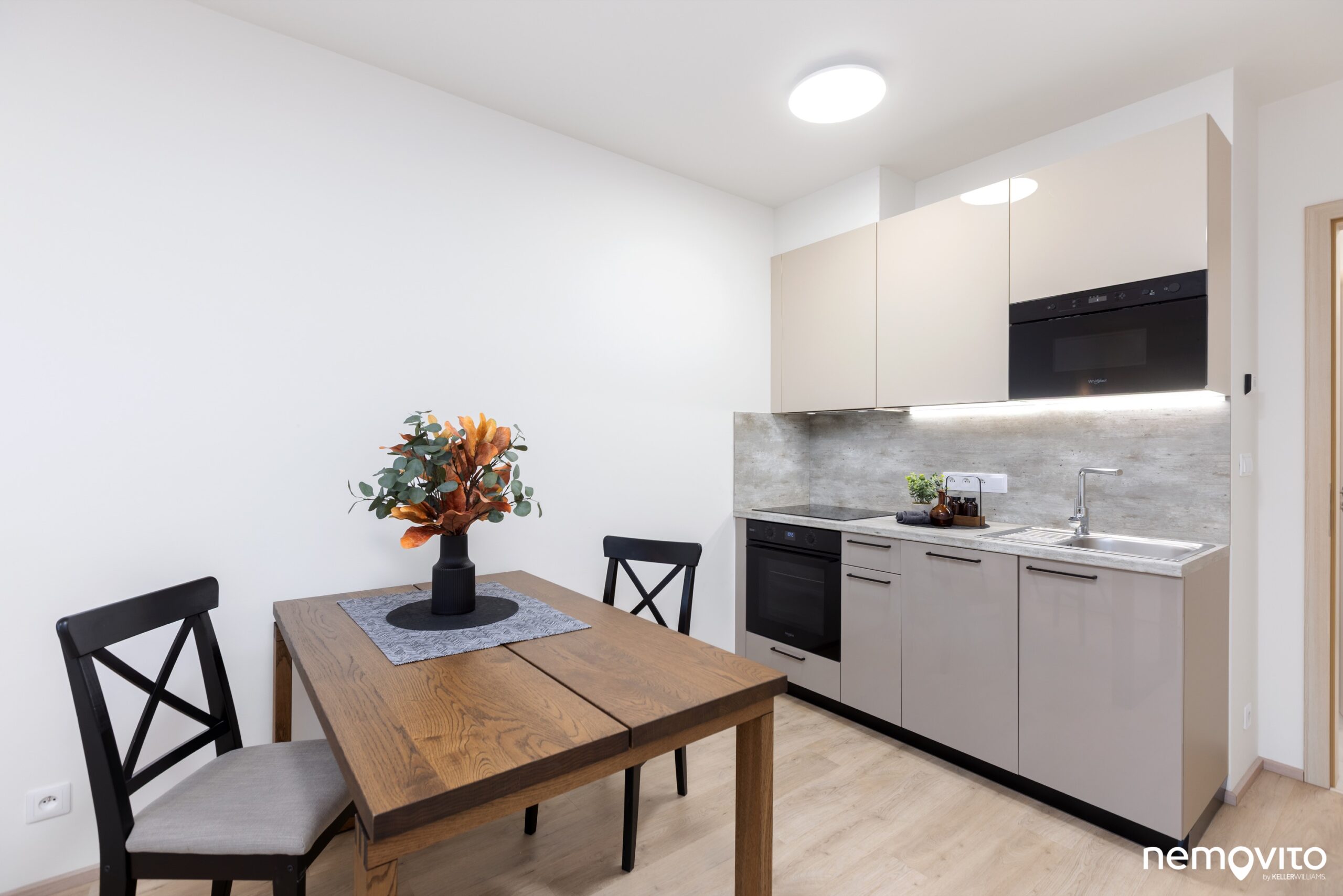 Kdo čekáte v 1+kk vodotrysk, na svoje si tady nepřijdete. Kdo však chcete nový malý byt, kde vám nebude chybět sklep ani stání, jste tady správně. V tomto případě však nechybí ani svatý grál garsonek, kterým je prostorný balkon. Ten byt transformuje do úplně jiného rozměru, hlavně tedy v letních měsících. Otevřít velké dveře, vytáhnout stínící rolety, a hurá na kávu na krytý balkon o velikosti pěkných 7 m2. Byt má za sebou sotva první rok (dokončen byl v dubnu 2025), takže známky opotřebení budete muset hledat lupou. Díky tomu však nemusíte shánět kuchyni, ta je včetně vestavěné skříně na svém místě. Kvalitní linka od firmy Hanák není žádný low-cost, ostatně v tomto bytě bylo v plánu strávit několik dalších let. Plány se ale občas mění a byt si s sebou do letadla nevezmete. Příležitost pro vás - přistát u hostivařského lesoparku můžete v podstatě hnedka.
