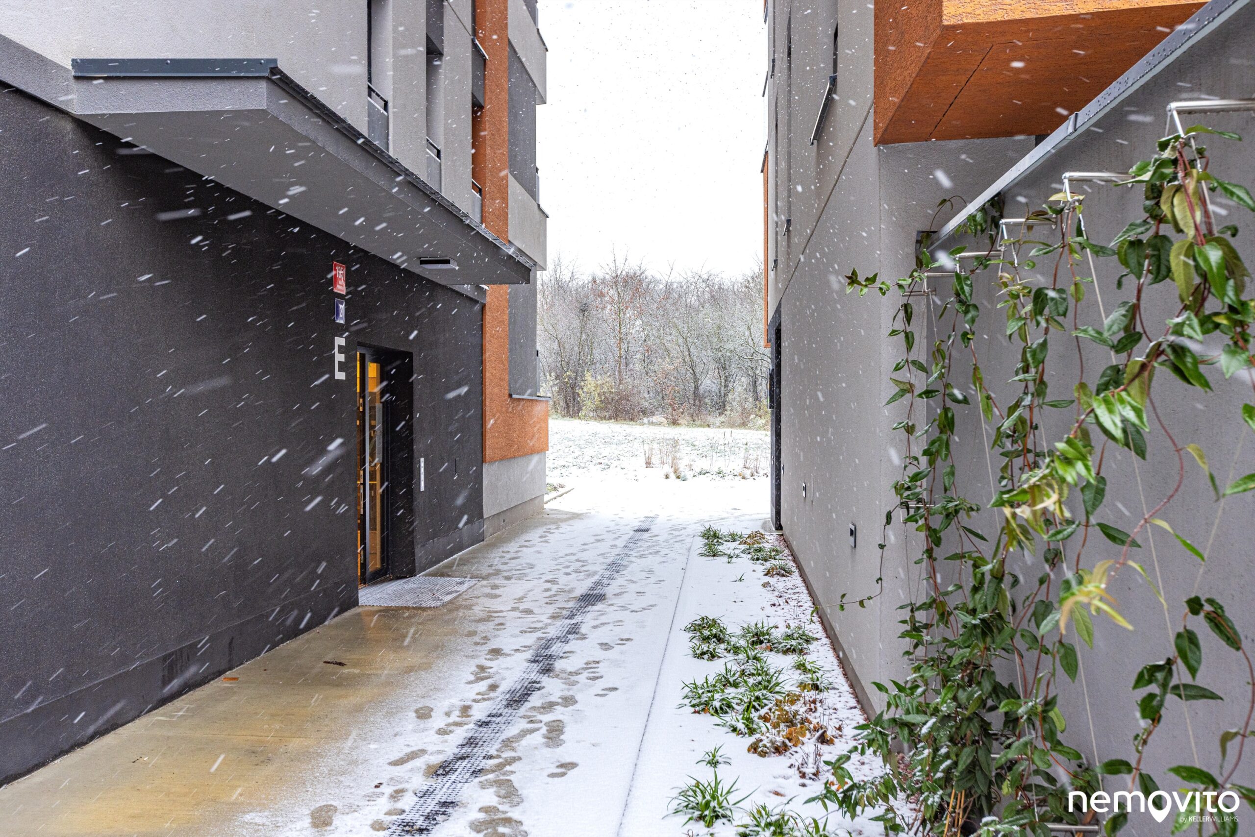 Co prozradí novotu na první pohled? Schodiště nebo výtah, které jsou ještě chráněné před poškozením kvůli stěhování. Na stání č. 119 žádné auto ještě nestálo, budete první. Za ním umístěný sklep (4,5 m2) je u malého bytu nevídaným benefitem. Byt má sice 34 m2, ale ty nemusíte zakrámovat harampádím. To naopak necháte pěkně uklizené dole a pohodlně přístupné přímo od auta.