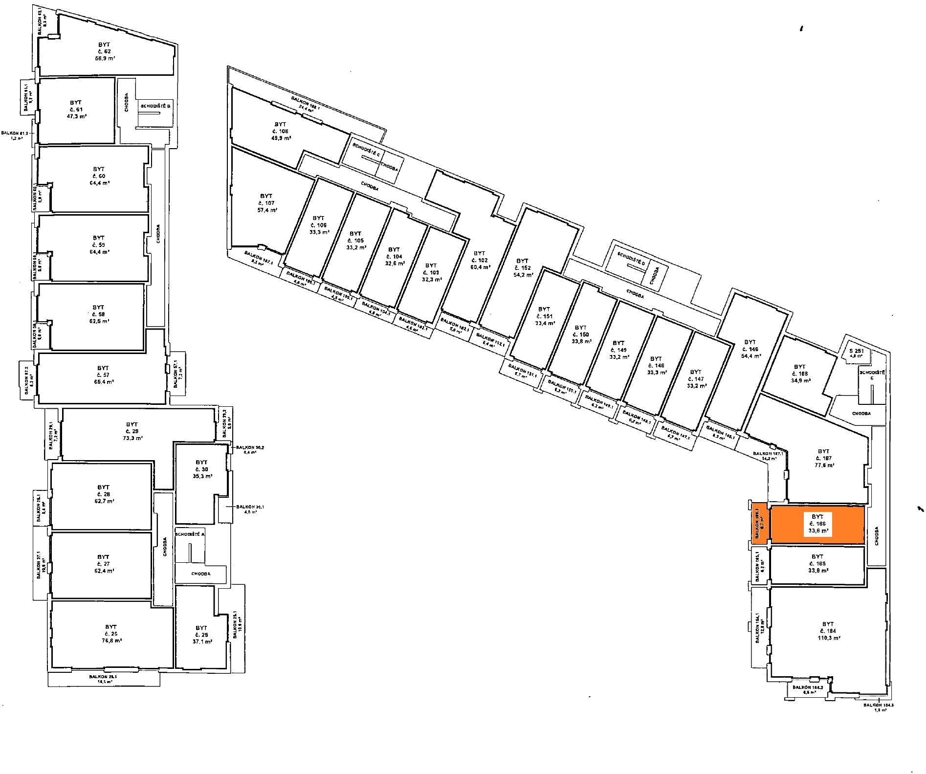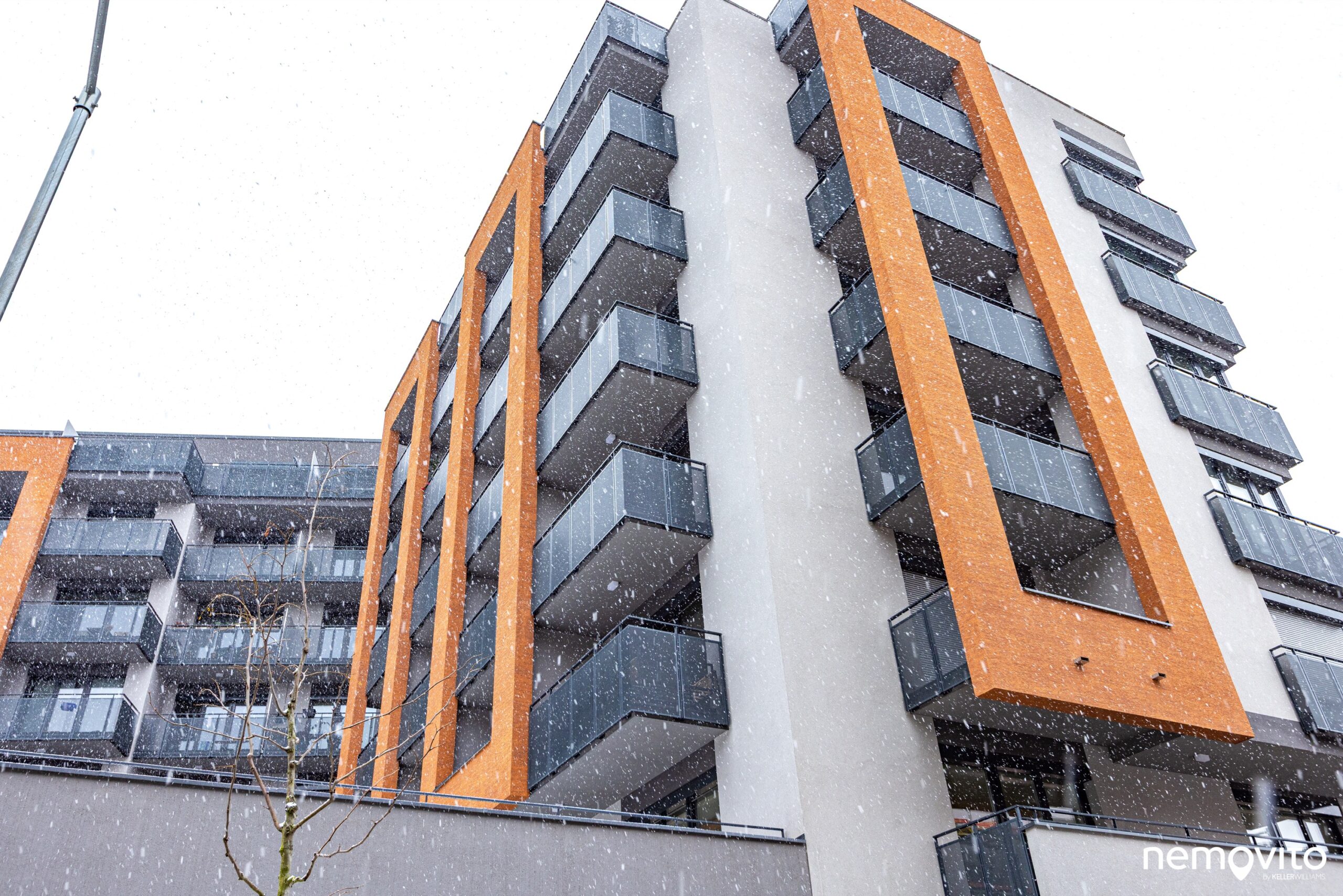 Byt byste v rámci budovy našli v 5. podlaží v rohové části mezi oranžovými segmenty fasády. Ta je nápaditá a proti časté developerské šedi je v tomto případě dům veselejší.