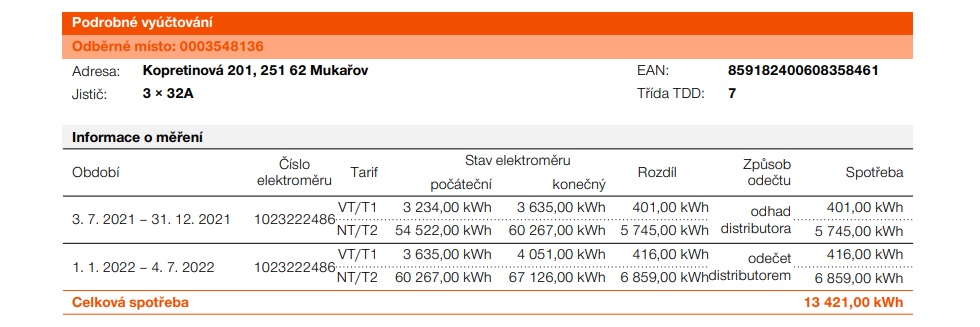 Spotřeba elektřiny 13.5 - 17 MWh/rok