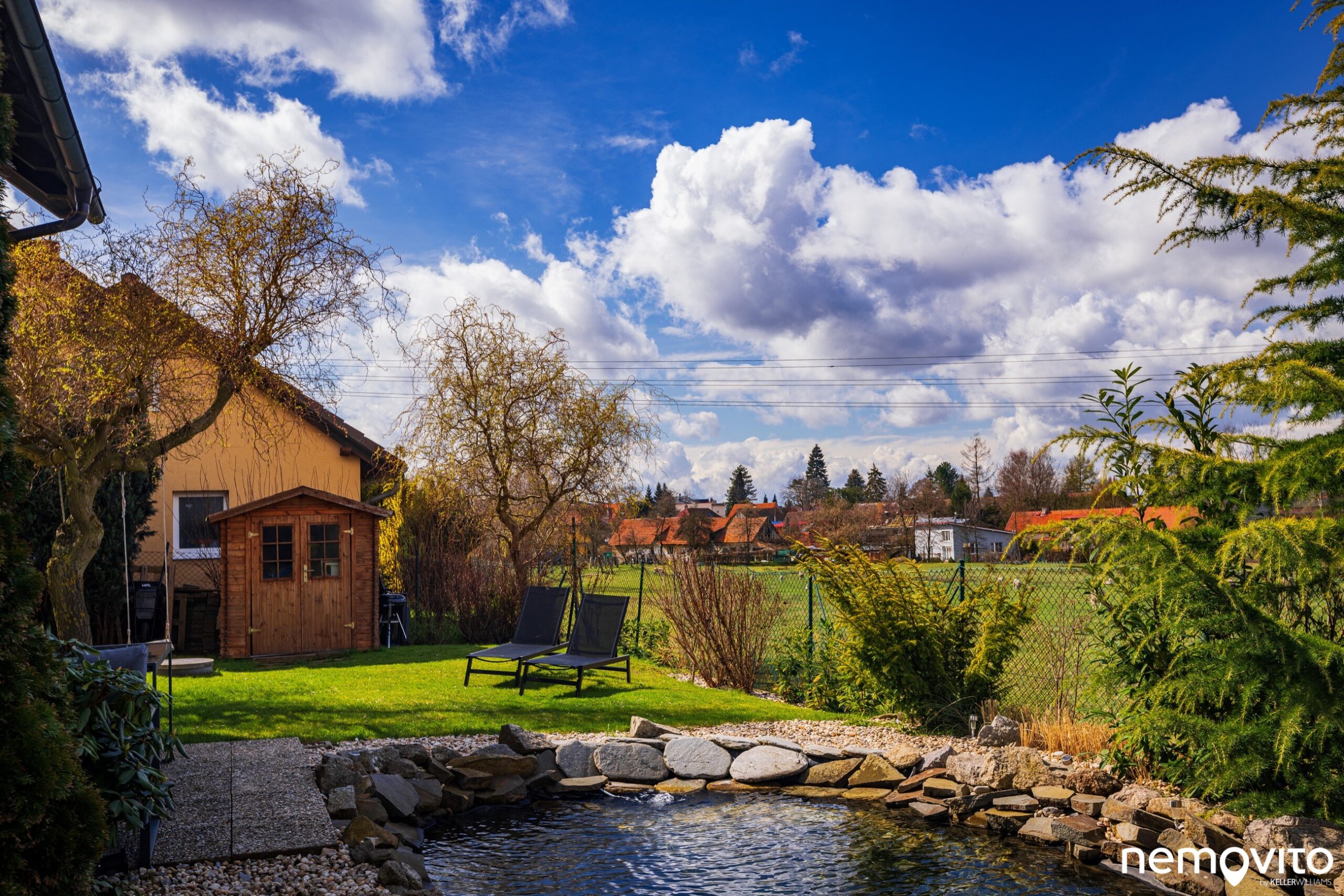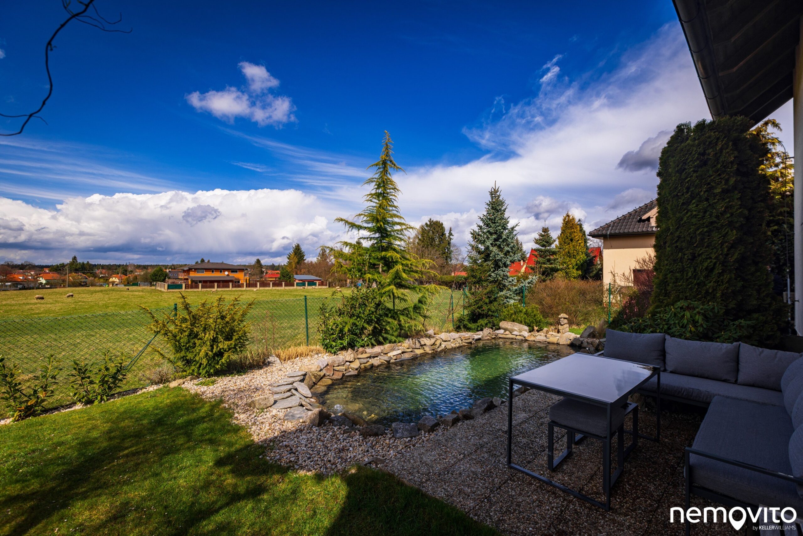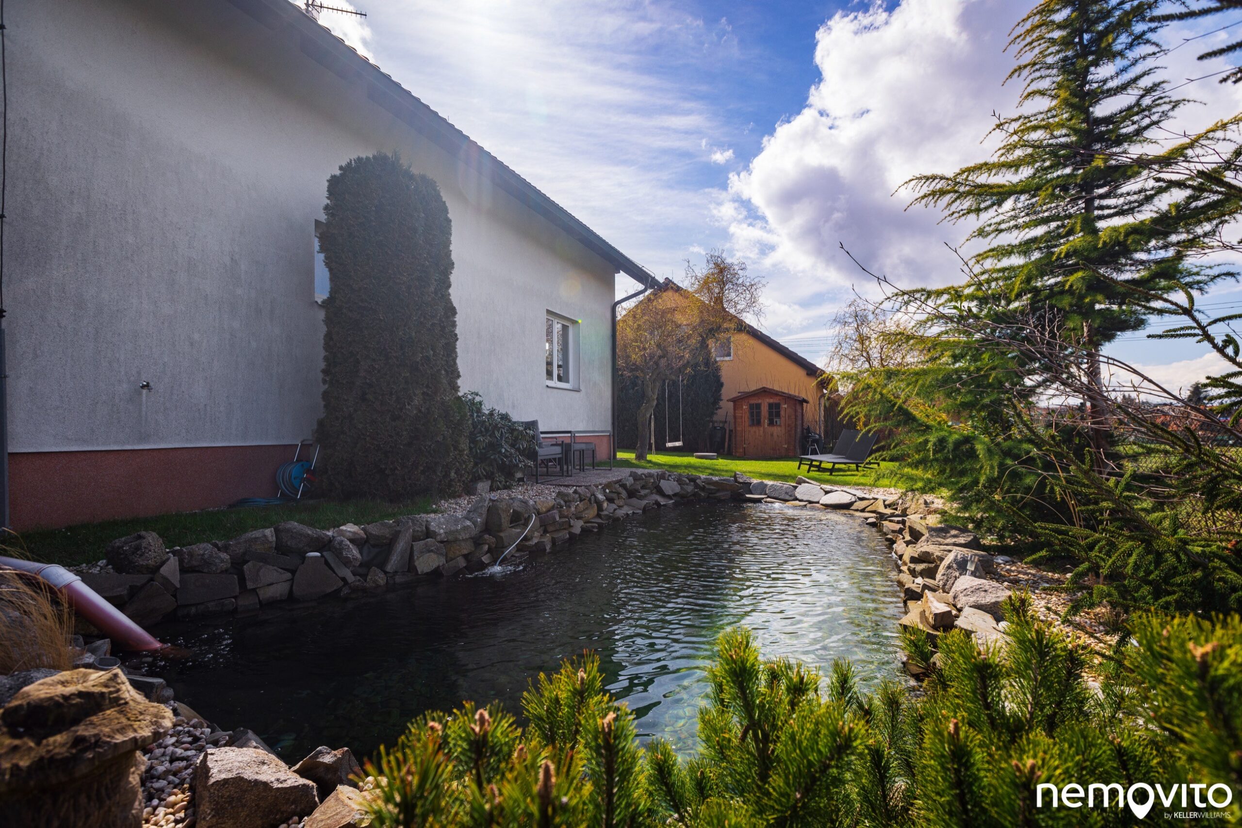 Dům nevyžaduje žádné dramatické investice a bydlet se v něm dá okamžitě. Známá je také jeho kompletní historie, neboť ho v roce 2007 postavila rodina současných majitelů. Pozemek tak akorát, abyste se celé léto netahali se sekačkou, ale splnil potřebnou funkci. S plochou 450 m2 není nijak obrovský, přesto pojme všechno, co budete potřebovat. A nechybí na něm ani vaše soukromé koupací jezírko. Parkování pro auta, místo na trampolínu, zahradní domek i terasu.