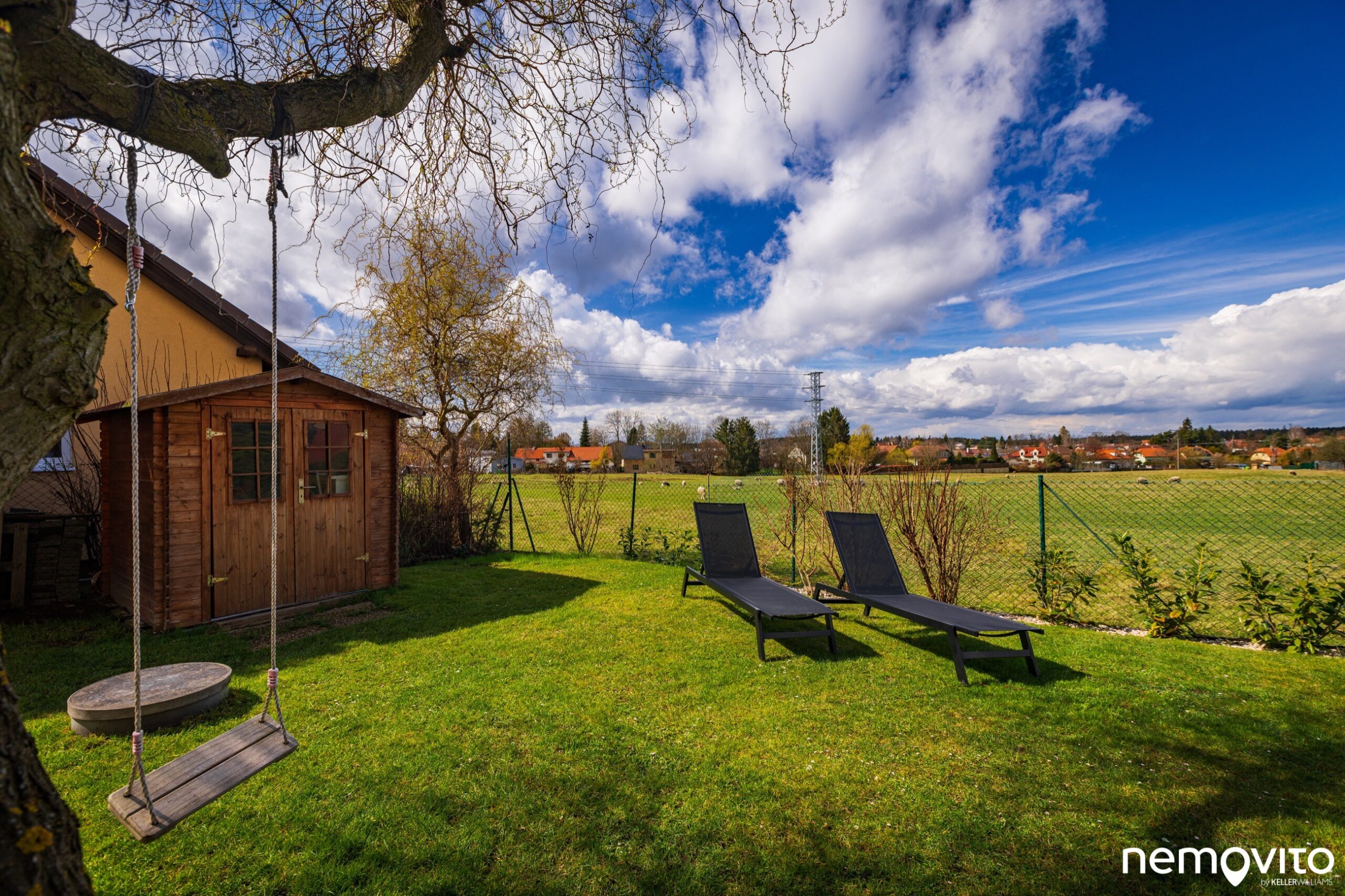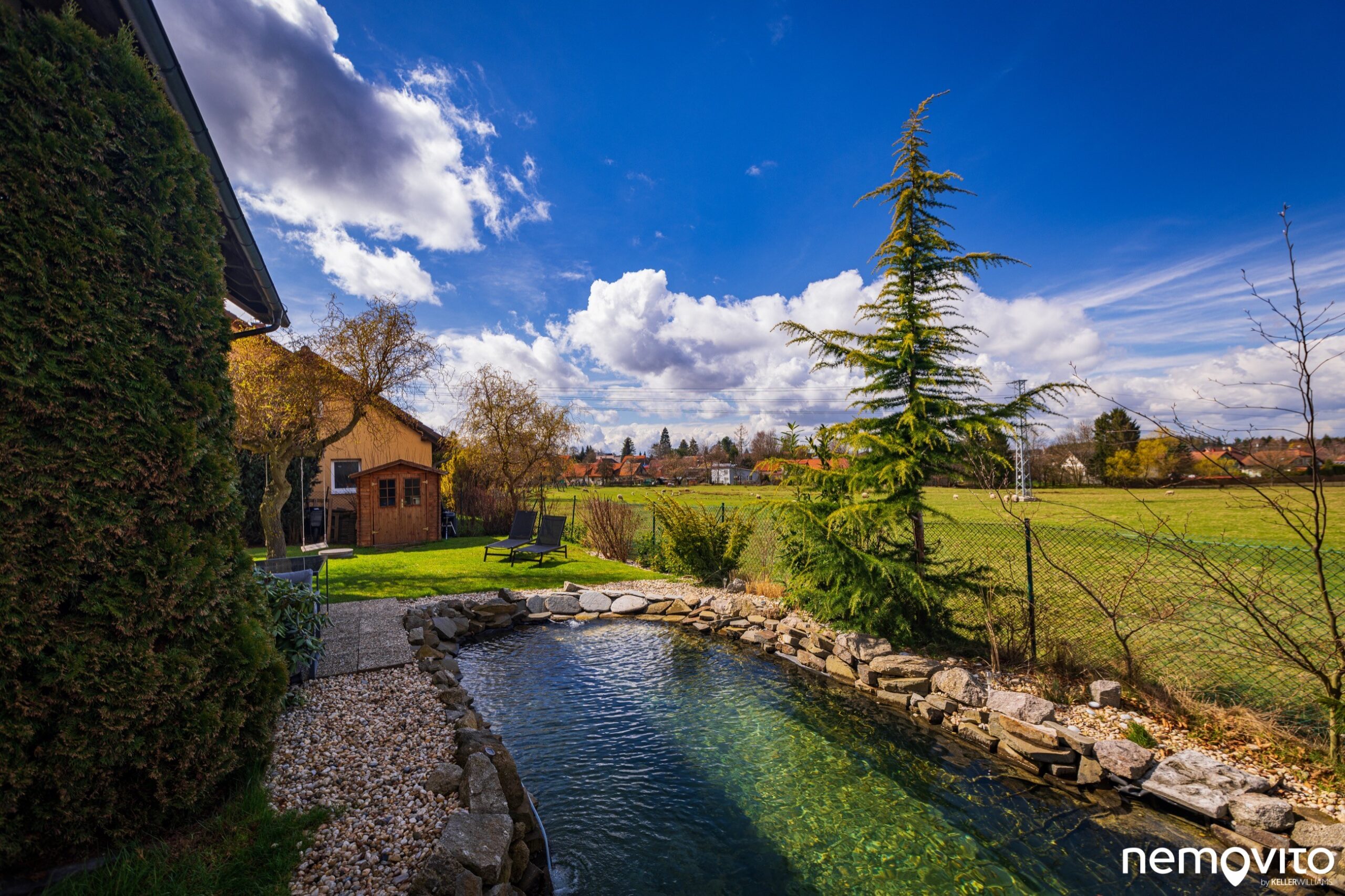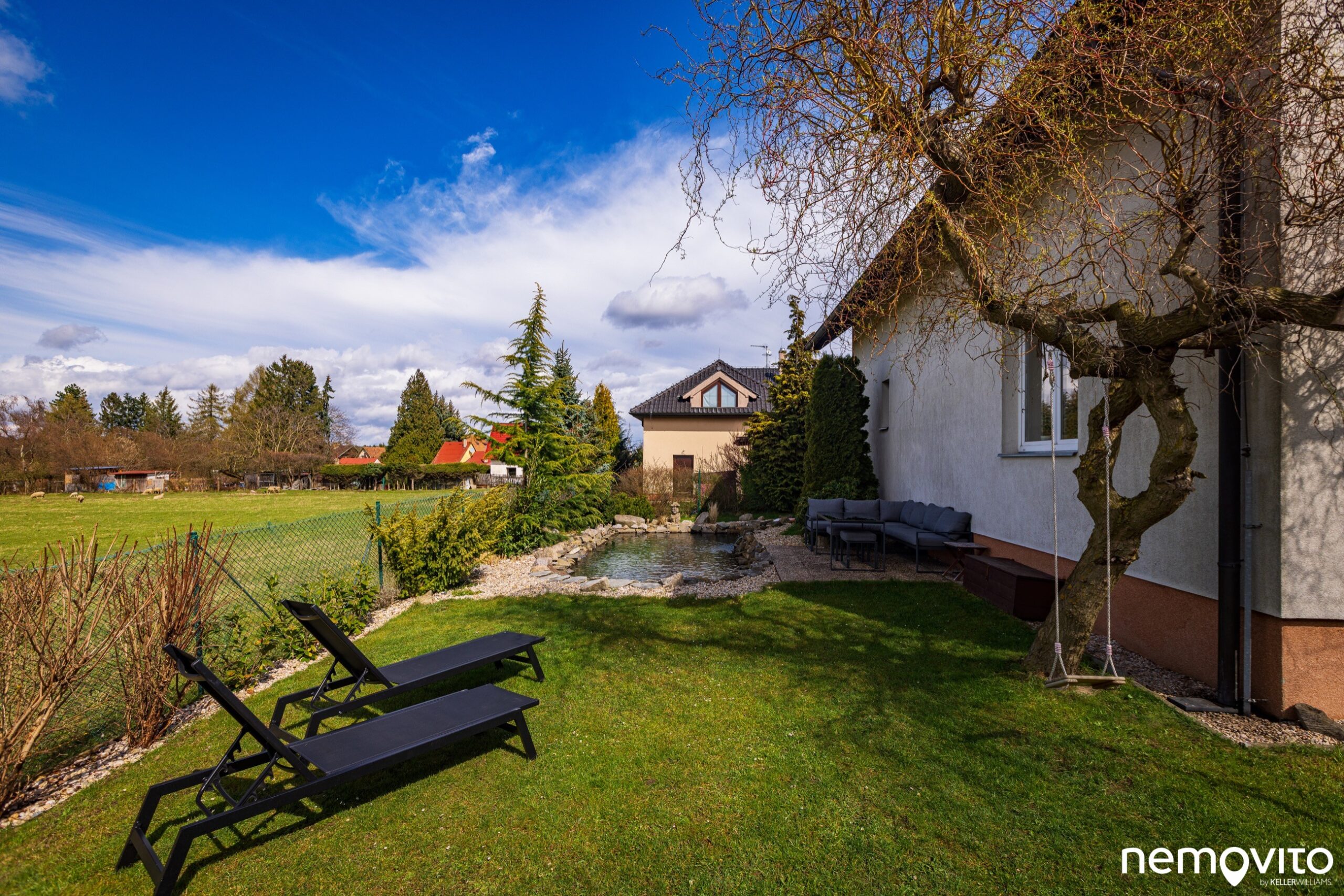 Dům nevyžaduje žádné dramatické investice a bydlet se v něm dá okamžitě. Známá je také jeho kompletní historie, neboť ho v roce 2007 postavila rodina současných majitelů. Pozemek tak akorát, abyste se celé léto netahali se sekačkou, ale splnil potřebnou funkci. S plochou 450 m2 není nijak obrovský, přesto pojme všechno, co budete potřebovat. A nechybí na něm ani vaše soukromé koupací jezírko. Parkování pro auta, místo na trampolínu, zahradní domek i terasu.