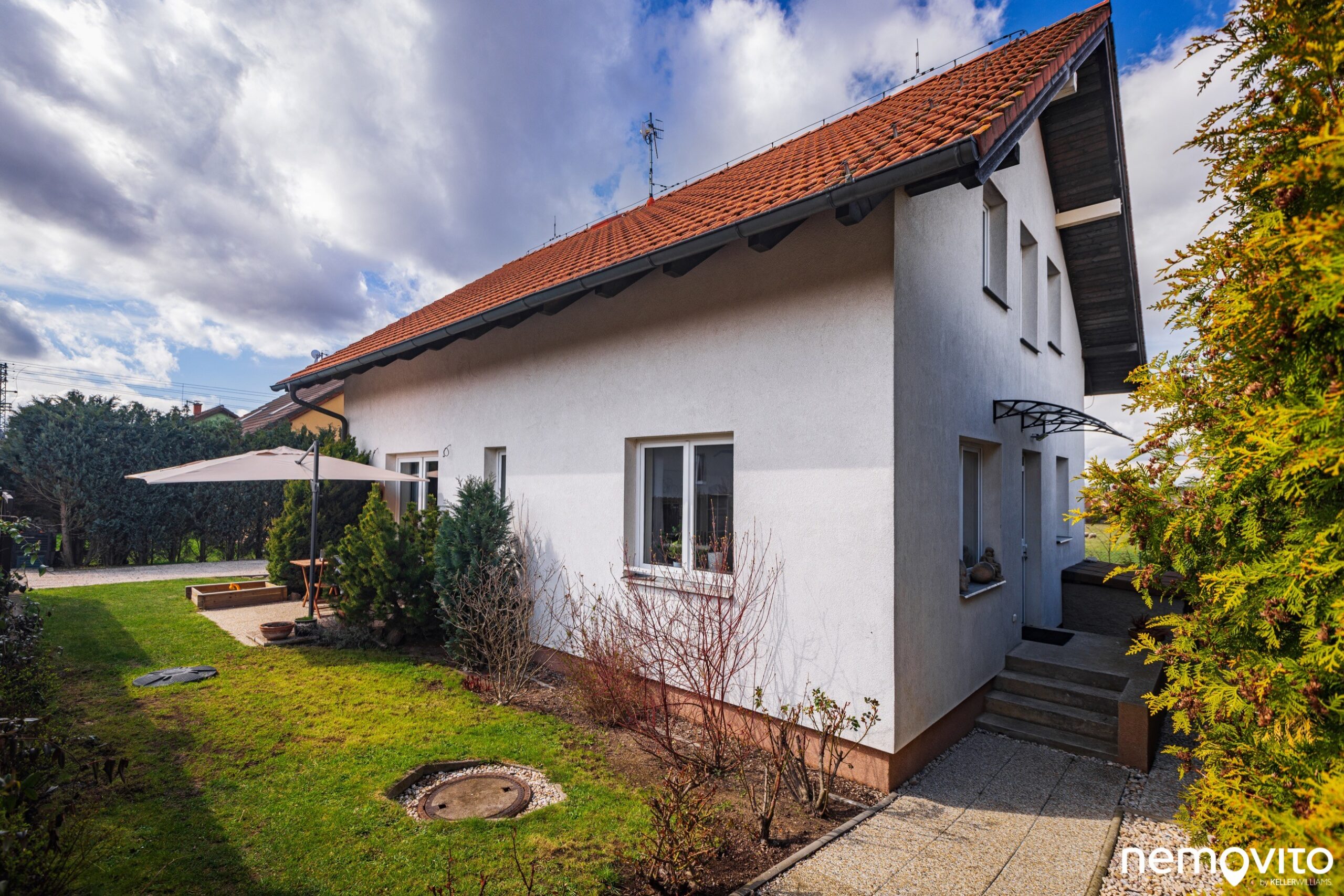 Dům se nachází ve slepé ulici, provoz je tedy prakticky nulový a nemusíte se ani obávat nechat děti skotačit před plotem. Dům klasického střihu se sedlovou střechou je obklopen zahrádkou o velikosti 361 m2 (odečtena zastavěná plocha).