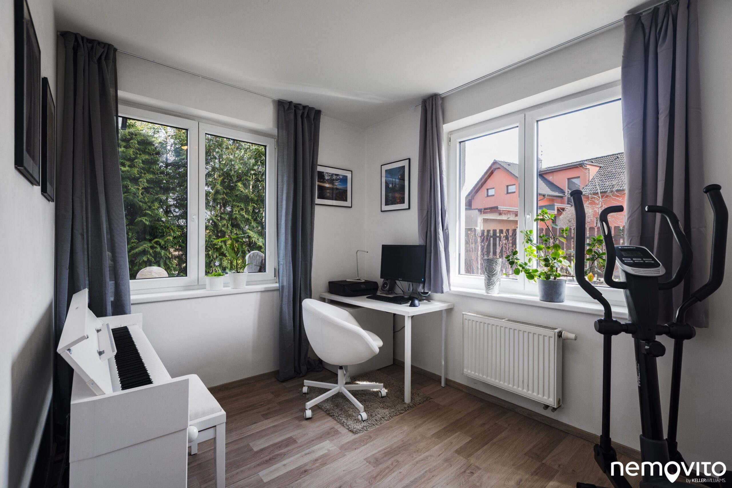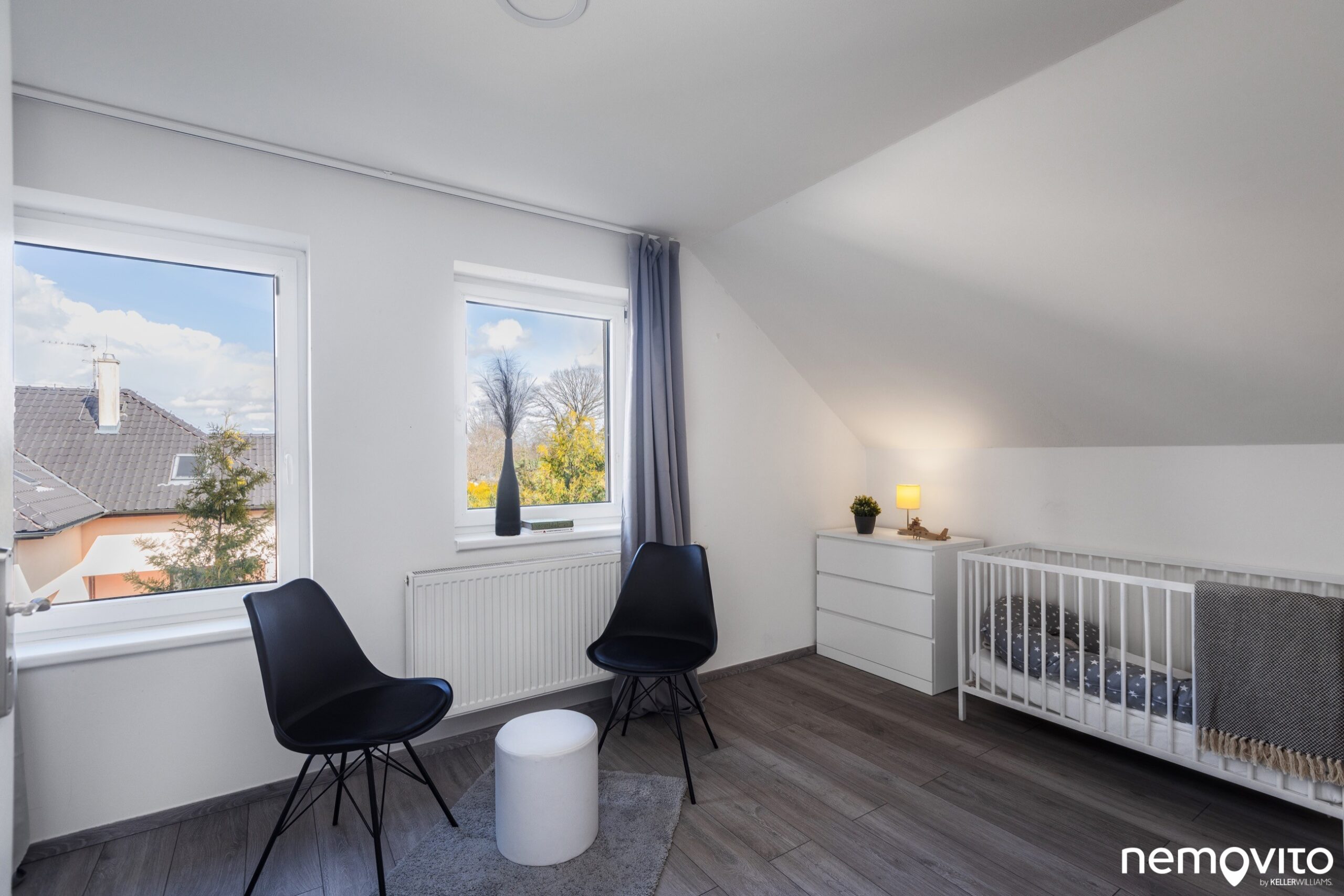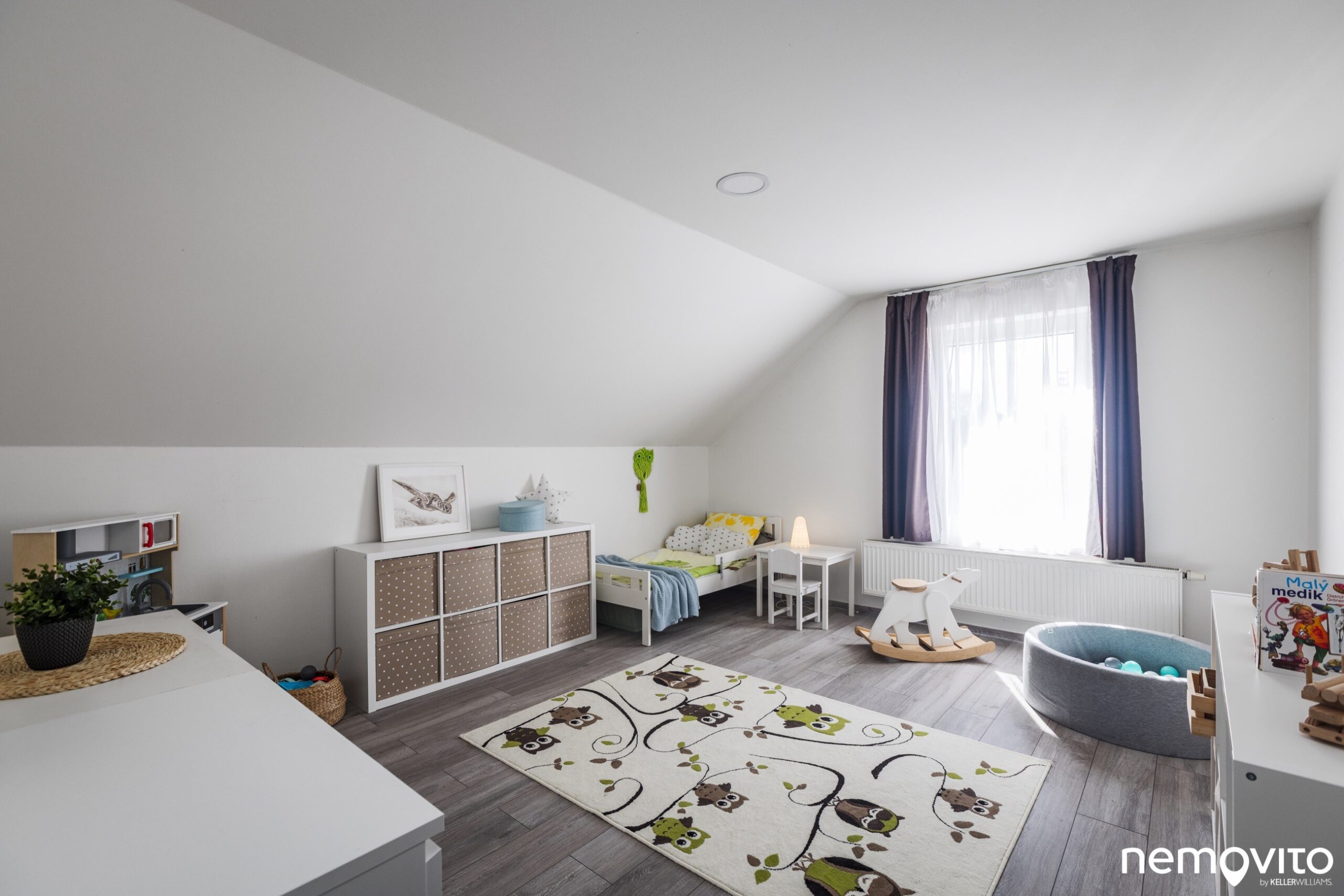 Sousední místnosti má 17.5 m2 a funguje jako dětská herna. Okno této i sousední ložnice je na západní stranu.