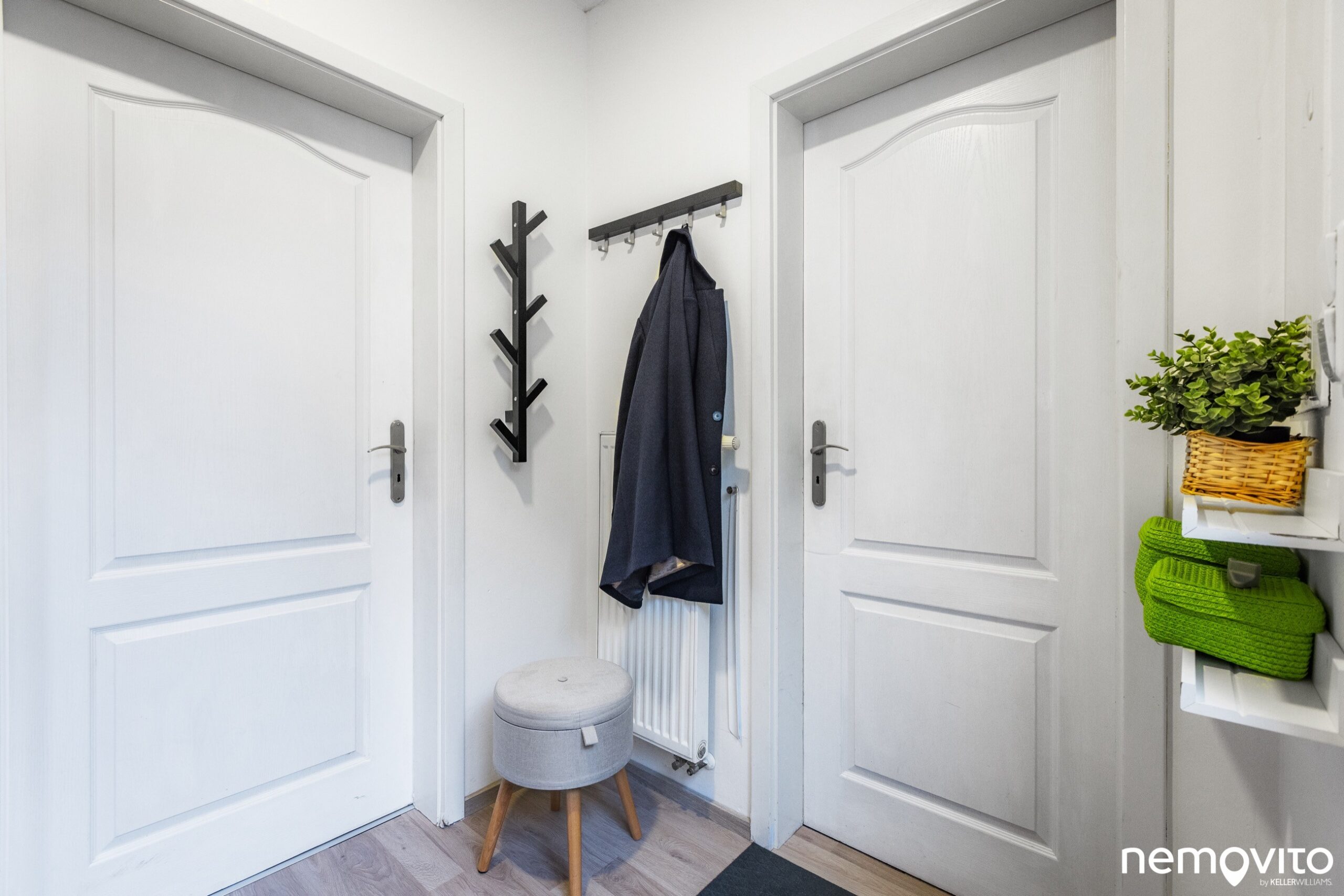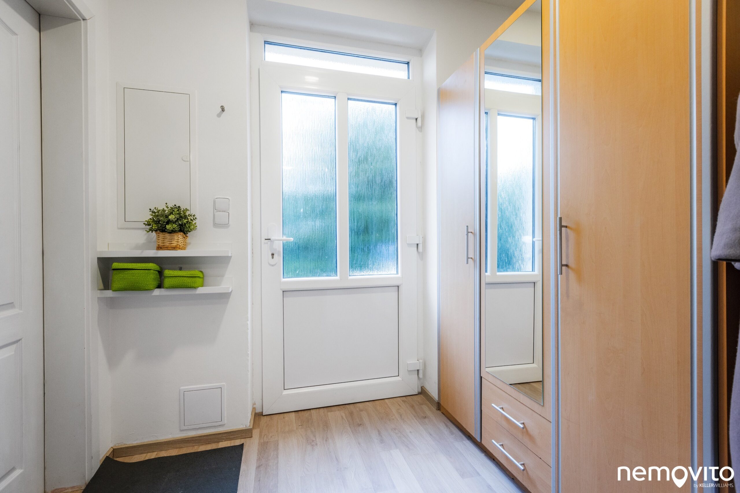 Vstupní zádveří domu (5 m2) bez potíží pojme šatní skříň. Další dveře vedou do technické místnosti, kde je umístěný kotel s bojlerem a dalších 3.6 m2 prostoru.