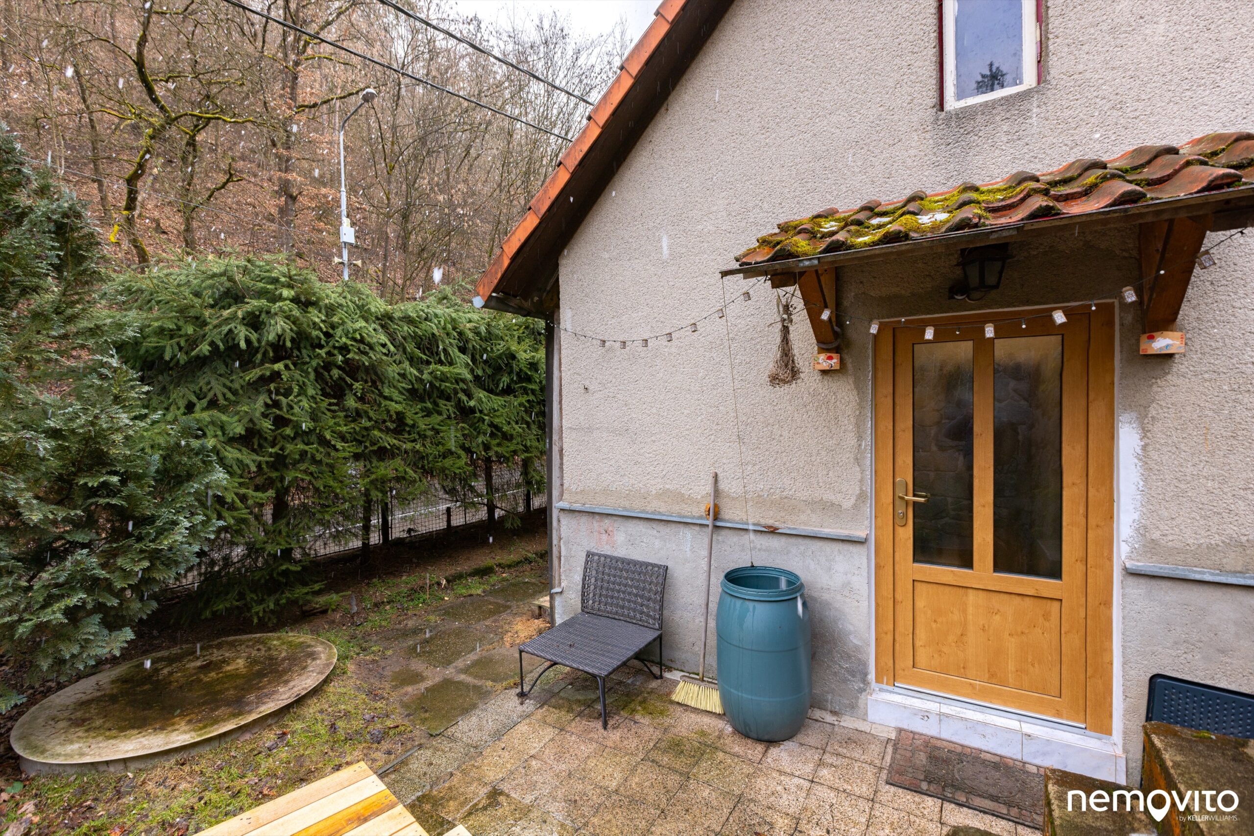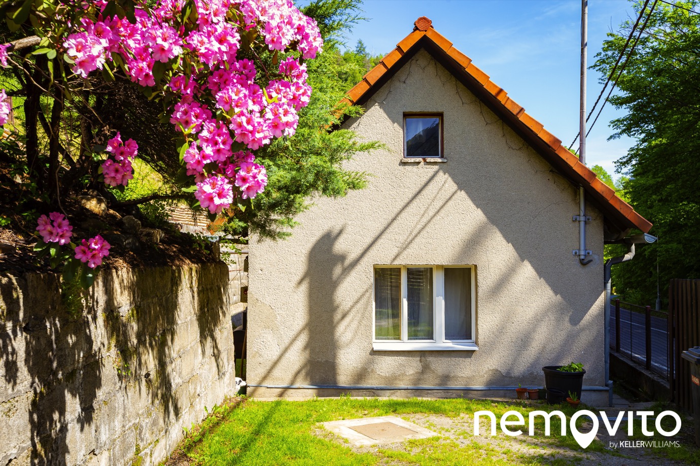 Dům má novější střechu (cca 2010) a nová okna s výjimkou toho, které je na fotce. Záměr byl totiž zde vybudovat francouzské okno. Ve zbytku exteriéru je domek původní, ale udržovaný. Z původní stavby zůstalo jen obvodové zdivo a při střeše se realizoval i nový věnec. Zda provedete zateplení a jakou barvu fasády vymyslíte, to už bude na vás. Zrovna tak ho můžete o jedno podlaží zvednout.