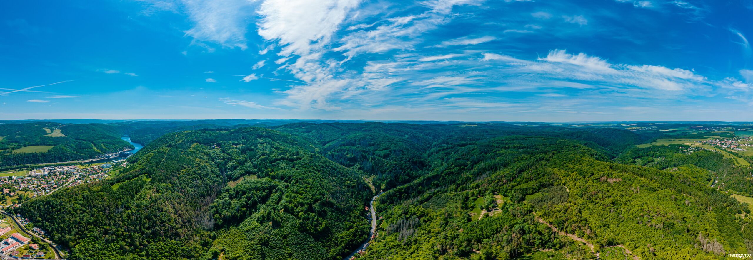 Štěchovice a okolí jako na dlani. Domek naleznete v pravé spodní části fotky u silnice mezi lesy na Slapy.