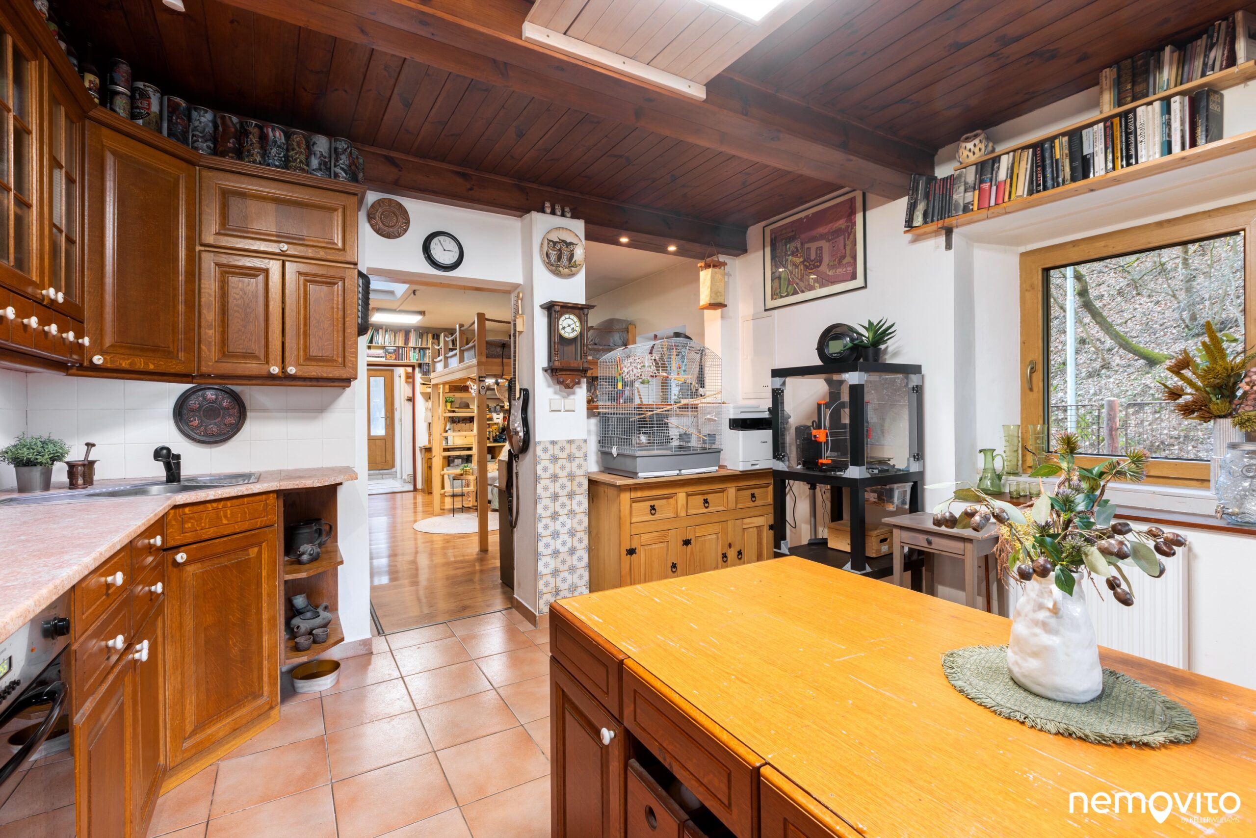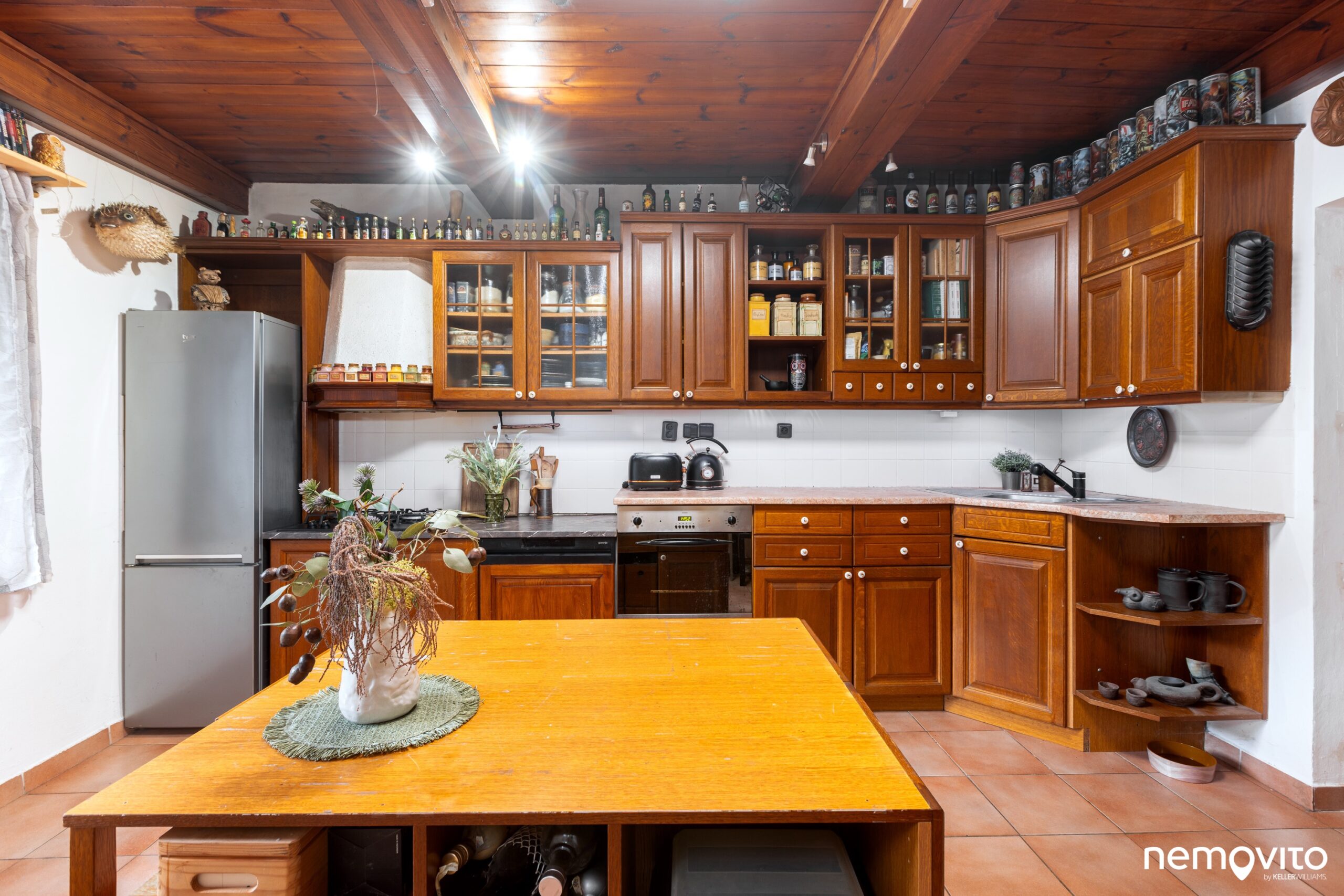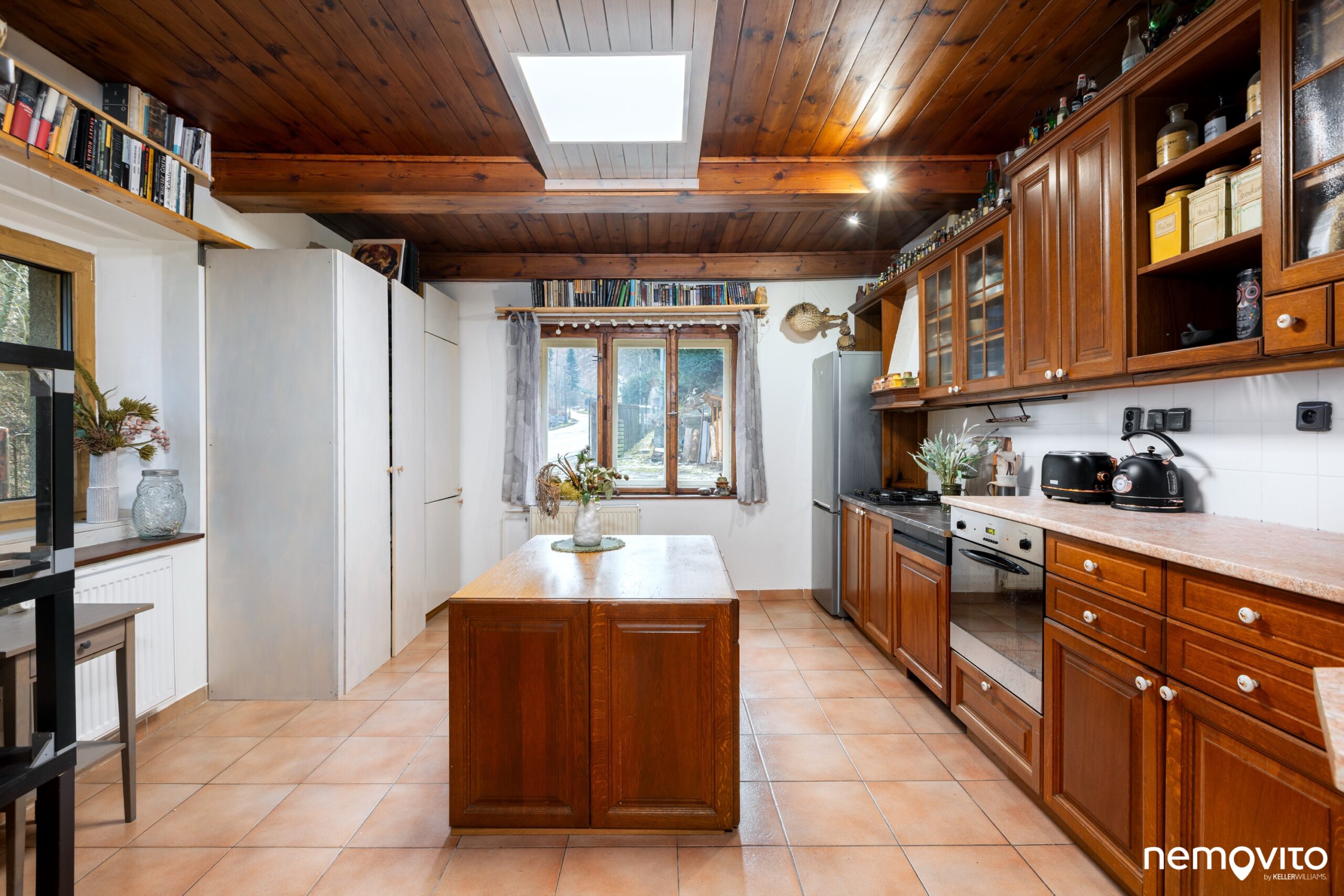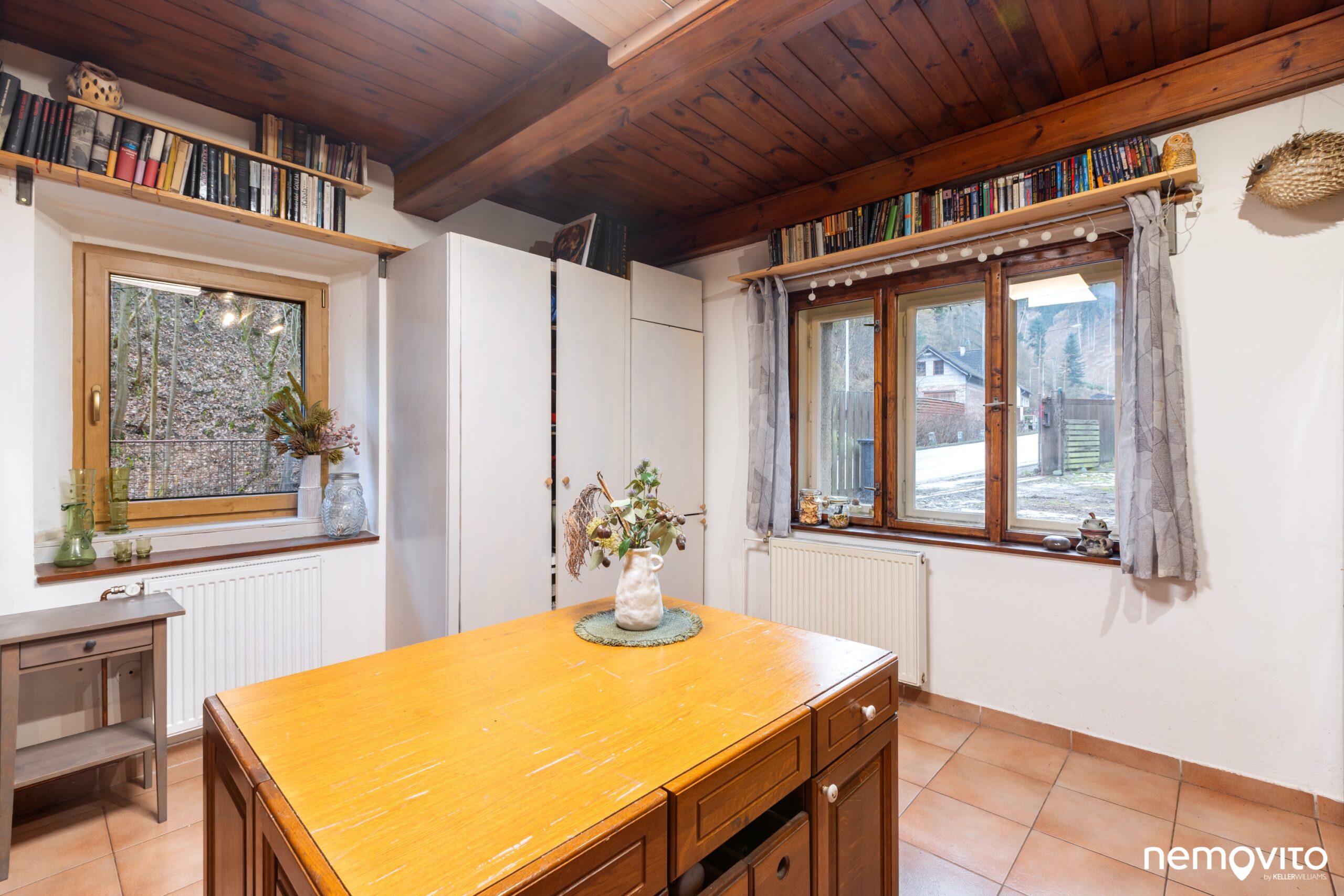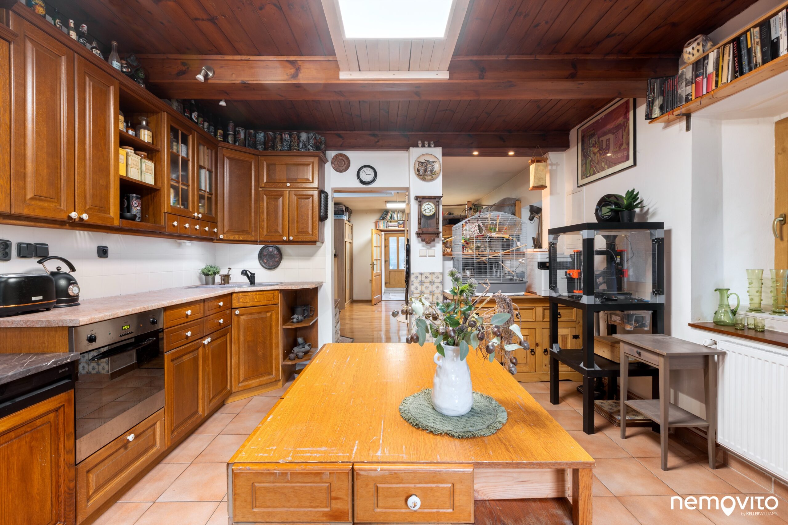 A že se tu nebude bydlet špatně! Velká novější kuchyňská linka nabízí obrovské množství pracovní plochy a všechny potřebné spotřebiče. Vzhledem k velikosti domu je skutečně monumentální a naprosto uspokojí buď vášnivého kuchaře, anebo její velikost zredukujete tak, že vám zbyde ještě spousta místa na vytvoření obýváčku. Z přední místnosti by tak byla třeba samostatná ložnice.