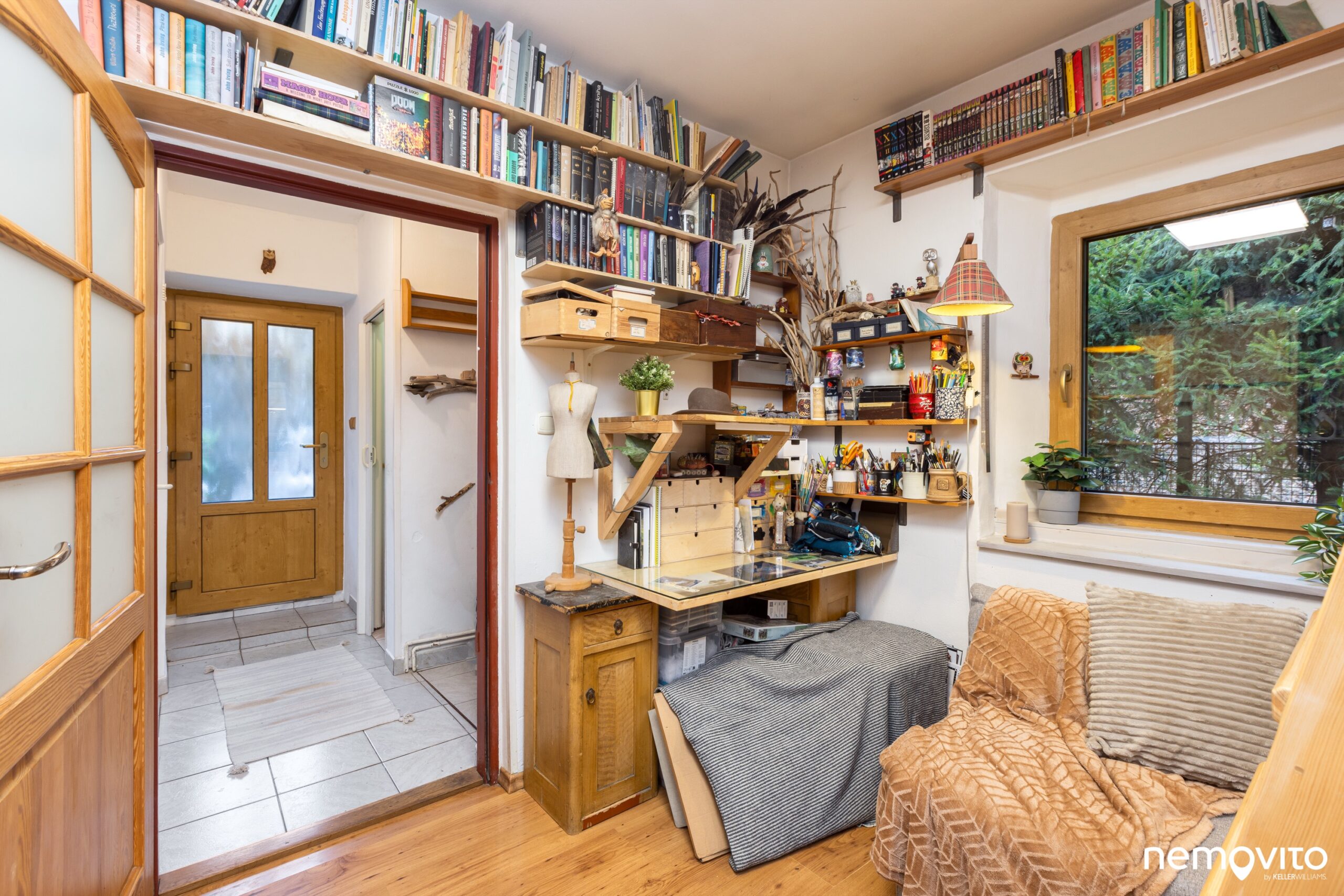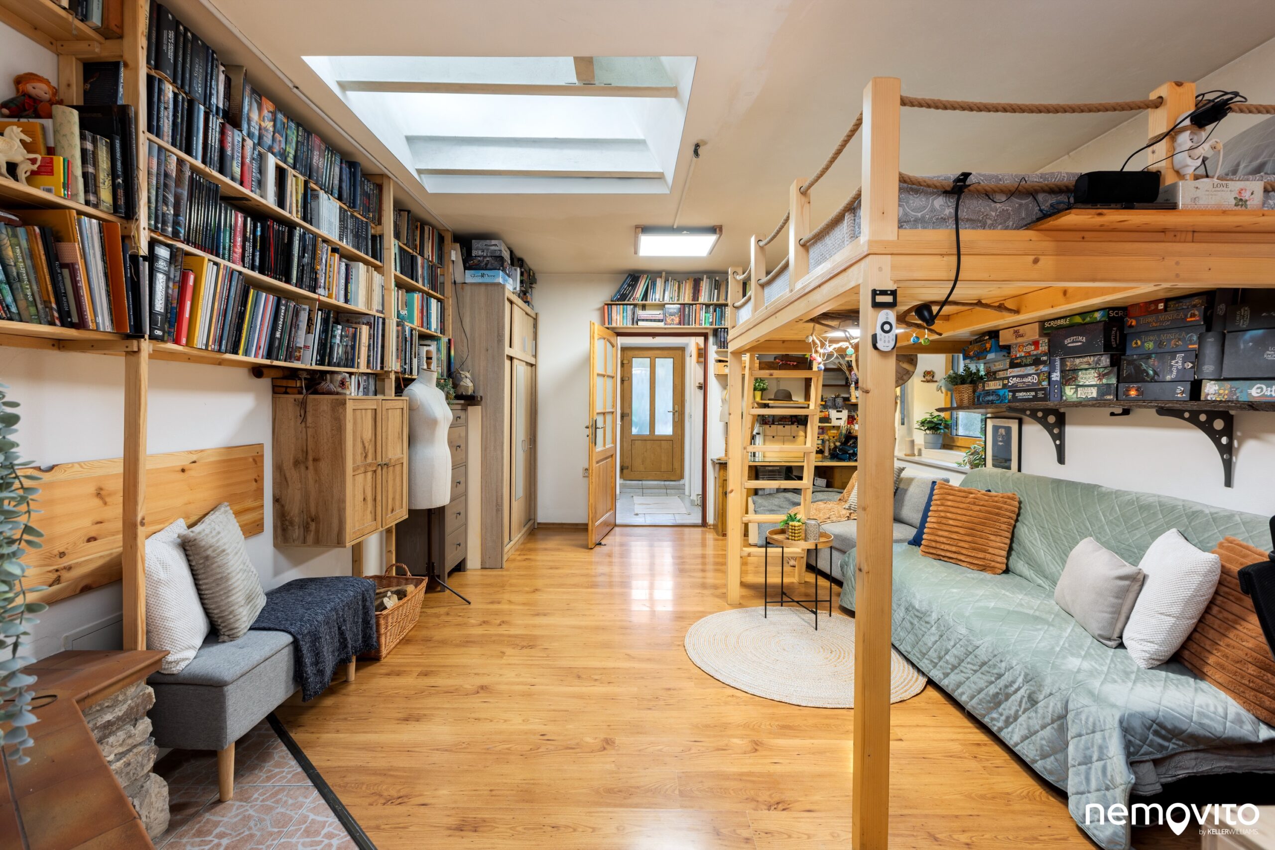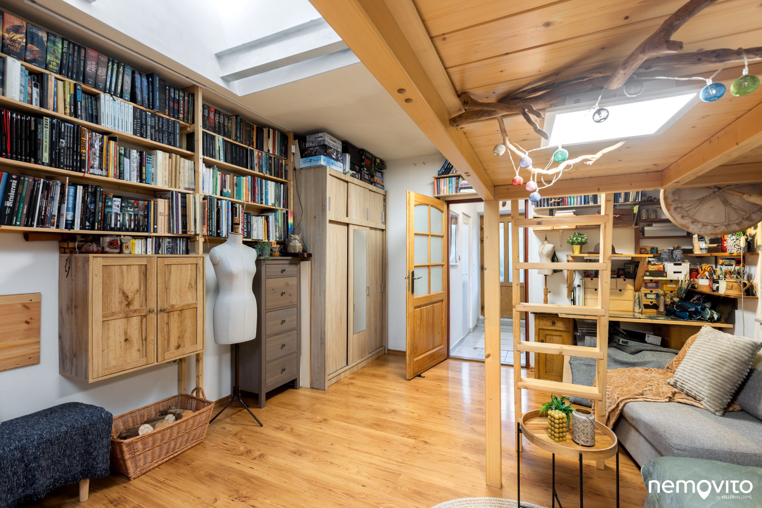 V pokoji je prostor i pro případný pracovní kout nebo šatní skříně. No a nebo knihovnu pro tisíce, možná desetitísice knih... 🙂