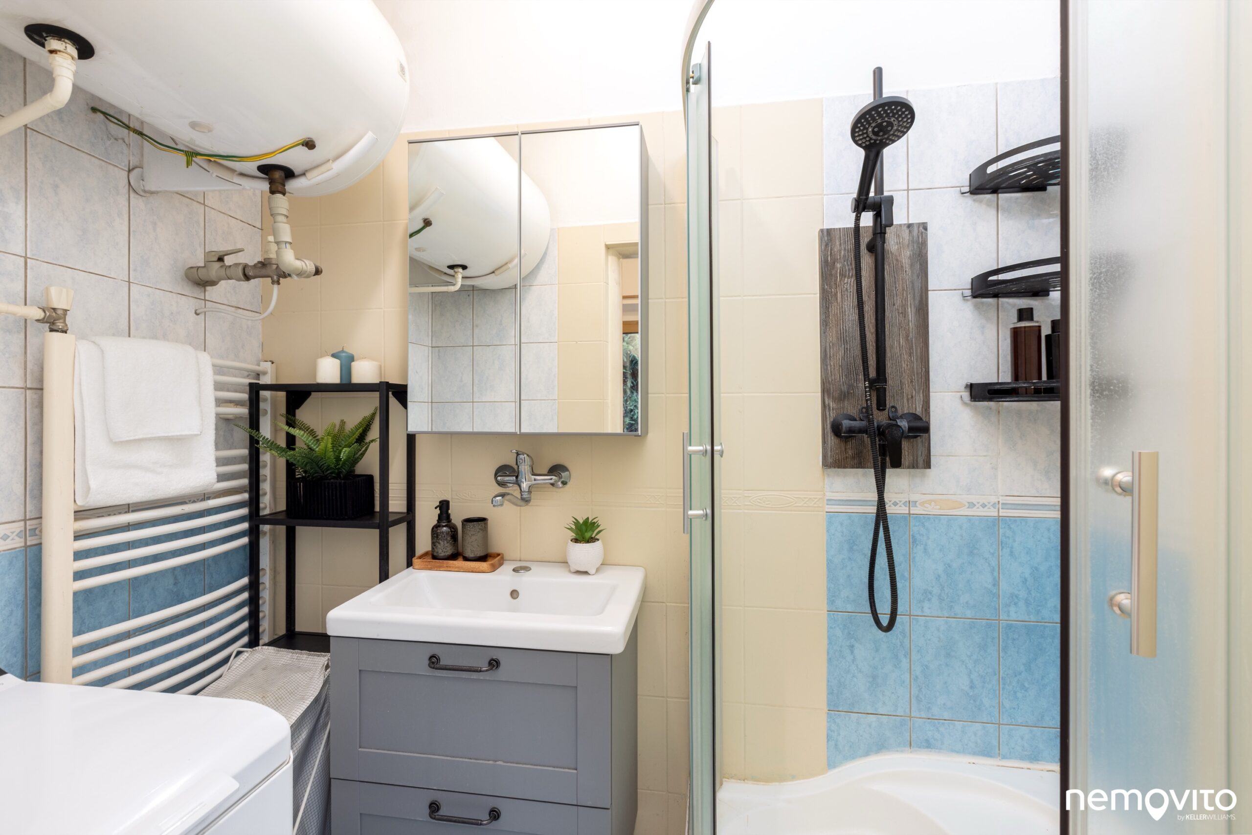 Toaleta je od koupelny oddělená, což je s ohledem na malou plochu domku vážně super. Koupelna je vybavena sprchovým koutem, nachází se v ní taktéž elektrický bojler.