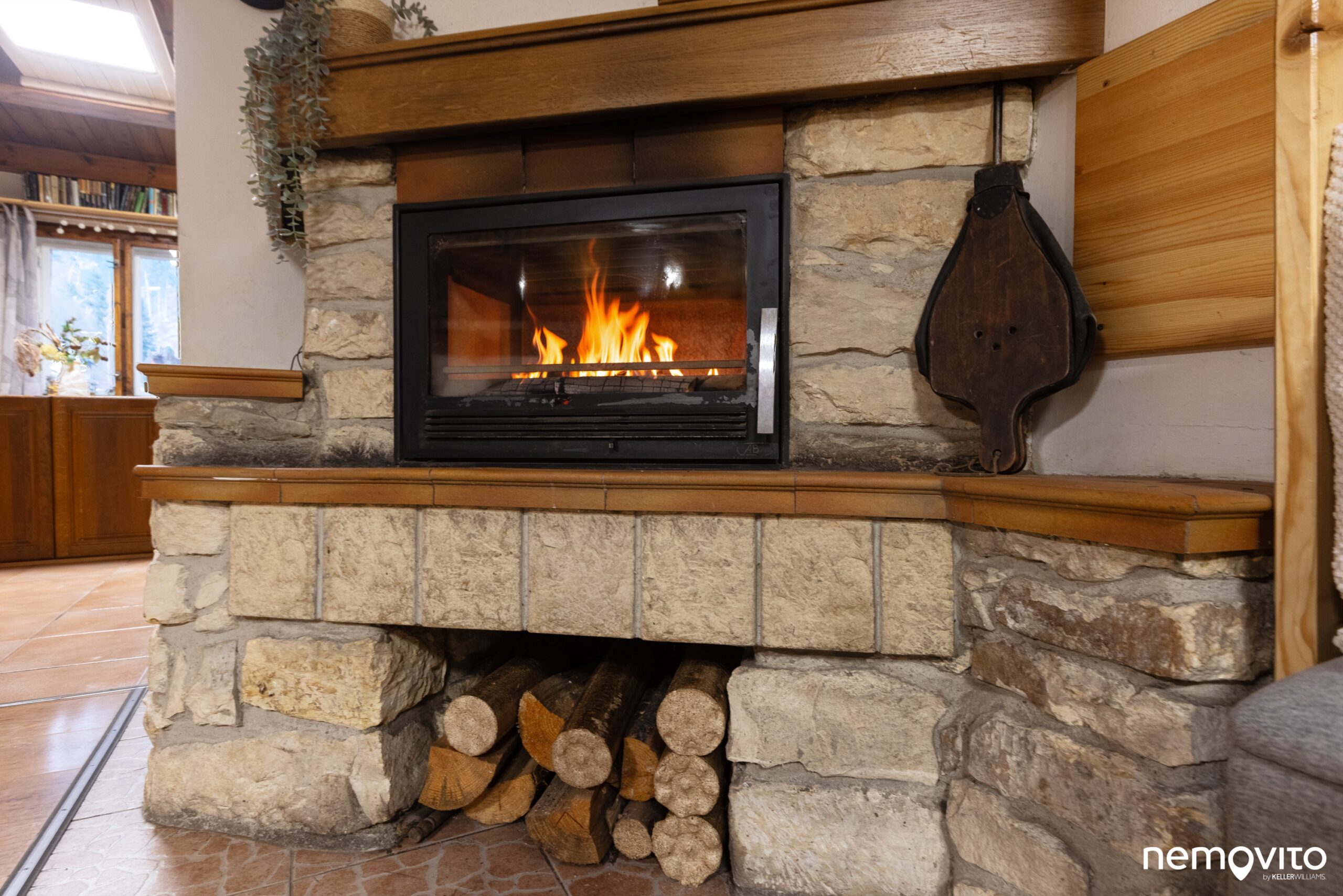 V interiéru je už vše hotové a připravené k okamžitému užívání. Přestože je domek malý, krb tady nesměl chybět. Neplní jen romantickou funkci, ale je přes něj napojen i systém vytápění s výměníkem, který je napojen do radiátorů.