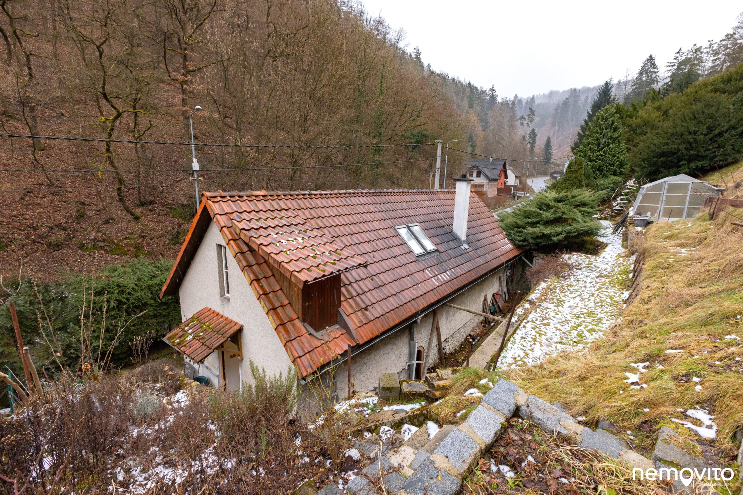 Na slunné stráni, která k domu náleží, je terén sice hodně z kopce, nicméně prostřednictvím teras tady můžete vytvořit ještě hodně různých zákoutí. Svah je orientovaný na východ.