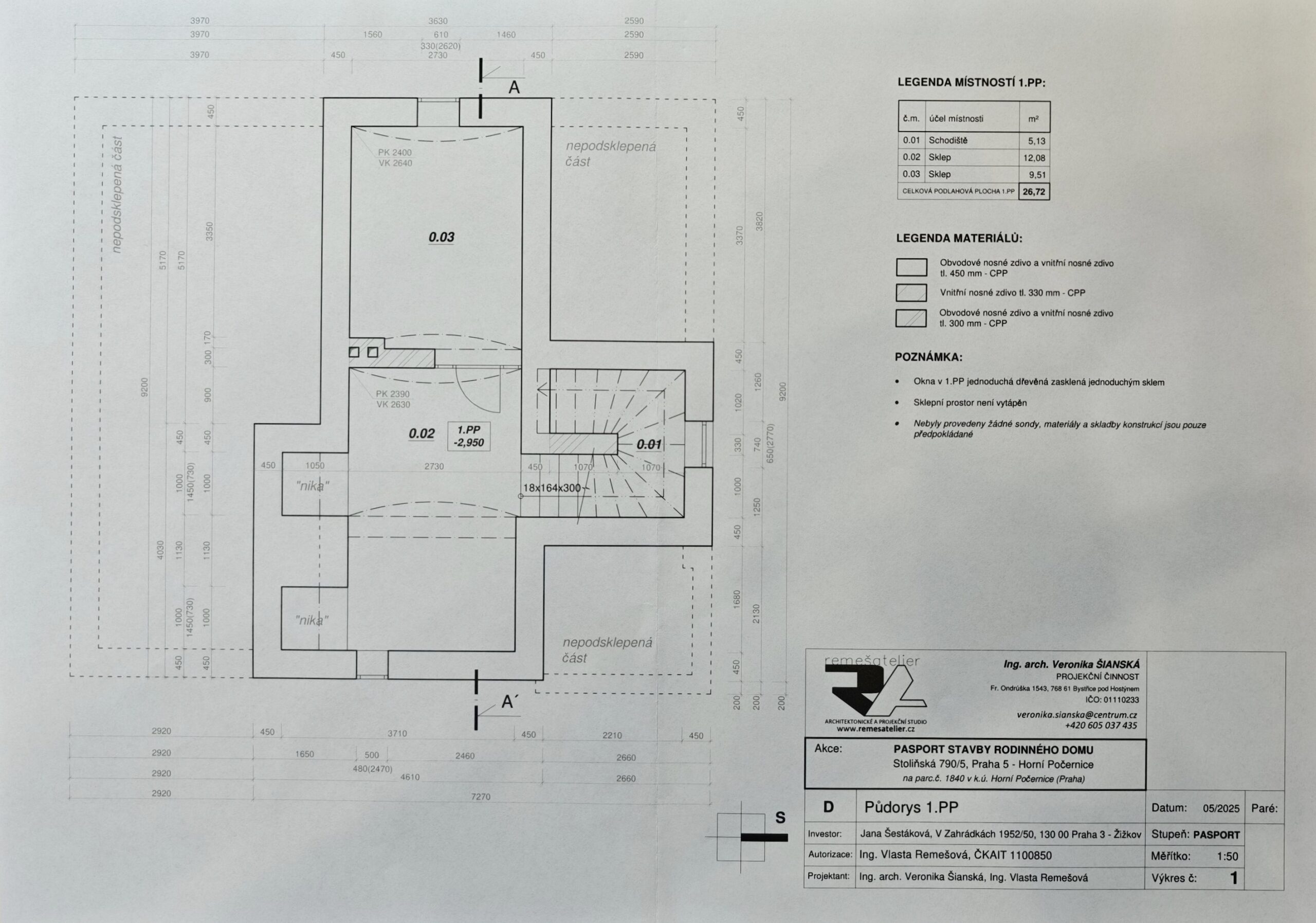 Dispozice 6+2kk | 2 podlaží | Sklep 27 m2