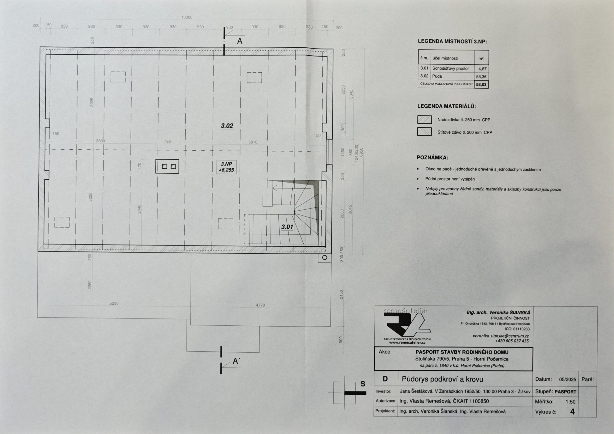Půda má 58 m2 a je čistá s betonovým stropem. Střecha není izolovaná, ale je v překvapivě dobrém stavu.
