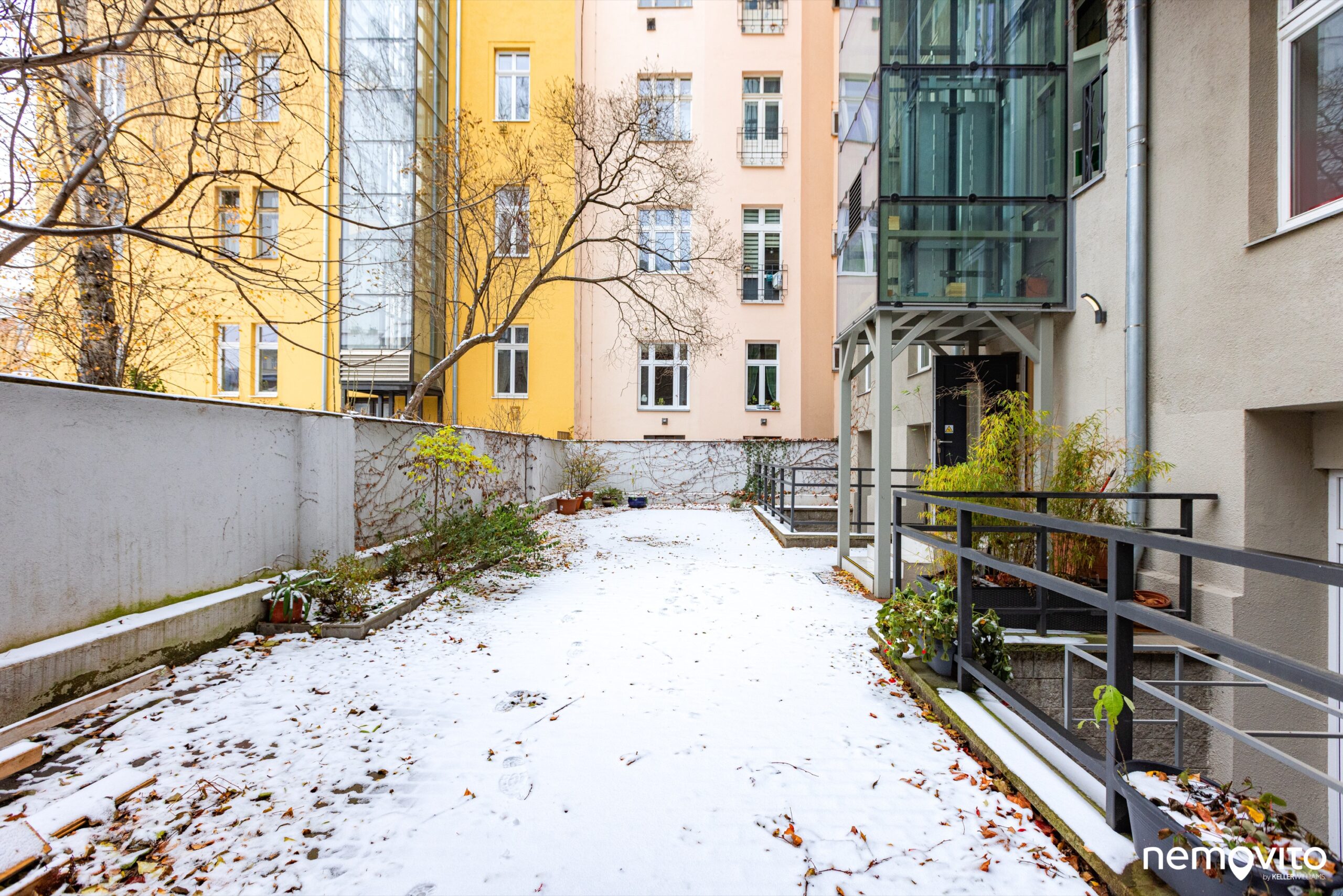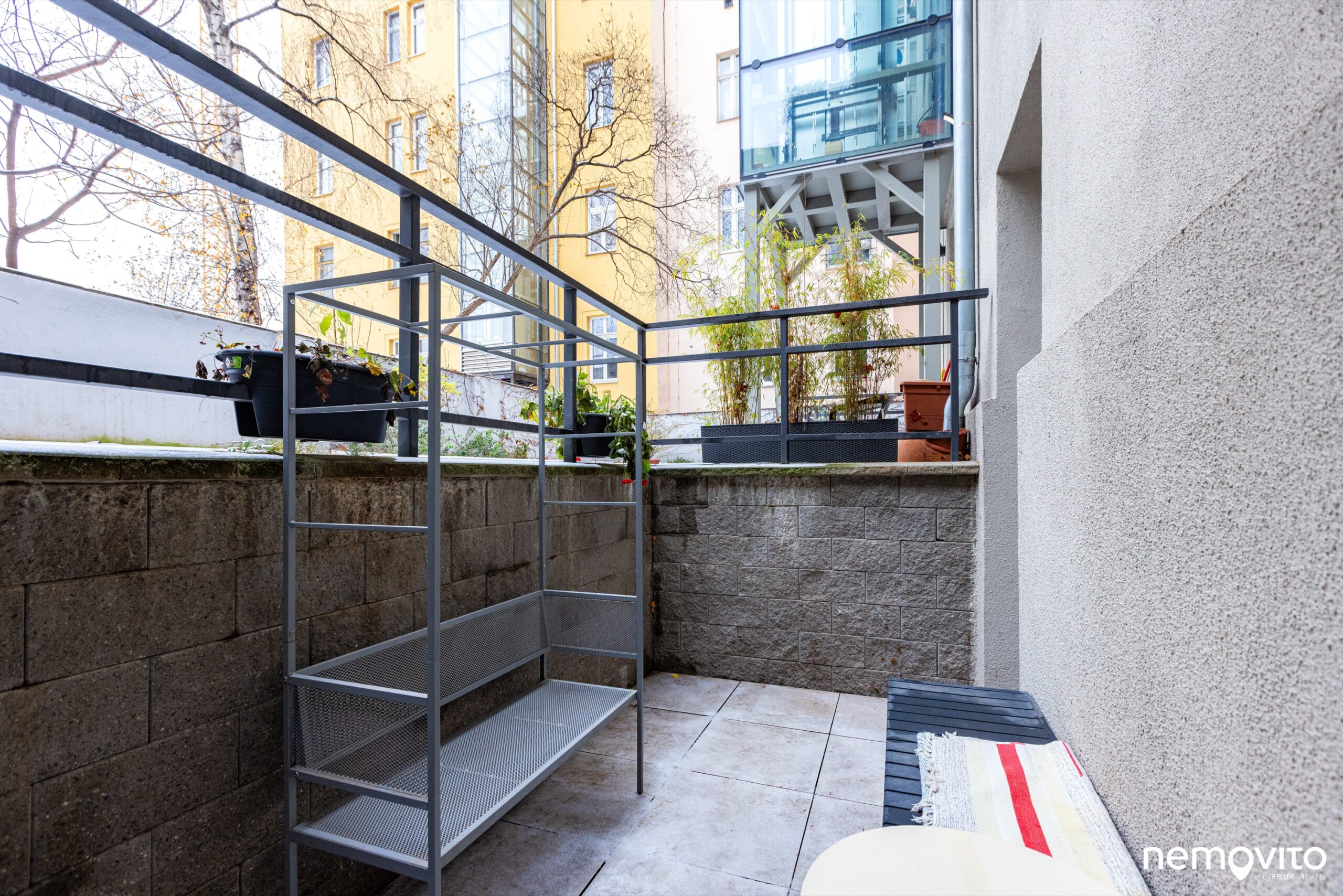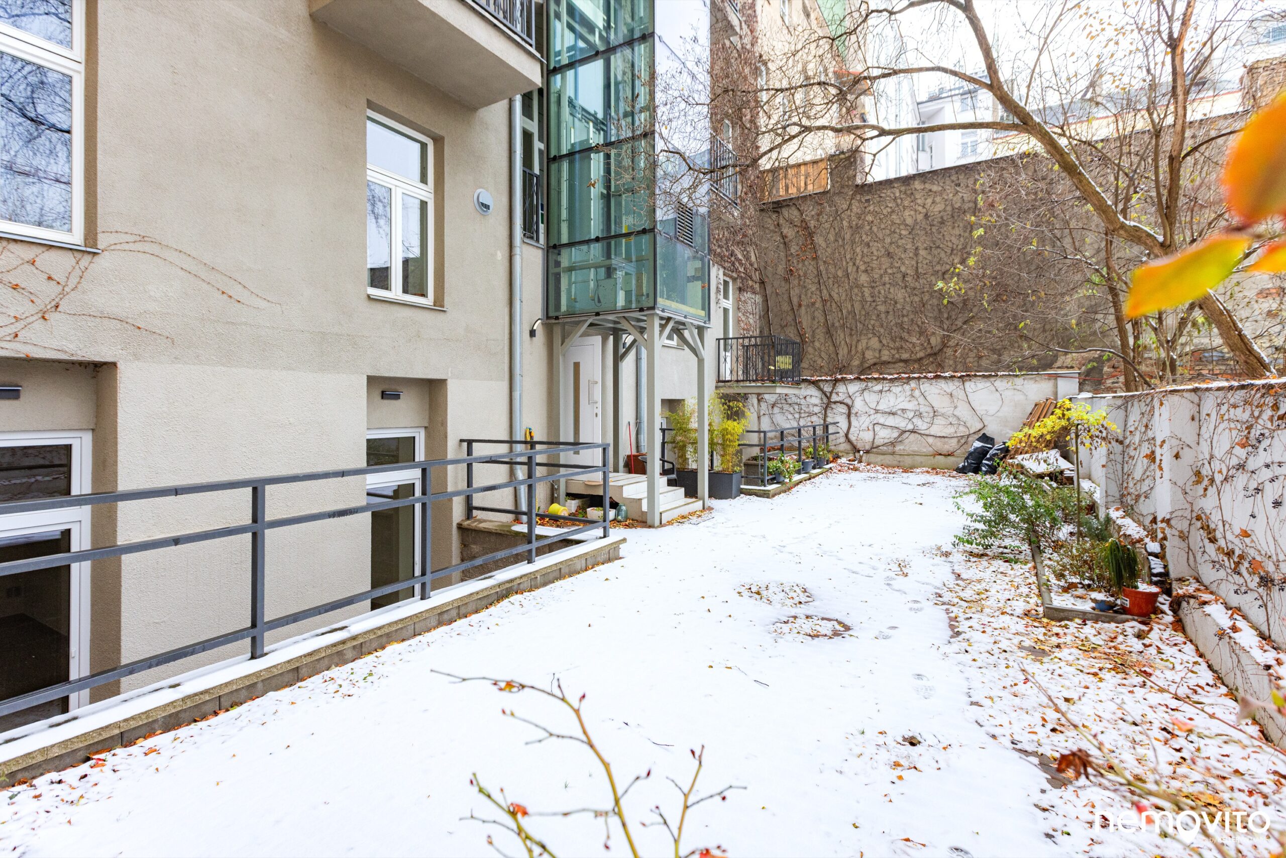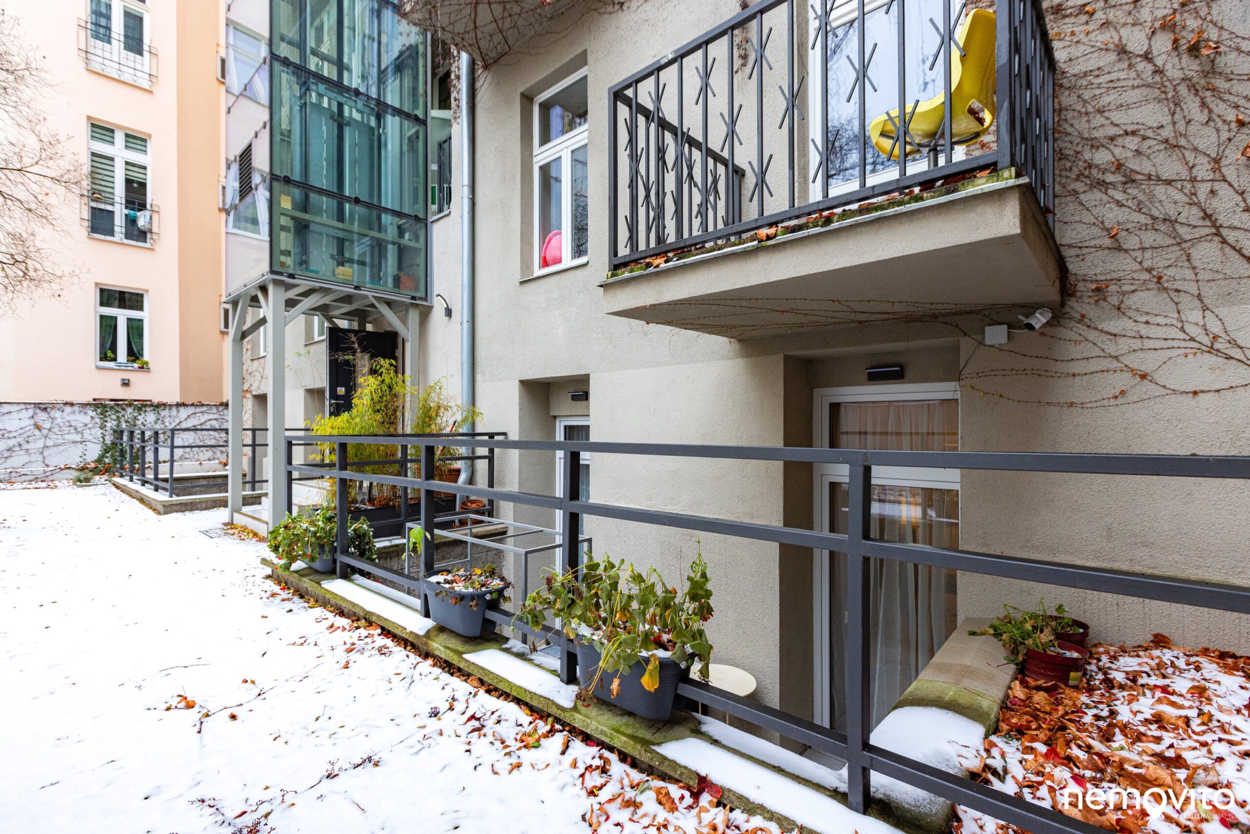 Na terasu lze vstoupit z obou pokojů. Okna jsou nová, stejně jako vše ostatní v bytě. Do vnitrobloku není volný přístup, patří výhradně k tomuto domu.