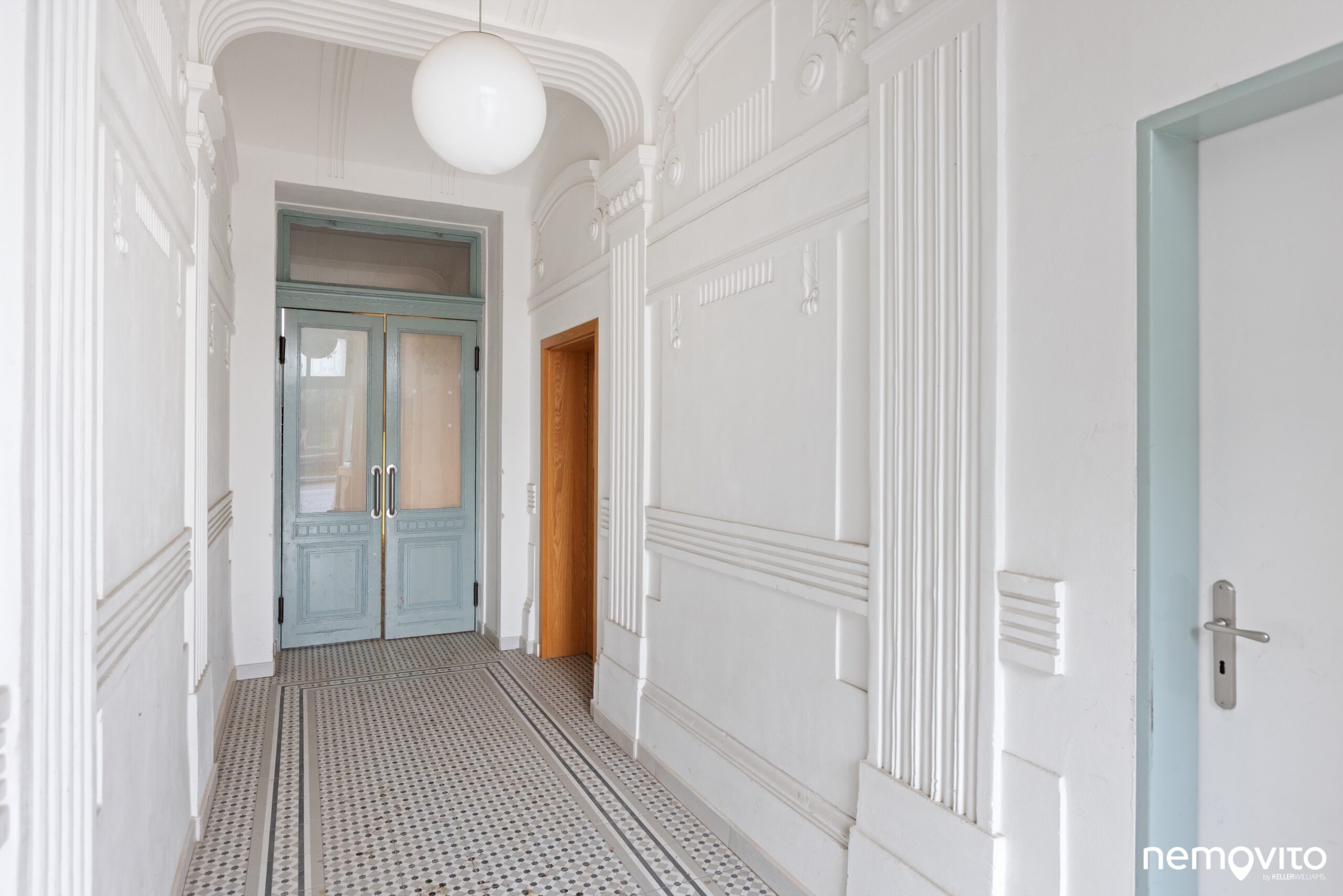 Společné prostory domu jsou celé opravené a vypadají skvěle. Původní zdobné štuky, repasované křídlové dveře, nově opravené podlahy v odpovídajícím dekoru. Chodby jsou ukázkové.