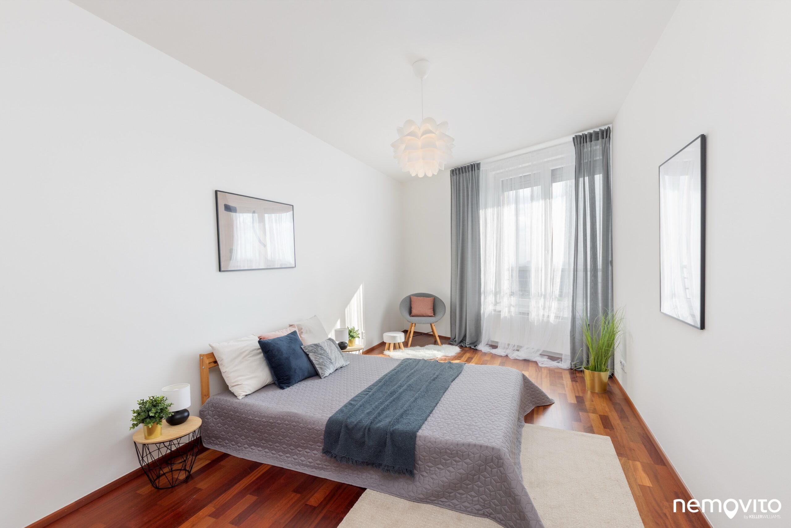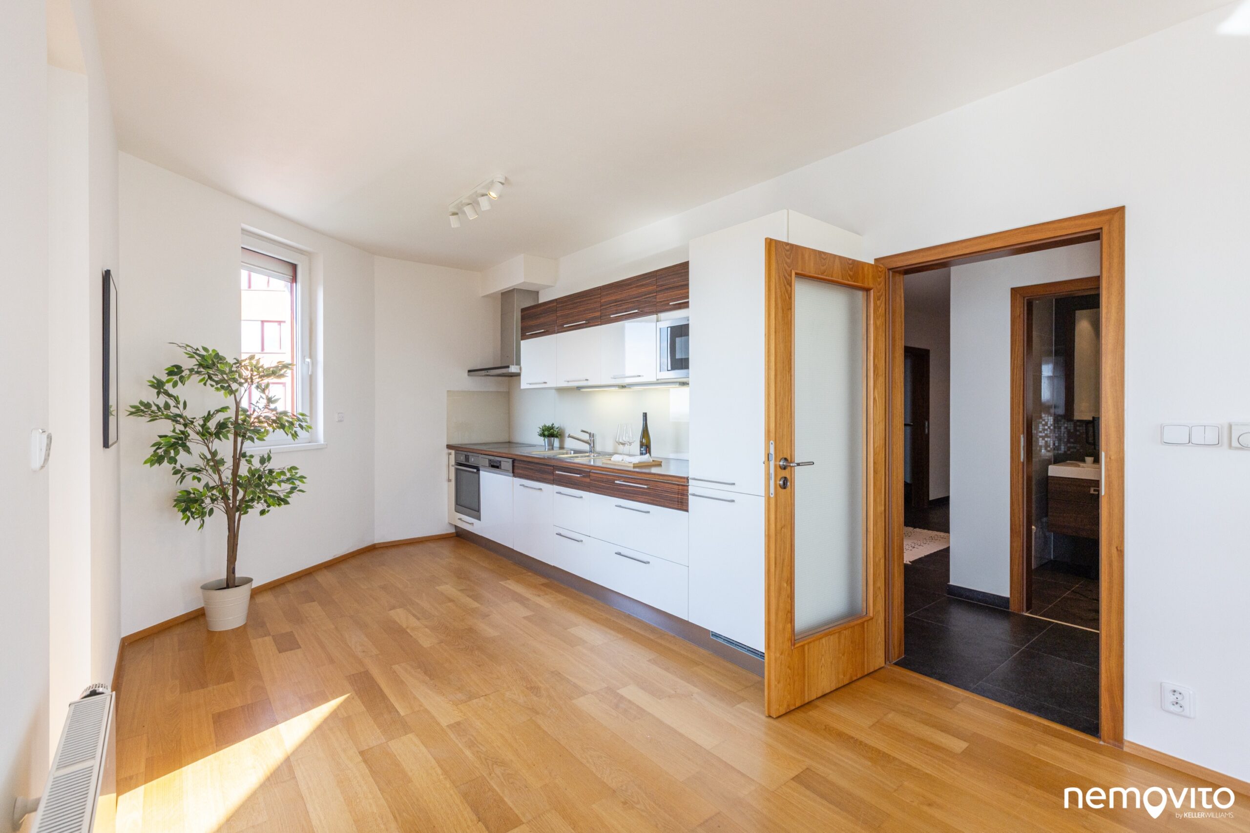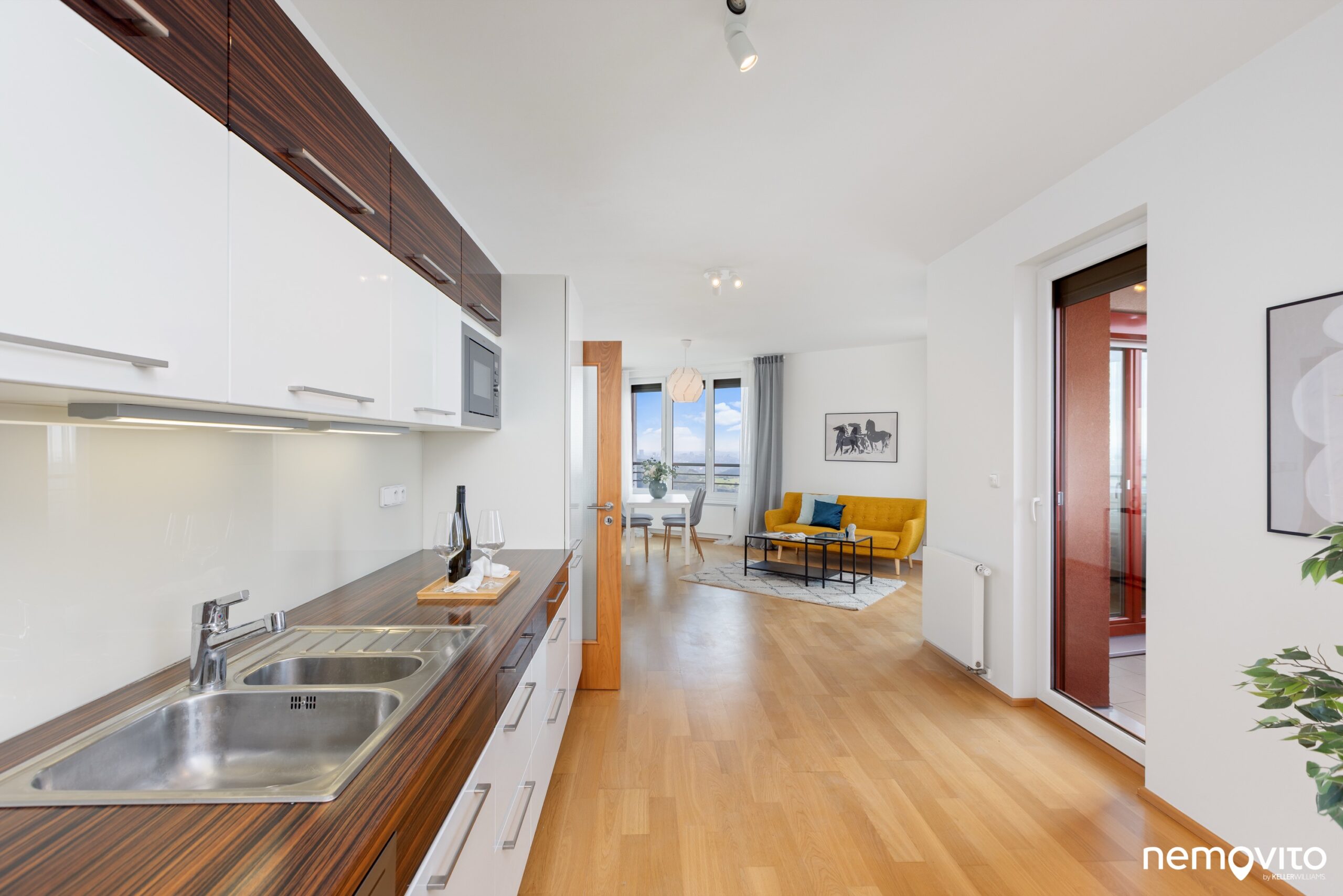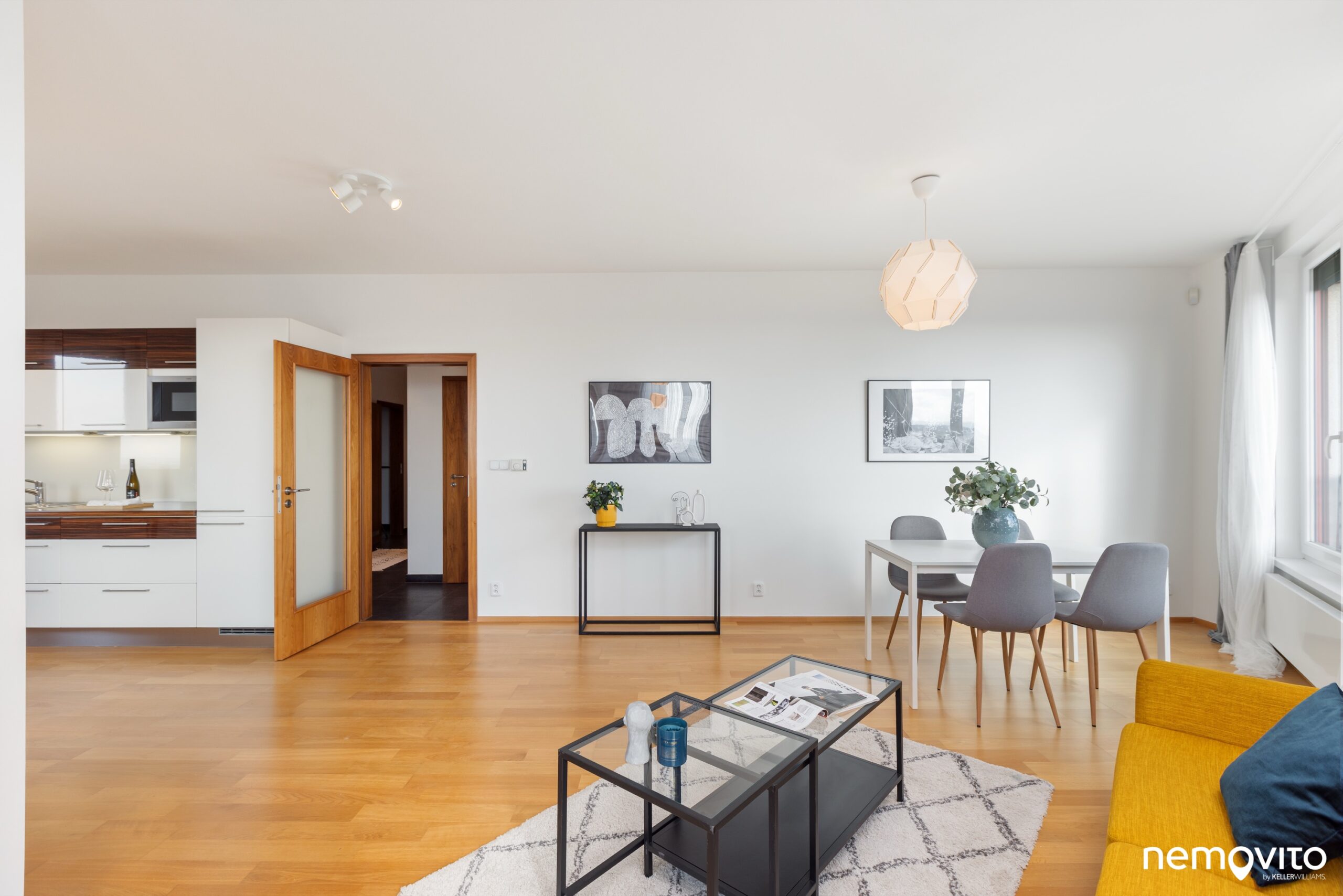 Obyčejné 3+kk vám nestačí. Chcete víc místa. A to nejen v bytě, ale i tak nějak kolem sebe. Ideálně také balkon, sklep a dvě stání pro auta. Řešením vaší situace může být tento více než 90 metrový byt v sedmnáctém podlaží projektu Prague Towers. Naprosto fantastický výhled kolem dokola, se skvělou orientací východ-jih-západ, a ve zcela nevídaném stavu. Projekt, jehož realizaci v roce 2011 dokončila společnost Central Group, stále patří mezi jedny z nejvyšších rezidenčních budov v rámci Čech. Umístěna je pouze pár set metrů od zeleně, která plynule přechází v Prokopské údolí. Poloha domu na kraji jedné z největších pražských zelených ploch je sama o sobě příznivá, co ale teprve z té výšky.