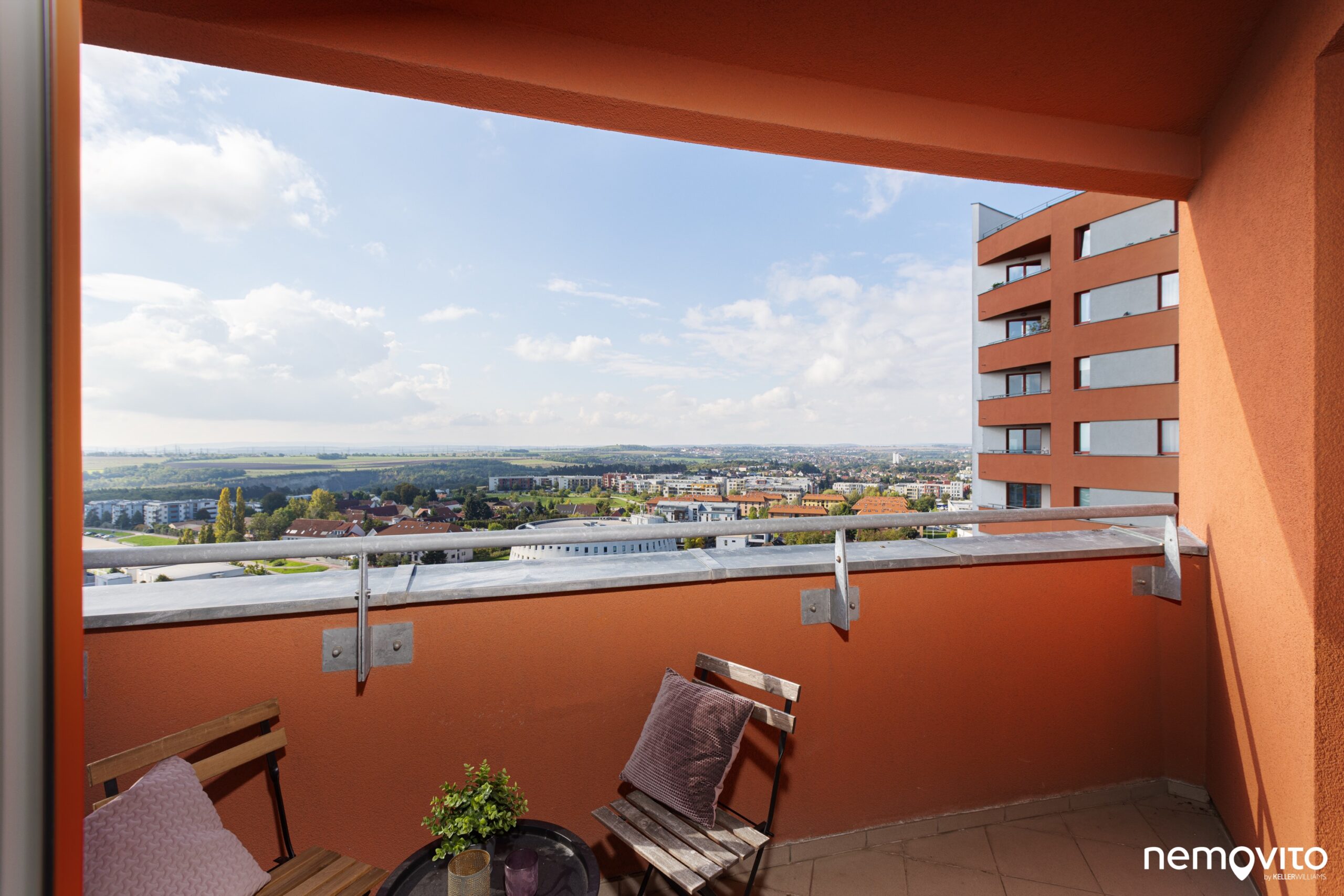Přes 90 m2 v sedmnáctém podlaží a 2 stání