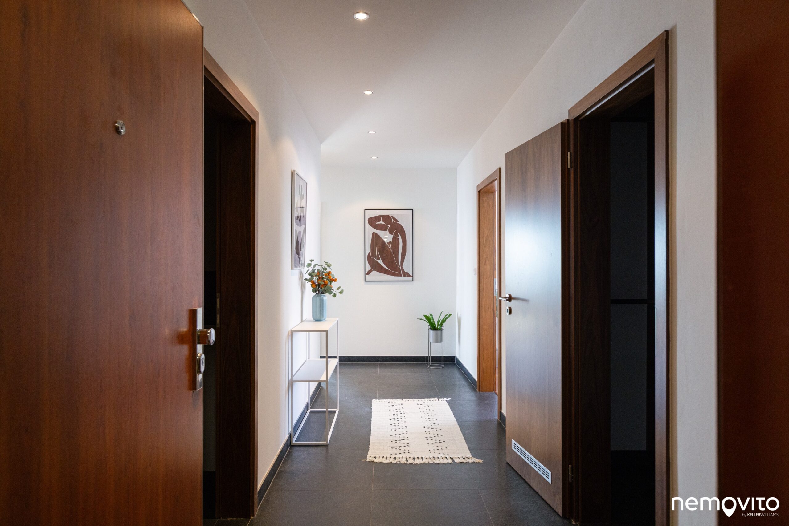 Chodba díky své velikosti zvládne pojmout botníky nebo další skříně. V celém bytě platí, že známky opotřebení budete hledat opravdu složitě.