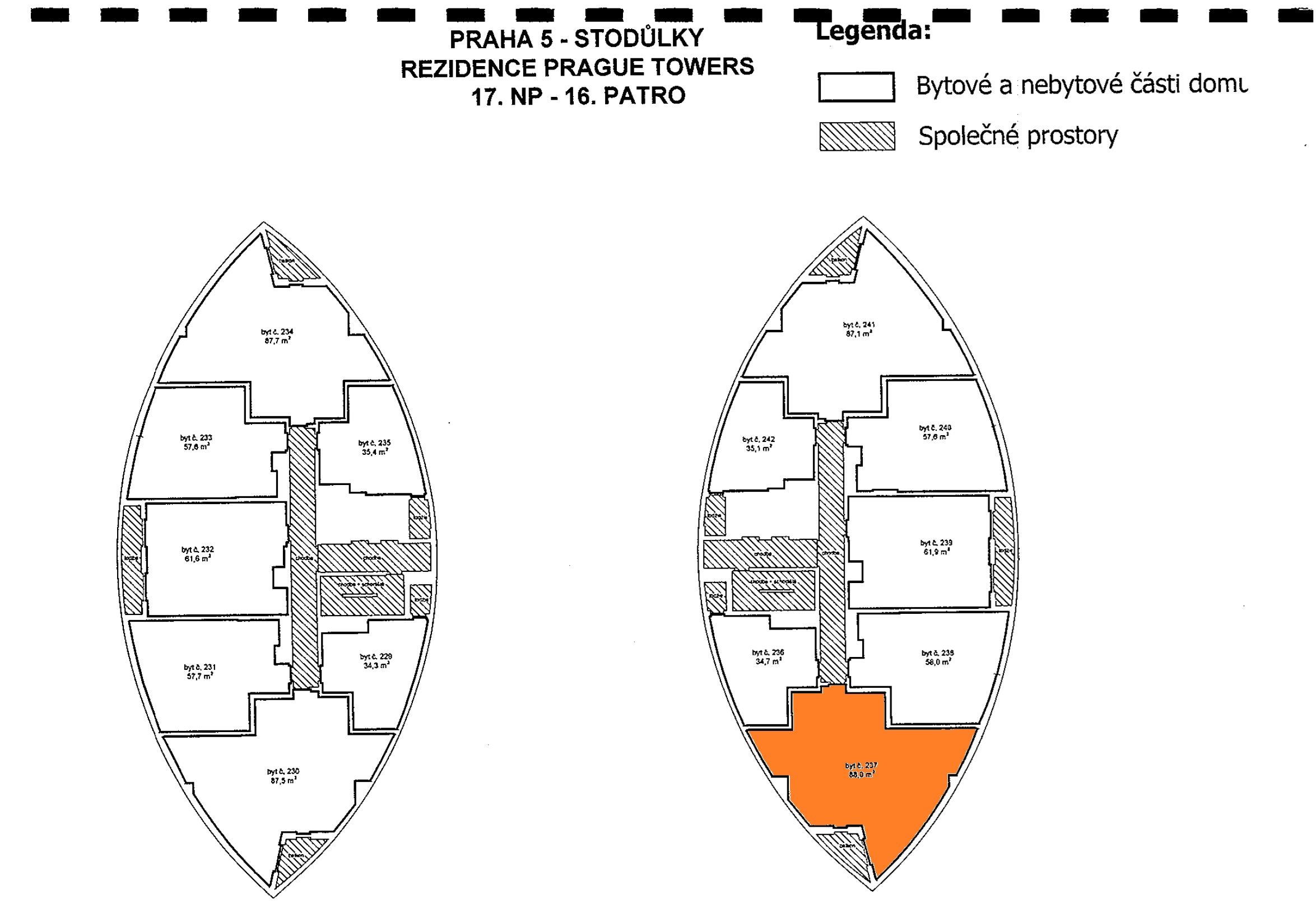 Dispozice 3+kk | 17. podlaží | Garážové stání