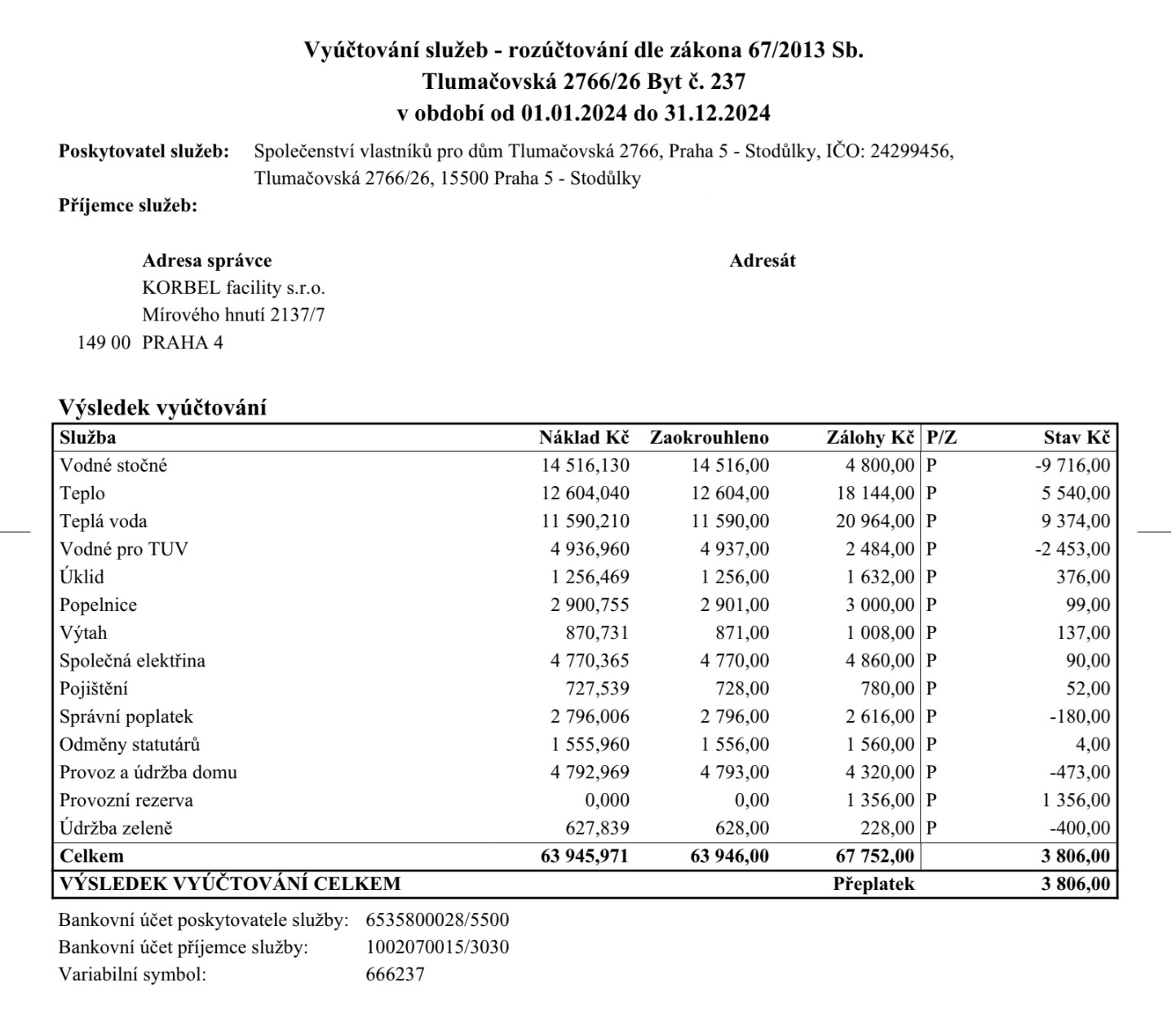 Poplatky 5.646 Kč (vč. garáže a sklepa)