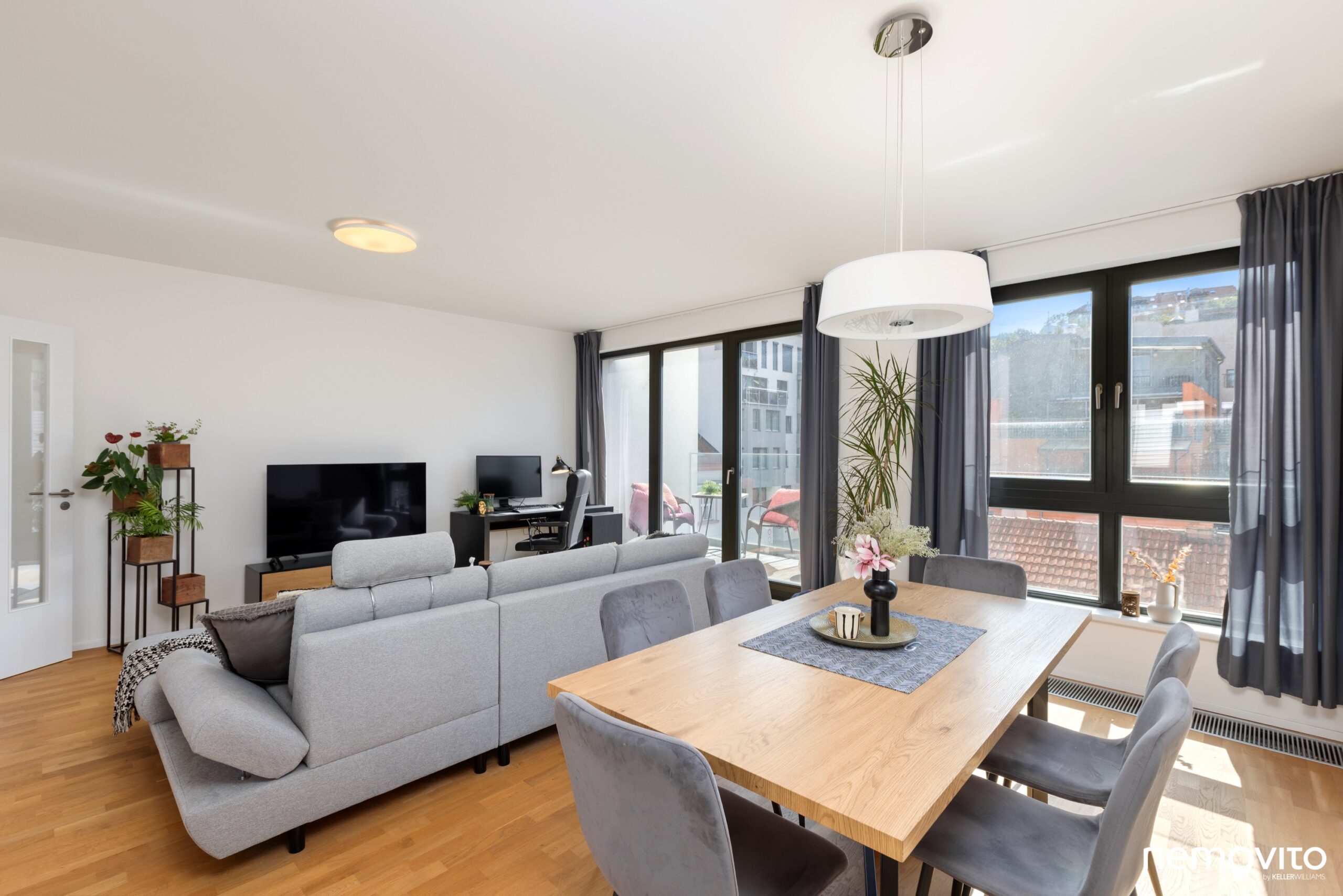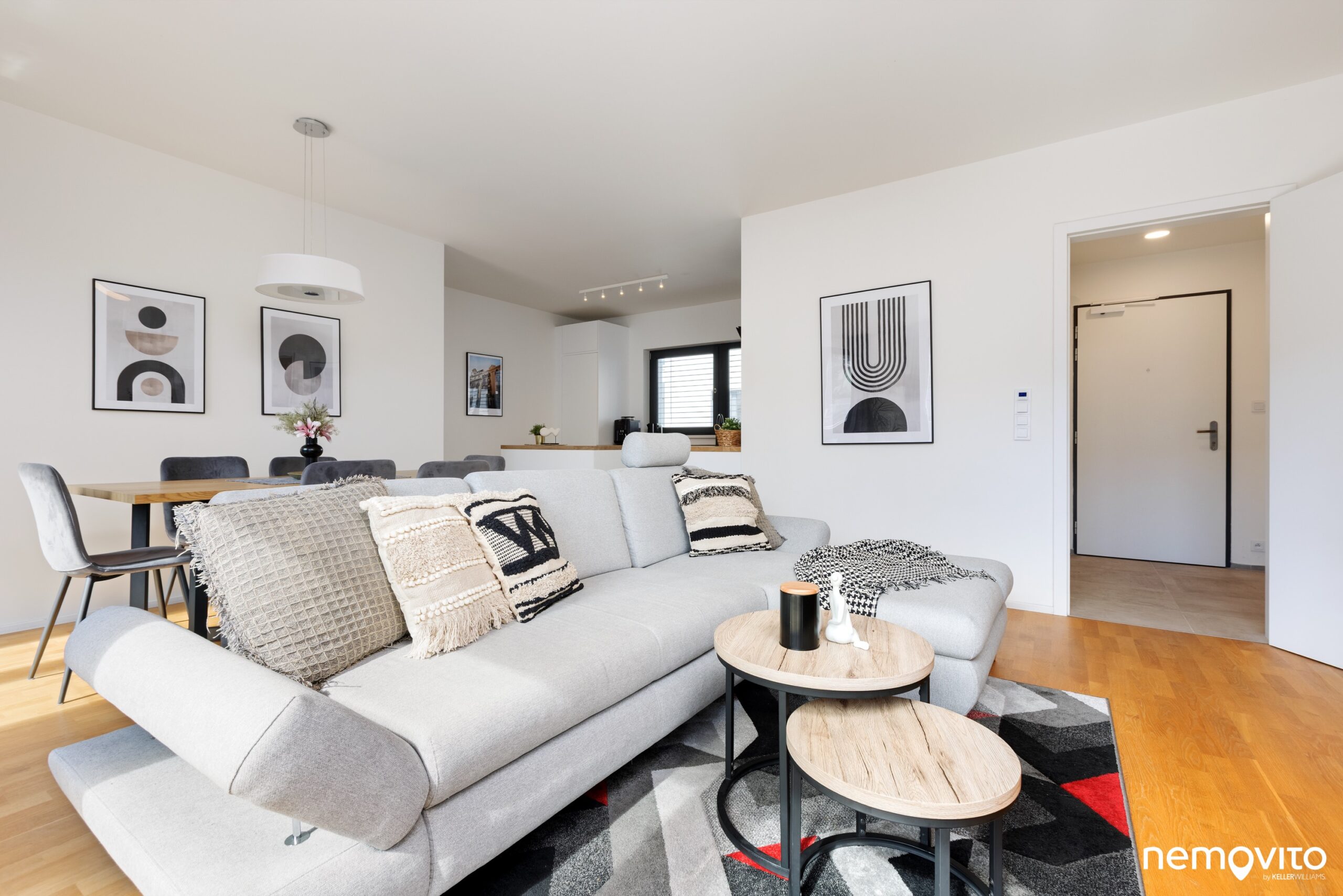 Jedním z hlavních benefitů, které má toto velké 3+kk, je skutečně velký obývák. Jeho plocha je pěkných 39 m2, což pro třípokojové byty rozhodně není běžné. Všimnout si můžete také toho, že celá jižní stěna je prosklená. Jednoduše opravdu vzdušné a světlé prostředí.