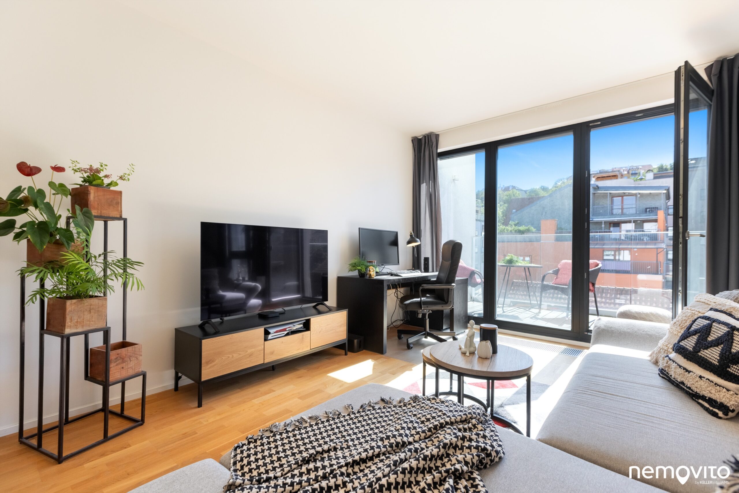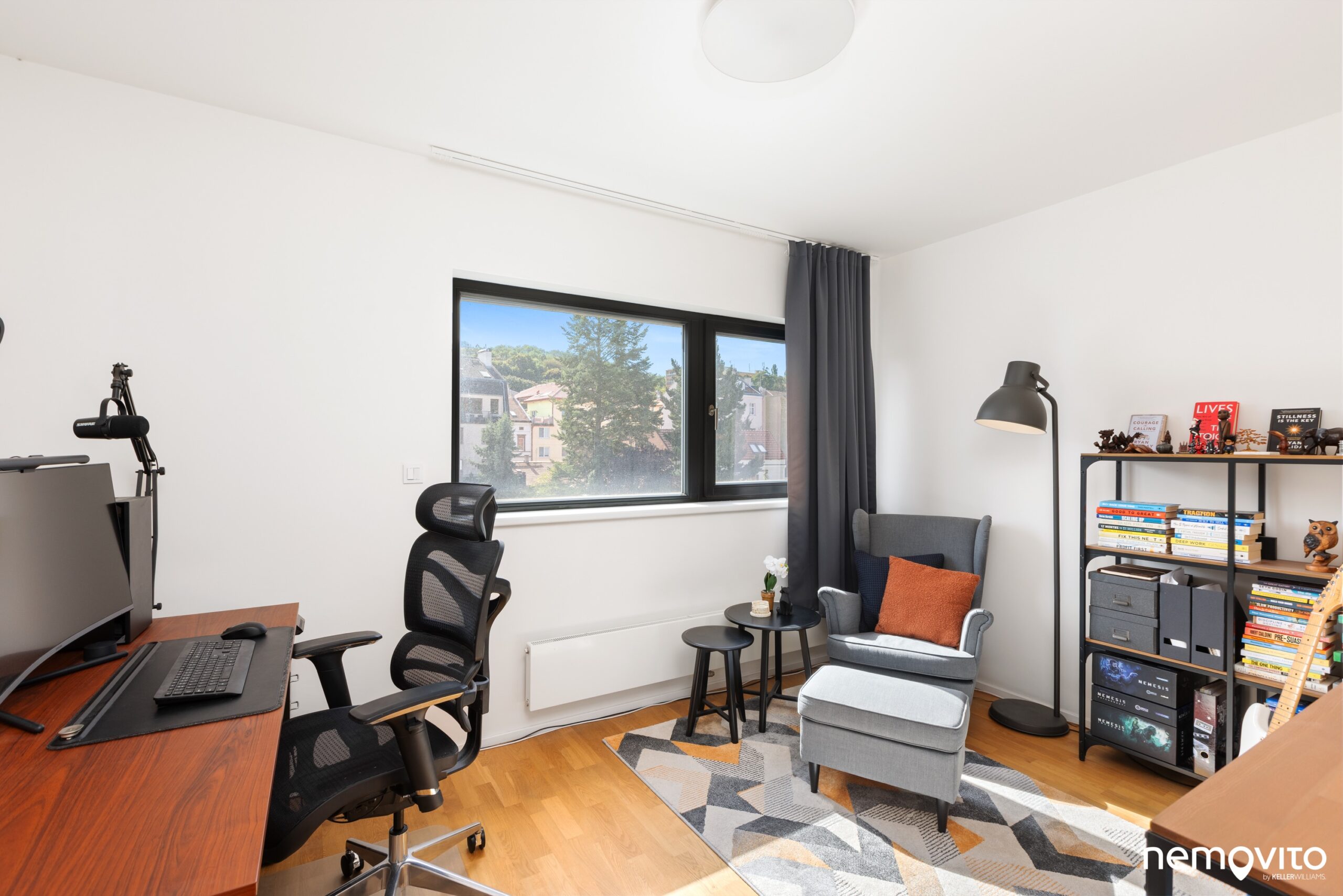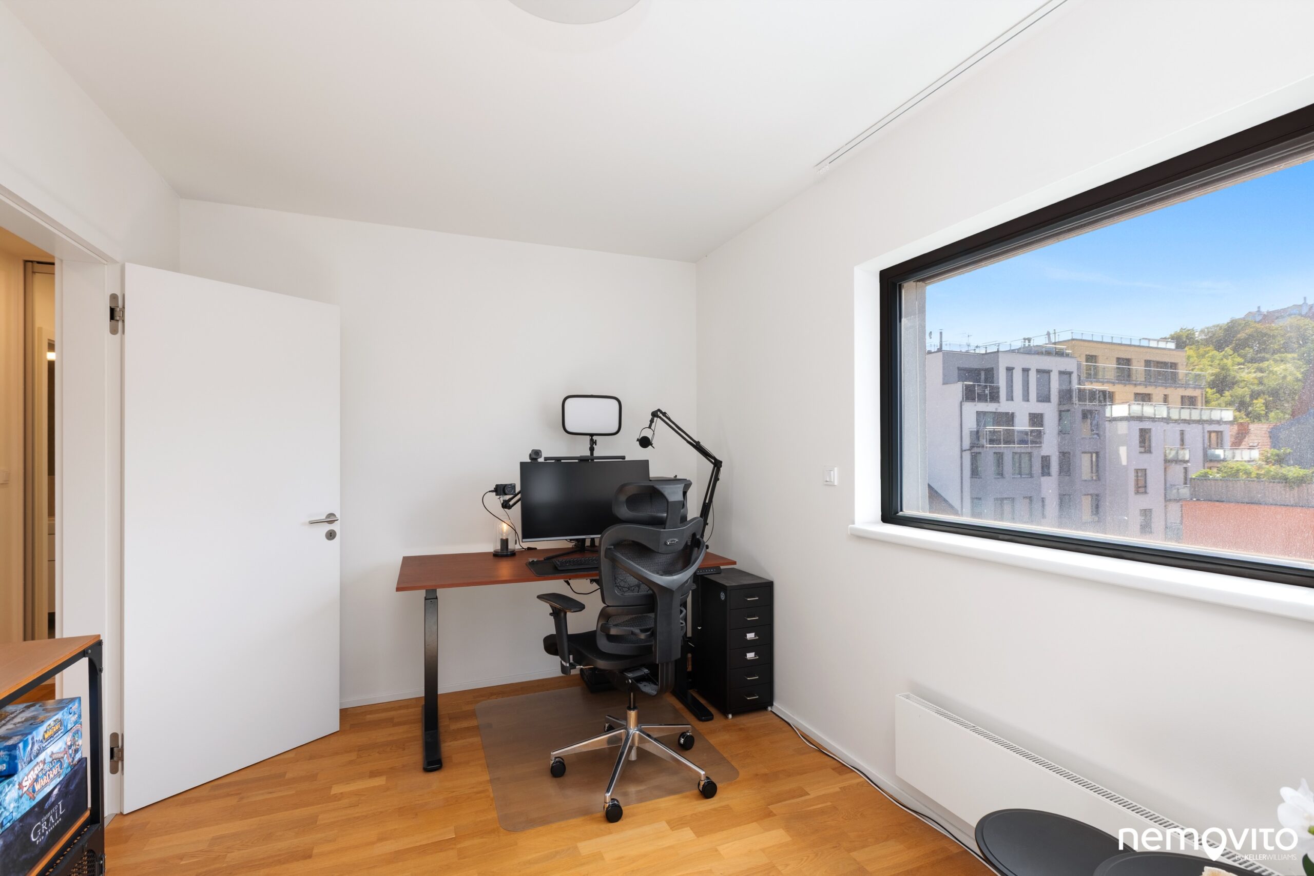Na tramvaj Kavalírka je to totiž zhruba 300 metrů. Auto tak klidně nechte doma. Jakmile naskočíte do tramvaje, na Andělu budete za 5 minut. Tohle místo je zkrátka propojení výhod skvělé dopravní dostupnosti a bydlení v rámci širšího centra, kde vám ale zároveň pod okny nerachtá provoz. Dům je totiž dostatečně daleko od vytížených tahů a byt je navíc orientovaný přesně na opačnou stranu. Takže když otevřete okna, na kterých jsou také předokenní žaluzie, nezačne vám drnčet hlava. A kdybyste snad do budoucna zvažovali instalaci klimatizace, pak je dobrá zpráva to, že příprava pro její instalaci je od developera již hotová a umístění jednotek je možné na střeše. Nebudou vám tedy zaclánět na balkonu. Má byt vůbec nějakou nevýhodu? Snad jedině to, že si ho musíte koupit a není zadarmo.