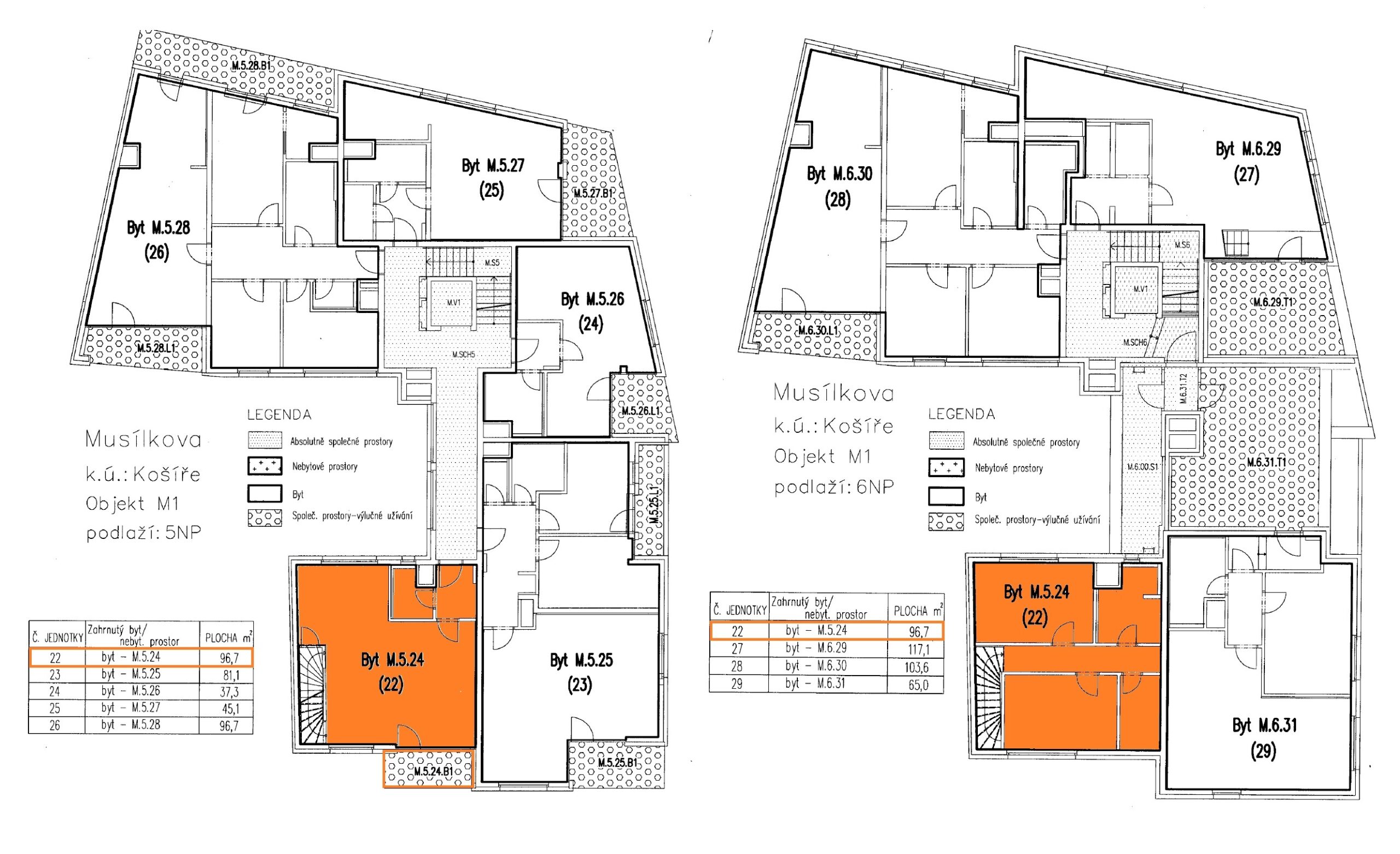 Dispozice 3+kk | 5. a 6. podlaží | Garážové stání