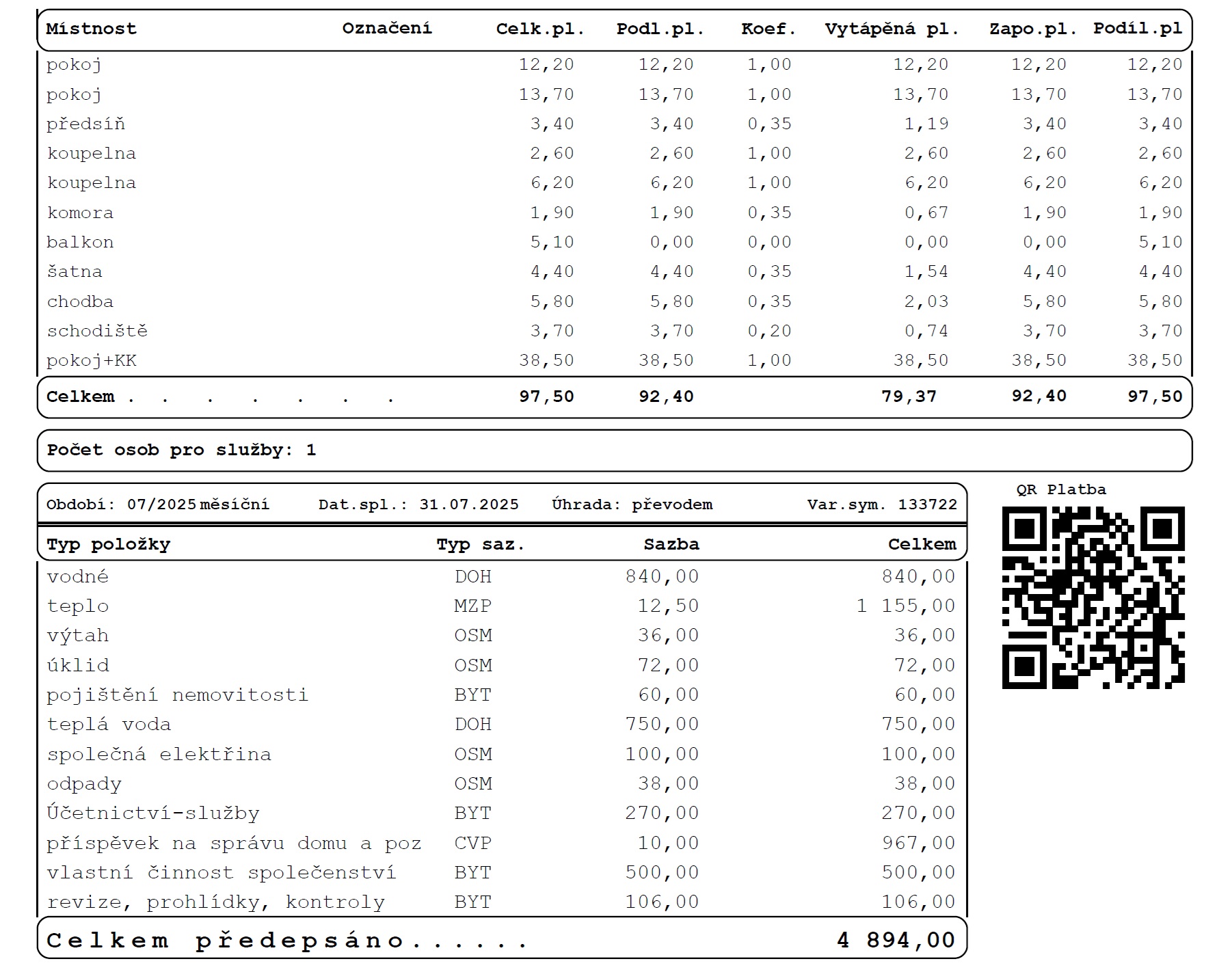 Poplatky 6.707 Kč (vč. garáže a sklepa)