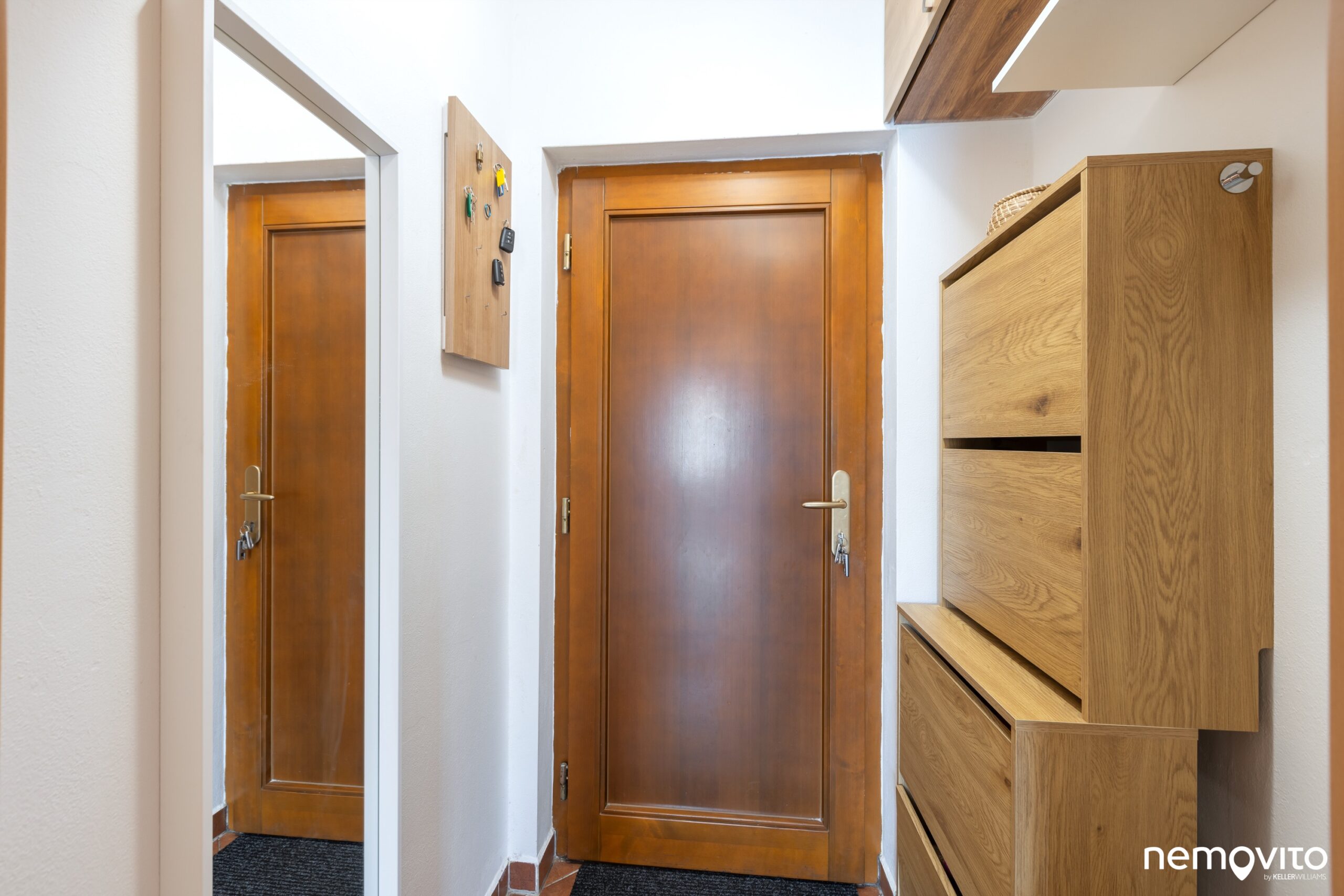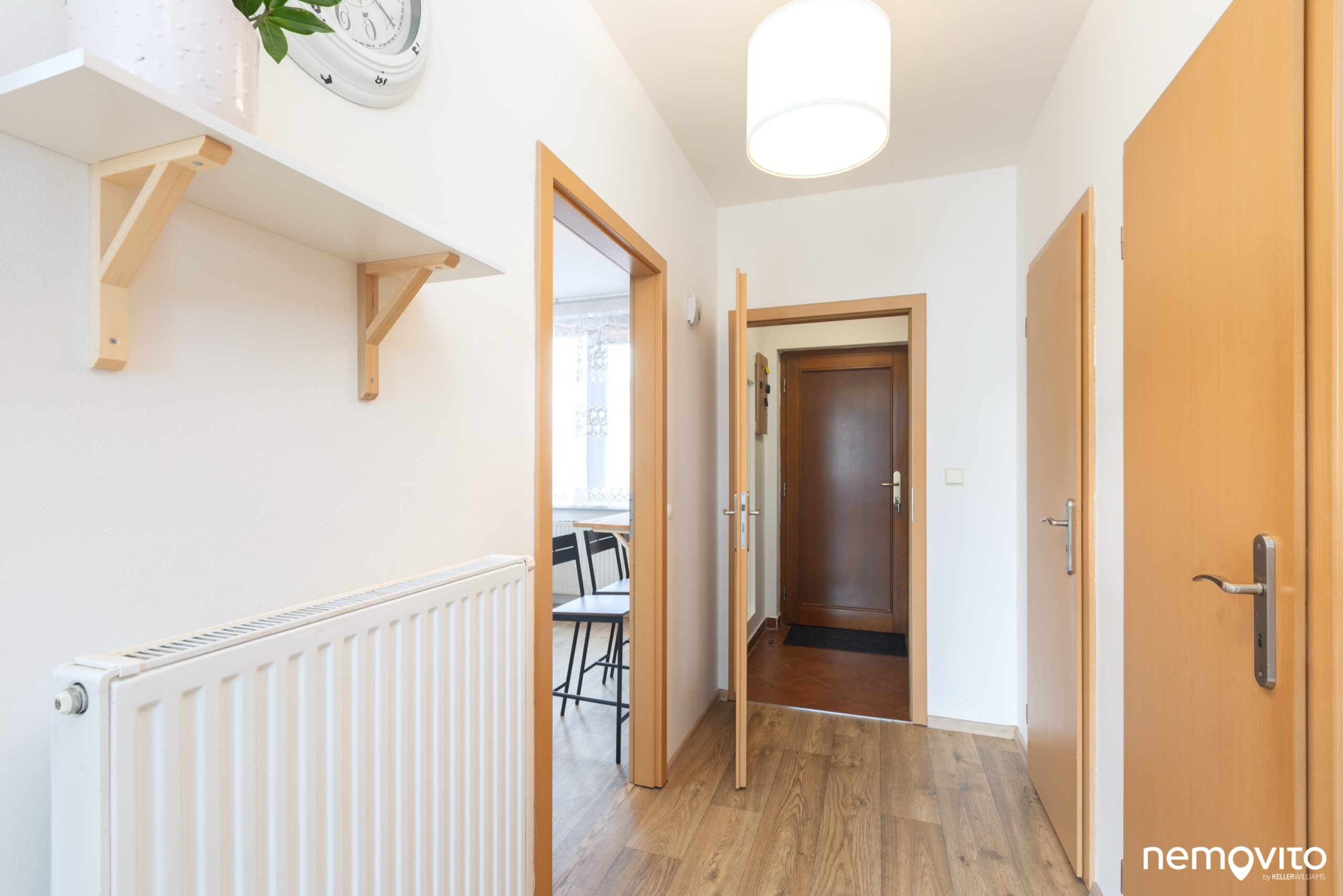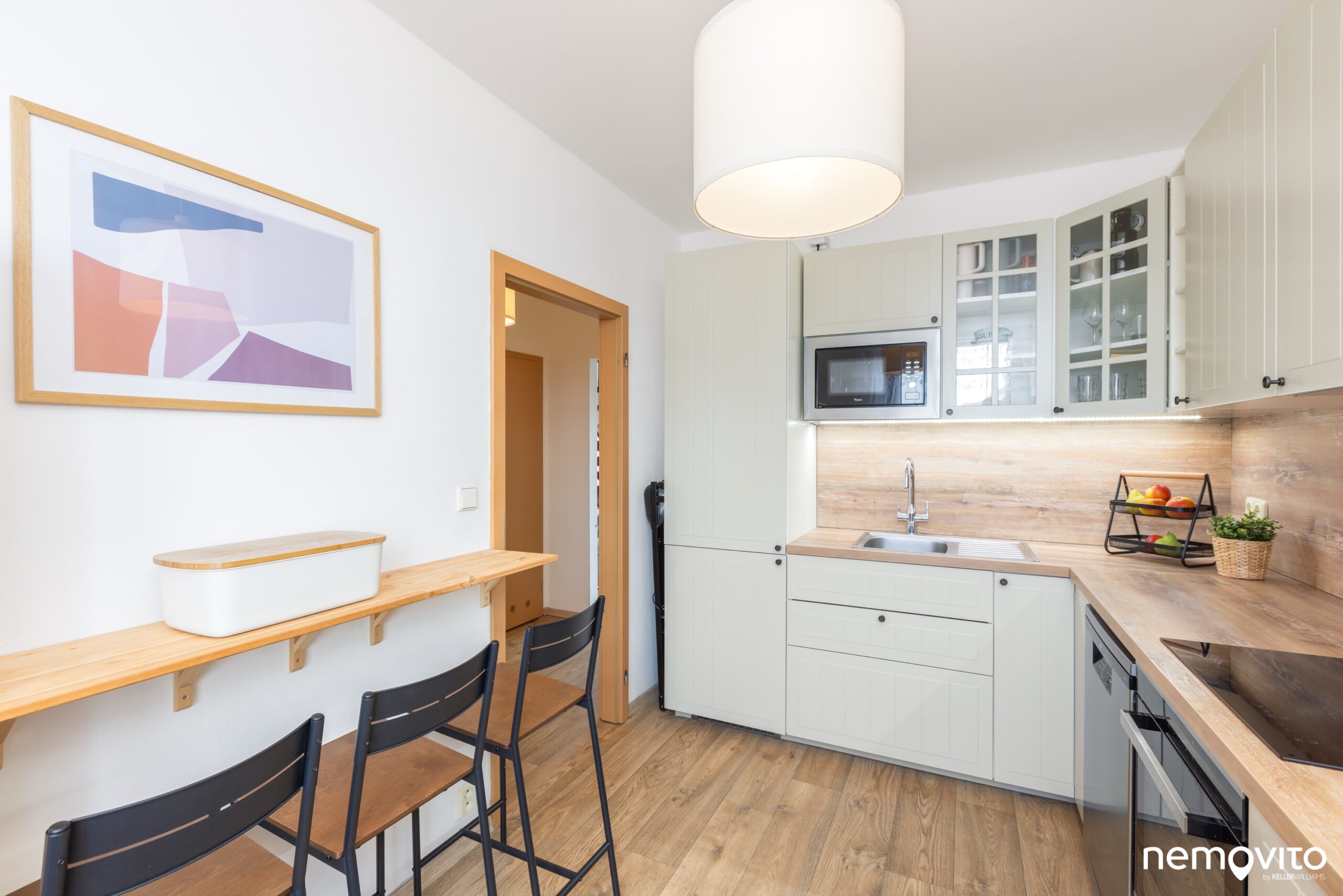 Linka je zánovní a pochopitelně je plně vybavená. Příjemné je také velké okno, díky kterému je v místnosti spousta světla. Naproti vstupu do kuchyně jsou pak dveře od koupelny a WC.