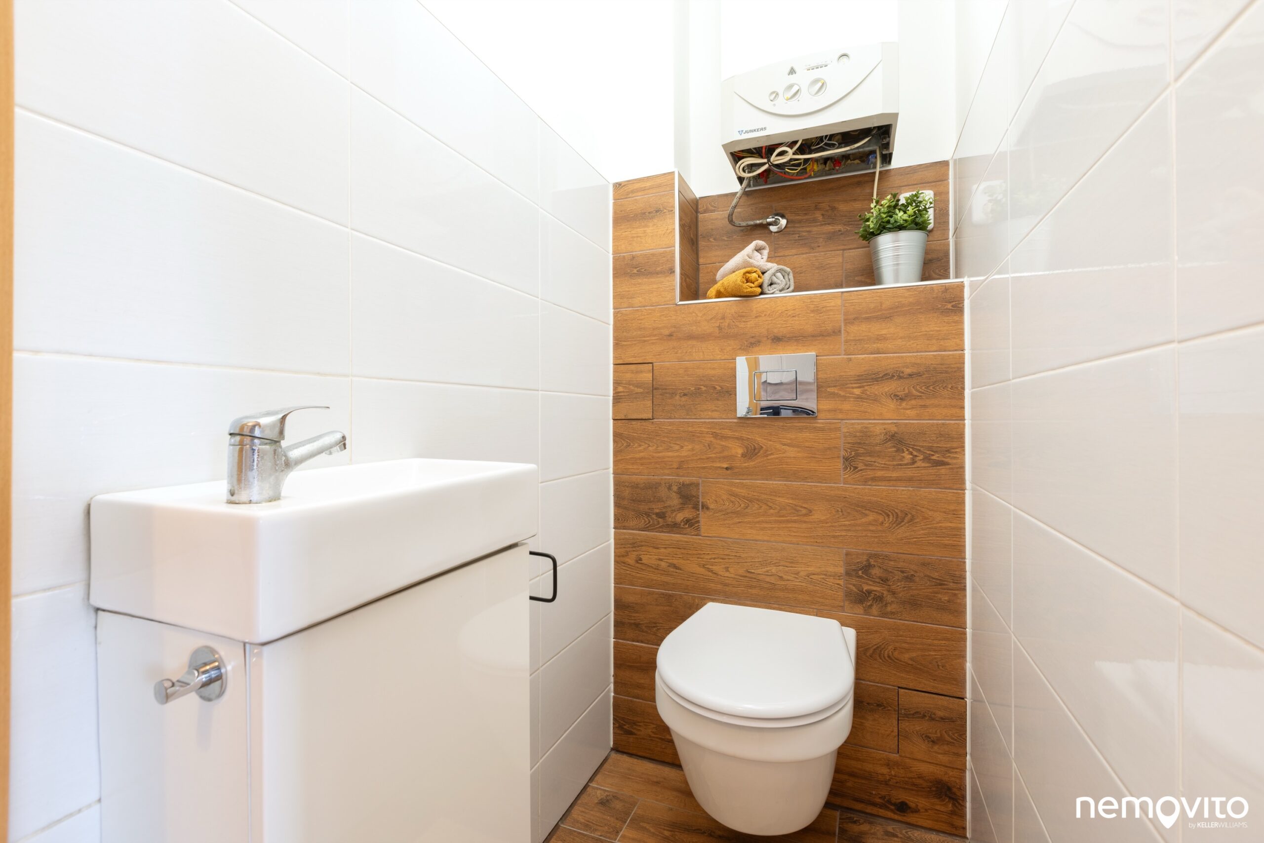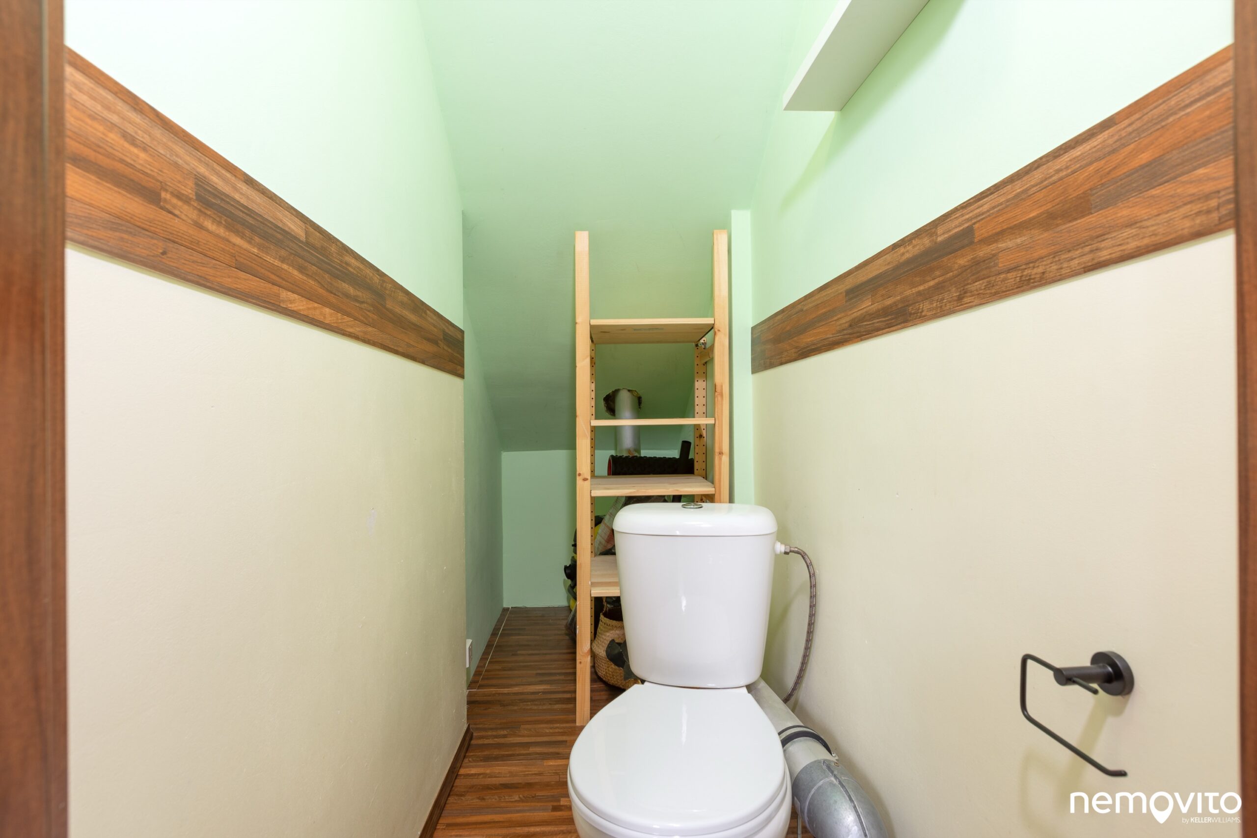 My téhle místnosti doma říkáme ,,Emergency *****". Prostě musí být dva záchody. Vrátíte se z výletu, nešťastný timing rozhodne, že zažívání dvou osob v jeden moment zavelí jisté povinnosti, a pak rozhodně oceníte, že máte dva porcelánové trůny. Že ten druhý není kdo ví jak luxusní je v tu chvíli docela jedno. Hlavní je se ... Od vstupních dveří, kde je prostor na botníky, to naštěstí není ani na jedno WC příliš daleko. Za tím horním je pak ještě docela dost místa, třeba na úklidové prostředky.