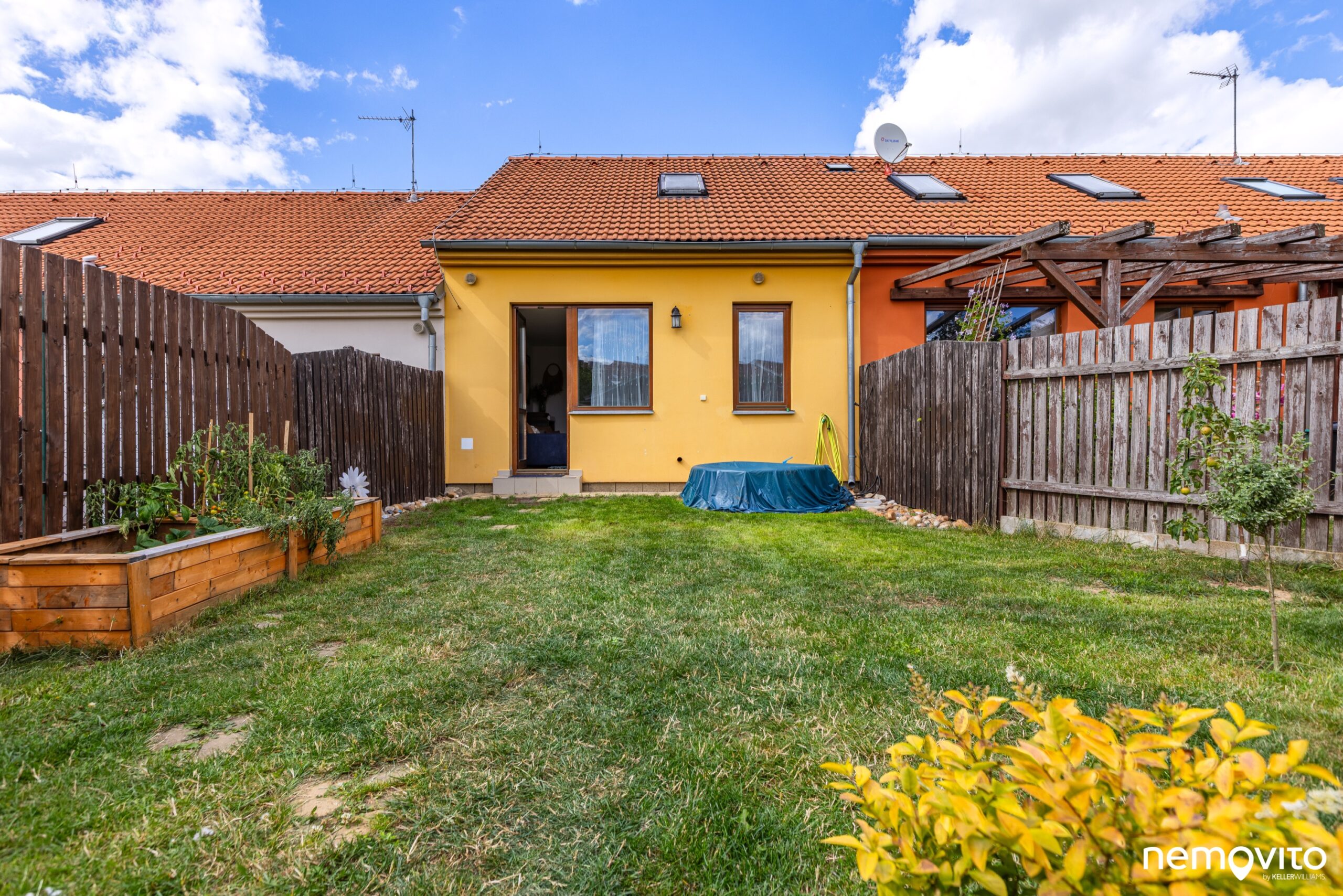 Dům má dvě obytná podlaží a především 239 m2 pozemku. Necelých 40 m2 je před domem, za domem pak zhruba 140 m2. Dost místa na zahradní domek s grilováním, dětský domeček, bazének... No zkrátka všechno, na co v bytě musíte zapomenout.