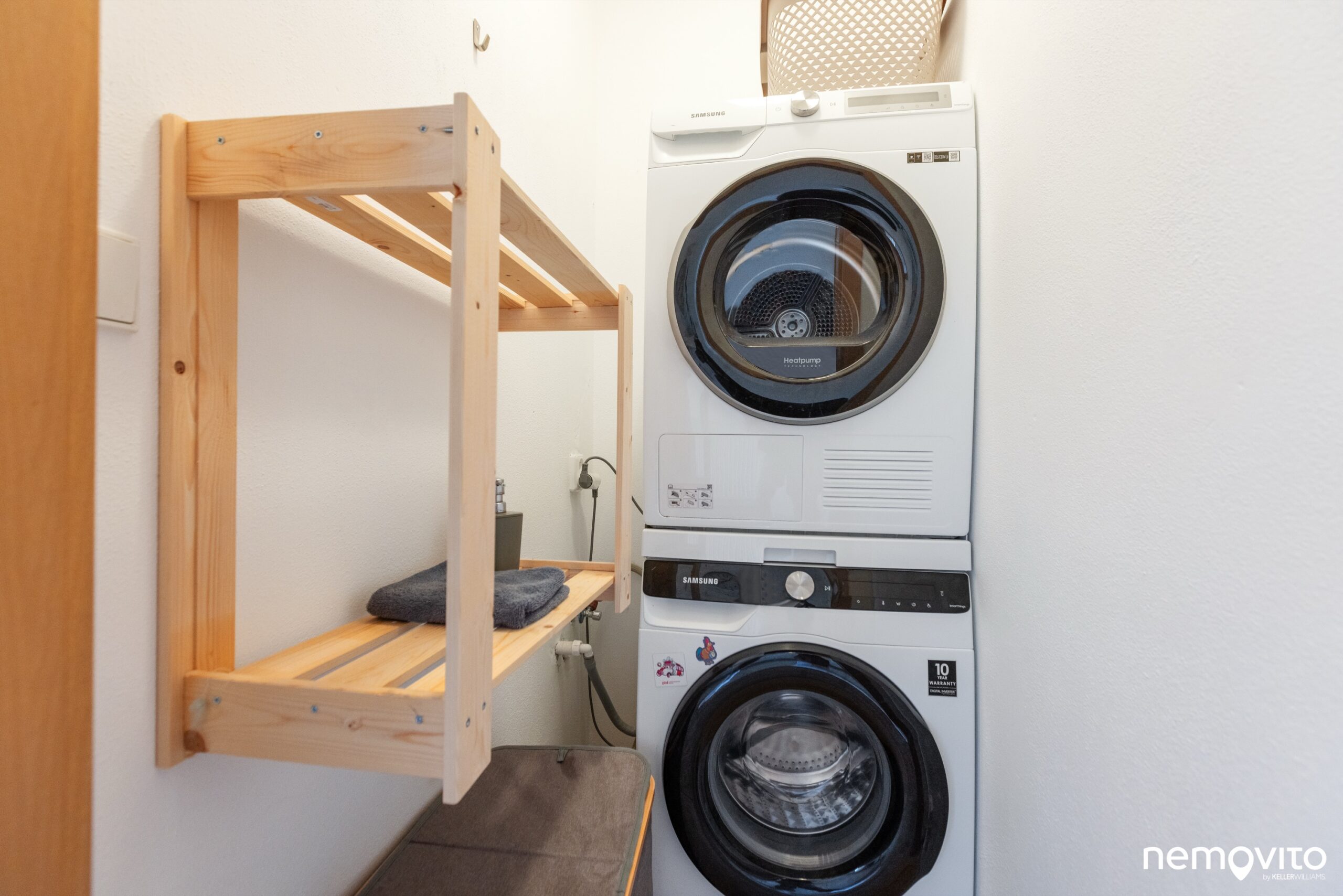 Na první pohled možná menší, ale dvě WC a technickou místnost tu máme. Pračka a sušička tak nemusí být nikde vystavená, abyste o ně každý den zakopávali. Oba dva spotřebiče jsou pěkně uklizené bokem. Navíc kdo chcete prát v noci, u spaní nebude rušení - obě ložnice jsou nahoře, pračka dole.