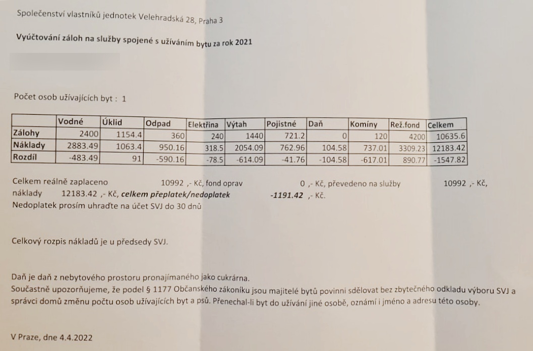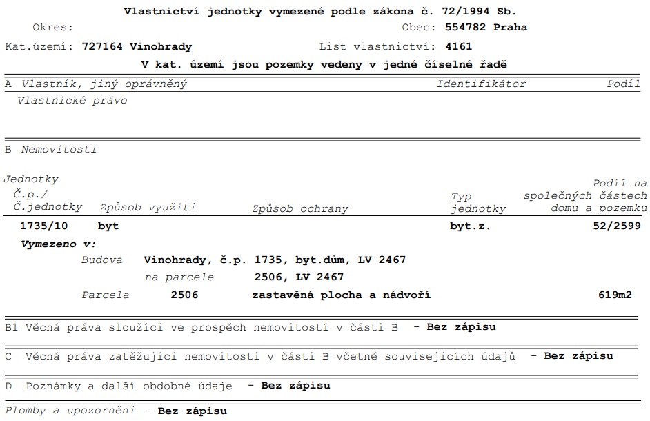 Každý vlastník bytu spoluvlastní část nebytového prostoru (102 m2), z jehož pronájmu proudí do kasy SVJ nemalé peníze. Díky tomu se dům daří udržovat v nadstandardním stavu, aniž by vlastníci byli nadměrně zatížení vysokou platbou do fondu oprav. Okna bytu naleznete na druhé fotce při pravém kraji domu, druhé podlaží.