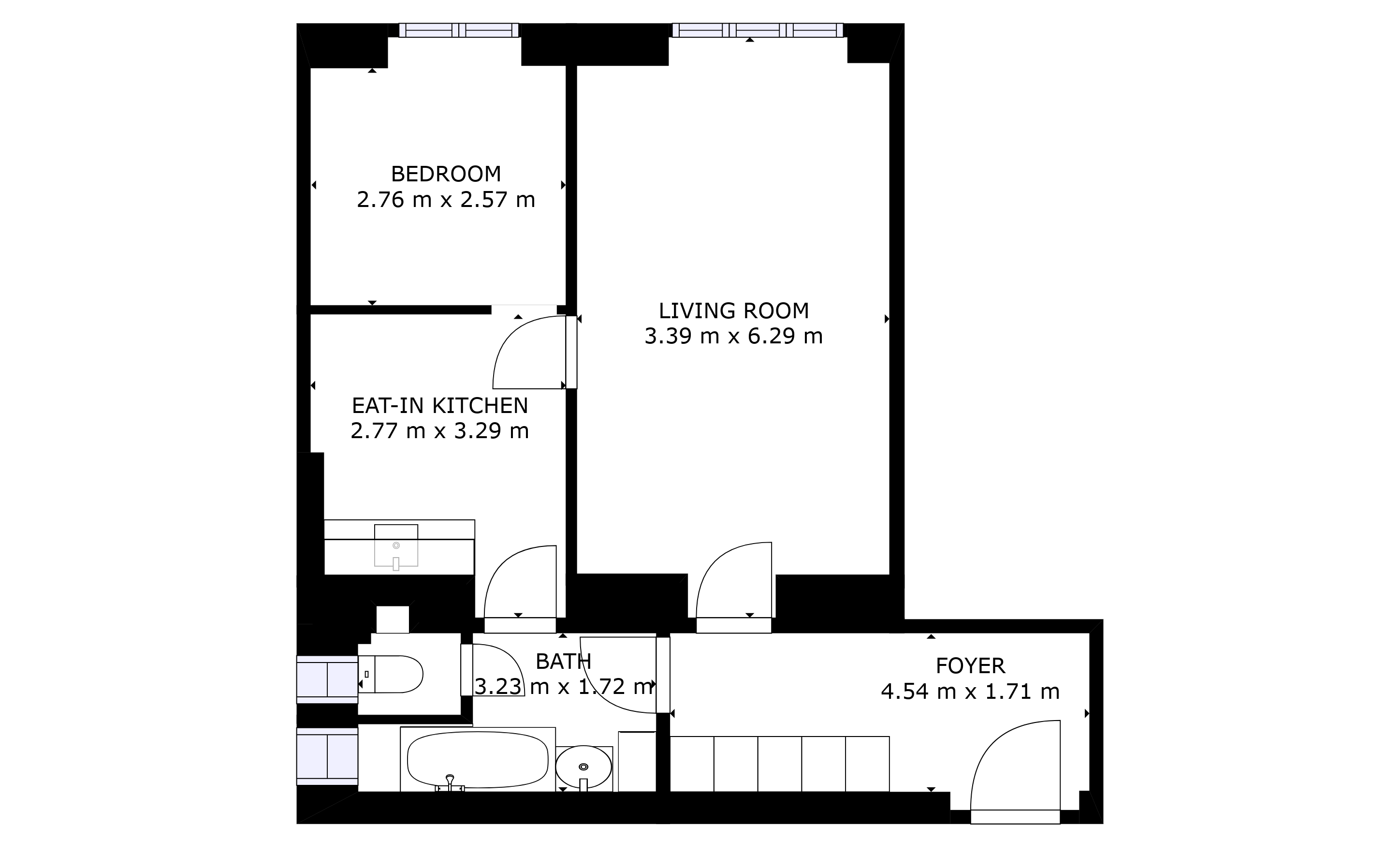 Společným jmenovatelem obou místností bytu jsou velká okna na západ, která poskytují výhled na jednu z ikon hlavního města.
