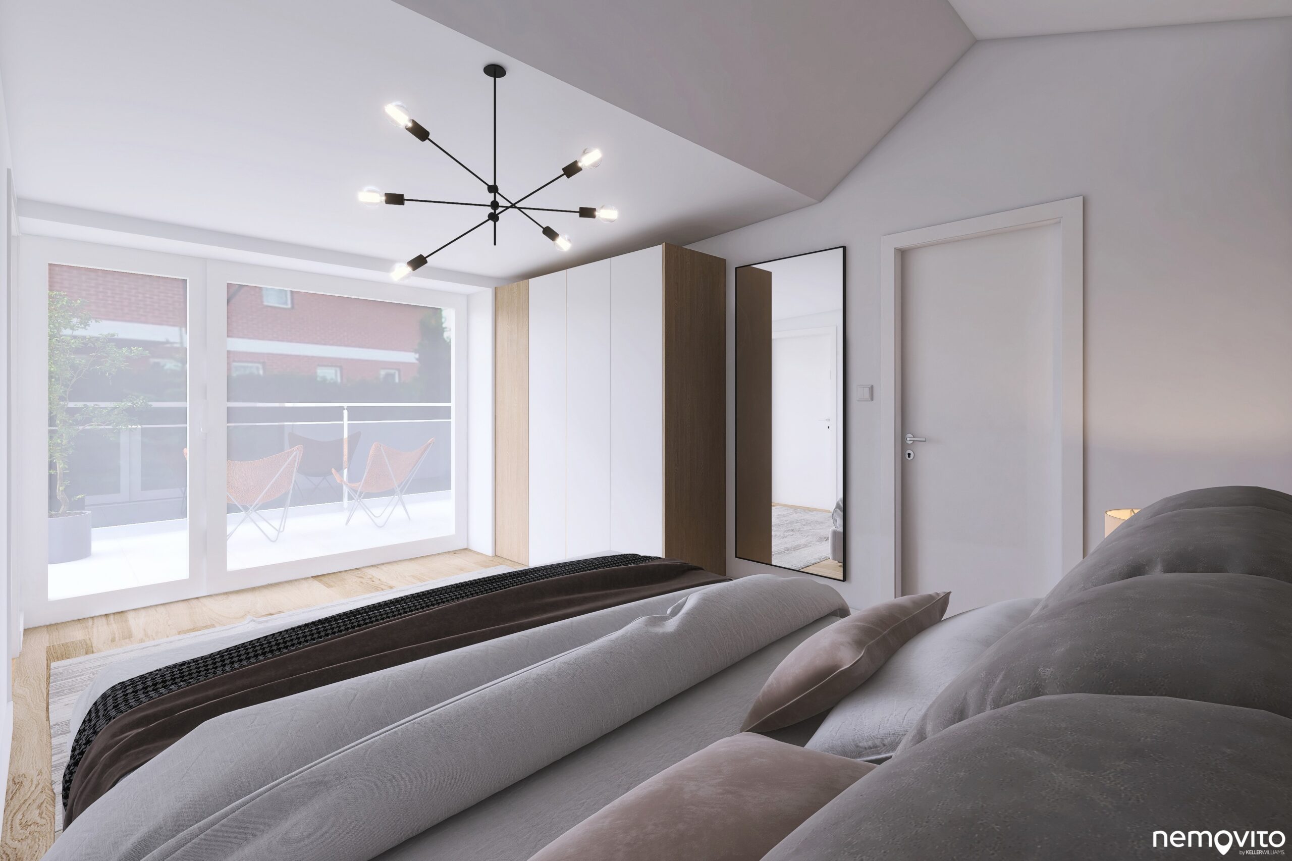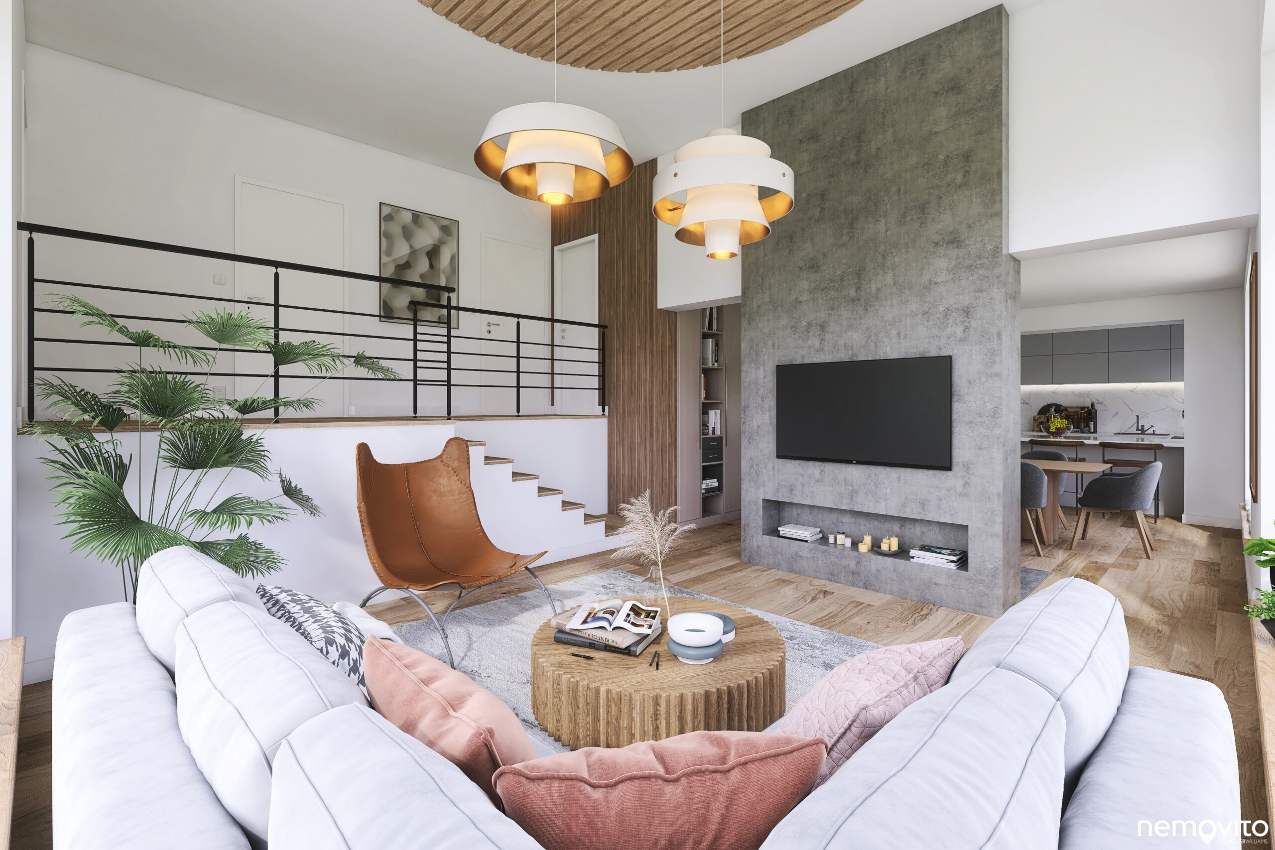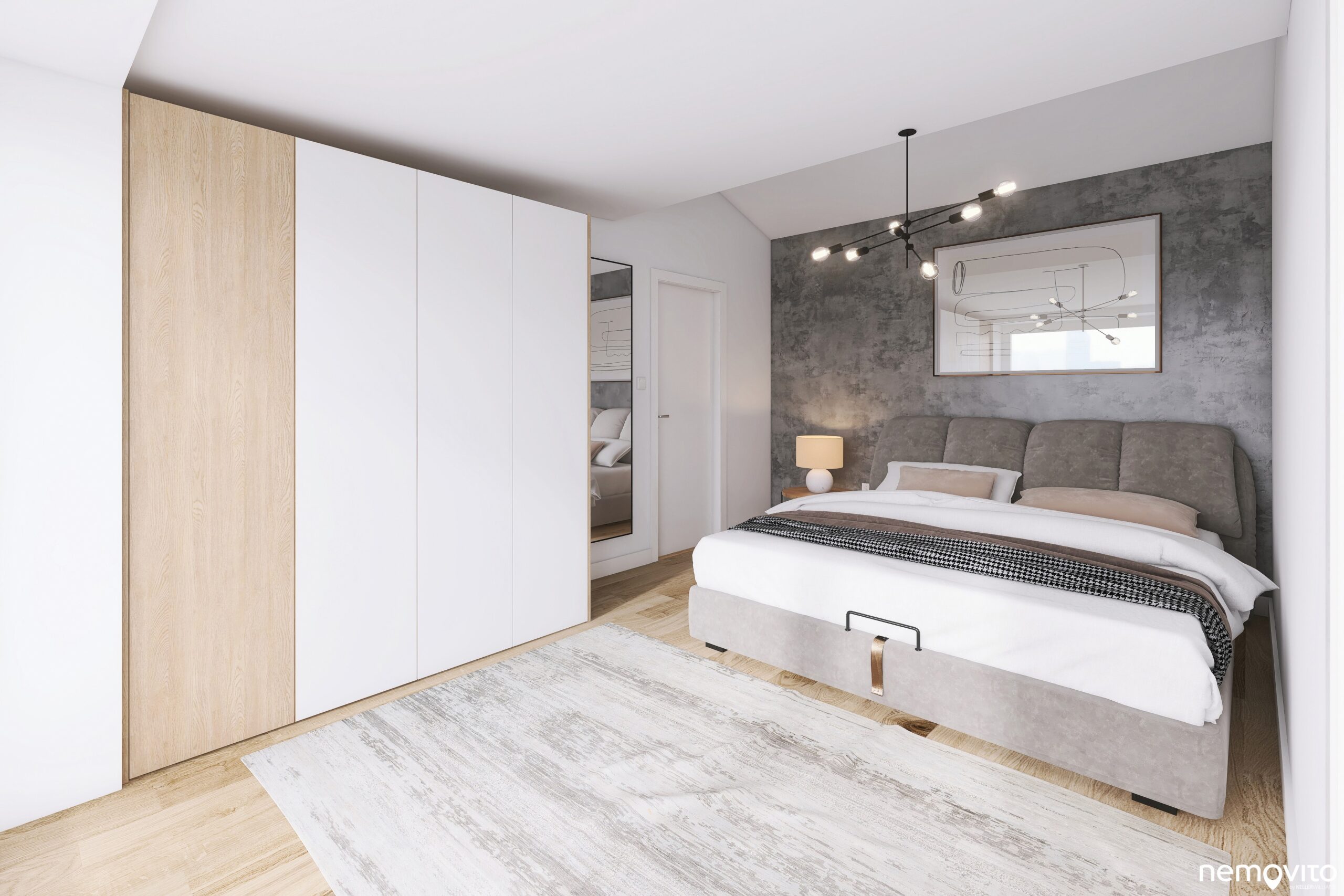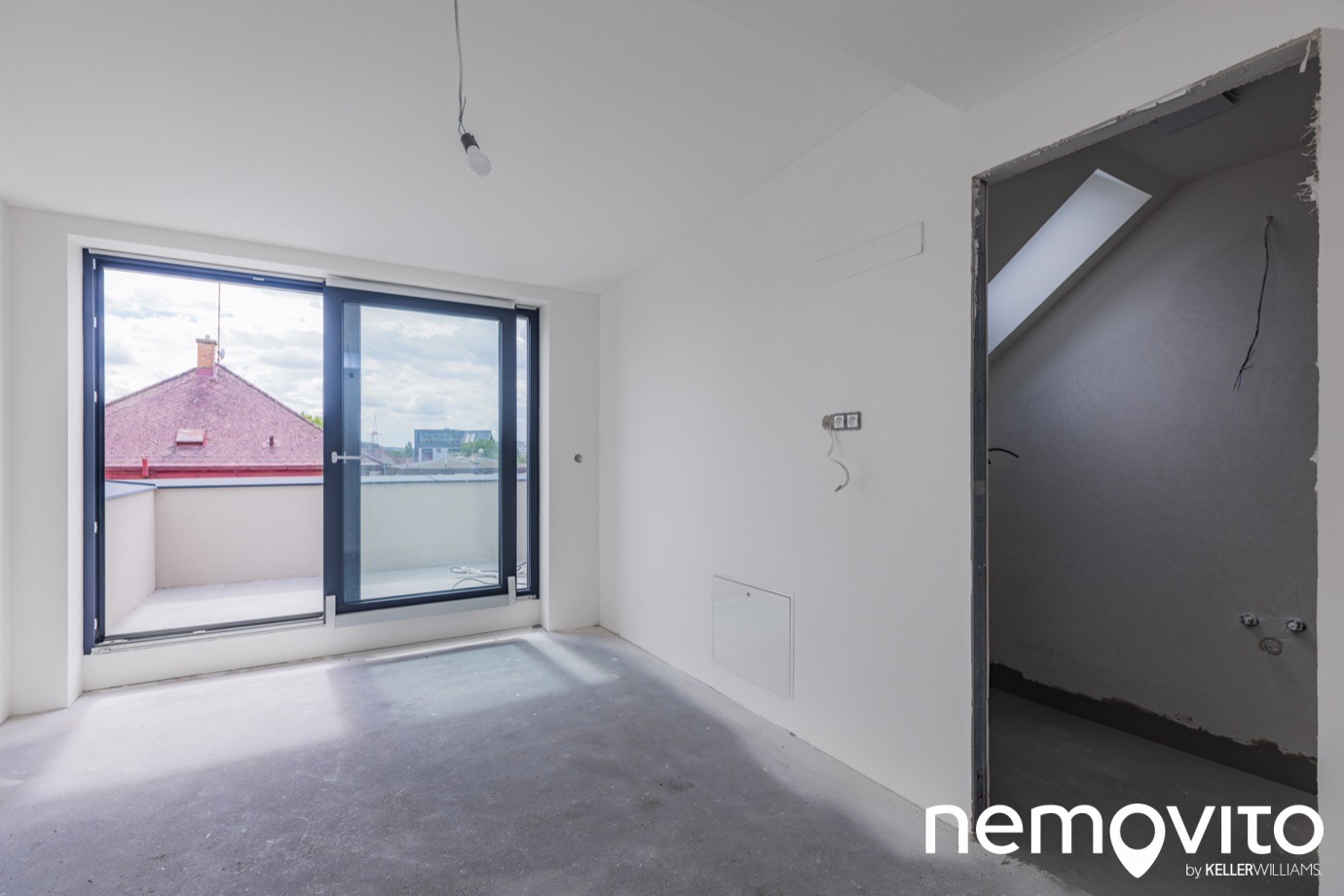 Oba byty budou předávány v tomto stavu, tedy white wall (pokročilejší stav známějšího shell&core, proti kterému jsou již hotové příčky, omítky sádrokartony). Pro představu o možnostech vašeho nového domova přikládáme vizualizaci dokončeného interiéru.